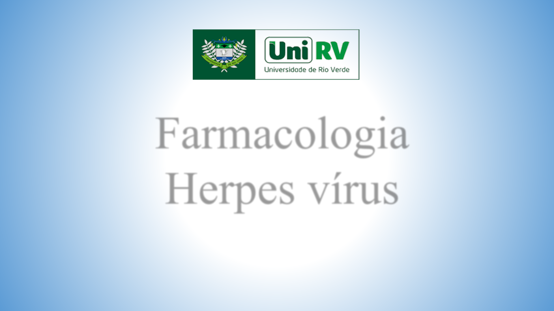 <p>Dra. Evilanna Lima Arruda</p><p>Farmacologia</p><p>Herpes vírus</p><p>α-herpesviridae</p><p>Beta-</p><p>herpesviridae</p><p>Gama -</p><p>herpesviridae</p><p>Herpesvírus Humano</p><p>Homem – único</p><p>hospedeiroSão vírus latentes!</p><p>• Herpesvirus simples</p><p>tipos I e II</p><p>• Herpes-zoster</p><p>• Herpesvirus tipos</p><p>5, 6 e 7</p><p>• Herpesvirus 4 e 8</p><p>Família:</p><p>herpesviridae</p><p>Herpesvírus Humano</p><p>Genoma: DNA de cadeia</p><p>dupla</p><p>Núcleo</p><p>Capsídeo icosaédrico</p><p>Tegumento de estrutura fibrilar</p><p>(liga o capsídeo ao involucro)</p><p>Envelope lipídico</p><p>Herpesvírus Humano</p><p>R</p><p>ep</p><p>li</p><p>ca</p><p>çã</p><p>o</p><p>Adsorção e penetração do vírus</p><p>Fusão: Glicoproteínas do envelope com a membrana plasmática do hospedeiro</p><p>Deposito do nucleocapsídeo e</p><p>as proteínas do tegumento no</p><p>citosol</p><p>Transcrição e síntese de proteínas do genoma viral</p><p>Segue em três fases:</p><p>• importantes na regulação da</p><p>transcrição gênica e controle da</p><p>célula. Também iniciam a degradação</p><p>de RNAm e DNA celulares.</p><p>Proteínas</p><p>precoces</p><p>imediatas (α):</p><p>• consistem em fatores de transcrição e</p><p>enzimas, incluindo a DNA polimerase.</p><p>Proteínas</p><p>precoces (β):</p><p>• consistem principalmente em</p><p>proteínas estruturais geradas após o</p><p>início da replicação do genoma.</p><p>Proteínas</p><p>tardias:</p><p>Aquisição do envelope viral</p><p>Proteínas do envelope se acumulam em</p><p>placas na membrana nuclear e há fusão do</p><p>envelope com os nucleocapsídeos.</p><p>O vírus completo e as cópias adicionais das</p><p>glicoproteínas do envelope são</p><p>transportados por um vacúolo até a</p><p>superfície da célula (adquirem</p><p>determinantes antigênicos do herpesvírus).</p><p>O resultado desse ciclo produtivo é a morte</p><p>da célula, resultante do desligamento de</p><p>grande parte das rotas sintéticas celulares.</p><p>O genoma viral é transcrito pela</p><p>polimerase de ácido ribonucleico</p><p>(RNA) DNA-dependente e é</p><p>regulado</p><p>pelos fatores nucleares celulares e</p><p>codificados pelo vírus</p><p>DNA polimerase codificada pelo</p><p>vírus, que é um alvo de fármacos</p><p>antivirais, replica o genoma viral.</p><p>Aciclovir</p><p>Herpesvírus Humano</p><p>Latência</p><p>Ação do</p><p>sistema</p><p>imune</p><p>Infecção</p><p>primária</p><p>Estresse,</p><p>imunossupressão,</p><p>gravidez, radiação</p><p>UV</p><p>Reativação</p><p>Herpes vírus humano simples ou simplex</p><p> herpesvírus 1 – oral</p><p> herpesvírus 2 - genital</p><p>Alfaherpesvírus</p><p>Latencia em neurônios</p><p>Envelopados</p><p>Capsídeo icosaédrico,</p><p>162 capsômeros</p><p>Codifica cerca de 70 polipeptídeos</p><p>Tipos 1 e 2 muito semelhantes - multiplicação intranuclear</p><p>O HSV-1 normalmente</p><p>permanece latente no</p><p>gânglio do nervo trigêmeo,</p><p>que faz a comunicação</p><p>entre a face e o sistema</p><p>nervoso central</p><p>Herpes vírus humano simples</p><p>Tipo 1</p><p>Sinais Clínicos</p><p>HSV tipo 1 ou HHV-1</p><p>Doenças associadas:</p><p>• Herpes labial</p><p>• Queratite</p><p>• Estomatites (Aftas)</p><p>Transmissão: contato entre</p><p>pessoas, através da saliva,</p><p>pele ou lábios do paciente</p><p>contaminado.</p><p>Feridas dolorosas, com prurido nos lábios, porém a infecção também pode</p><p>acometer a gengiva, faringe, língua, céu da boca, interior das bochechas e,</p><p>às vezes, a face o pescoço.</p><p>Estomatite herpética</p><p>Vesículas nos lábios</p><p>Secreção rica em</p><p>vírus!</p><p>Herpes genital (HSV tipo 2; HHV-2)</p><p>Herpes vírus humano simples</p><p>Porta de entrada do vírus</p><p>Abrasões na pele e mucosas</p><p>do trato genital, anal e</p><p>perianal</p><p> Período de incubação: média de 2-6 dias</p><p>Transmissão: sexual</p><p>Lesões locais e sistêmicas</p><p>Lesões anais e perianais</p><p>Meningite</p><p>Herpes do neonato</p><p>Infecção intrauterina</p><p>Manifestações clínicas</p><p>Latência – gânglio sacro</p><p>Herpes genital – HSV tipo 2</p><p>Sintomas: Ardor, prurido, formigamento e gânglios inflamados</p><p>podem anteceder a erupção cutânea e surgem cerca de 6 dias</p><p>após o contato sexual.</p><p>Eczema herpético</p><p>Herpes neonatal</p><p>Lesões cutâneas e Encefalites</p><p>O vírus pode cruzar a barreira placentária e afetar o feto...</p><p>O vírus pode cruzar a barreira placentária e</p><p>afetar o feto.</p><p>O resultado pode ser o aborto espontâneo ou</p><p>sérios danos fetais, como retardo mental e</p><p>déficit de audição e visão.</p><p>Infecções herpéticas do recém-nascido</p><p>parecem ter consequências mais sérias</p><p>quando a mãe adquire a infecção inicial por</p><p>herpes durante a gestação.</p><p>O dano ao feto ou ao neonato é menos</p><p>provável, por um fator de 10, por exposição ao</p><p>herpes recorrente ou assintomático.</p><p>Herpes-zosterVaricela-Zoster</p><p>Varicellovirus (HHV-3)</p><p>Mesmo</p><p>vírus –</p><p>HHV 3</p><p>Varicela</p><p>Herpes</p><p>zóster</p><p>Herpes vírus humano</p><p>Tipo 3</p><p>Varicela (catapora)</p><p>Manifestações clínicas</p><p>Evolução rápida</p><p>Altamente contagiosa</p><p>Lesões em diferentes estágios</p><p>Exantema vesículopustular</p><p>dérmico</p><p>Febre</p><p>Porta de entrada: vias respiratórias,</p><p>raramente conjuntiva ou pele.</p><p>Período de incubação: 14-20 DIAS</p><p>É uma doença infantil</p><p>relativamente branda.</p><p>A taxa de mortalidade e muito baixa e</p><p>normalmente esta associada a</p><p>complicações como encefalites</p><p>(infecção do cérebro) ou pneumonias.</p><p>Quase metade das mortes</p><p>acontecem entre adultos.</p><p>Multiplicação</p><p>do vírus –</p><p>trato</p><p>respiratório</p><p>Disseminação</p><p