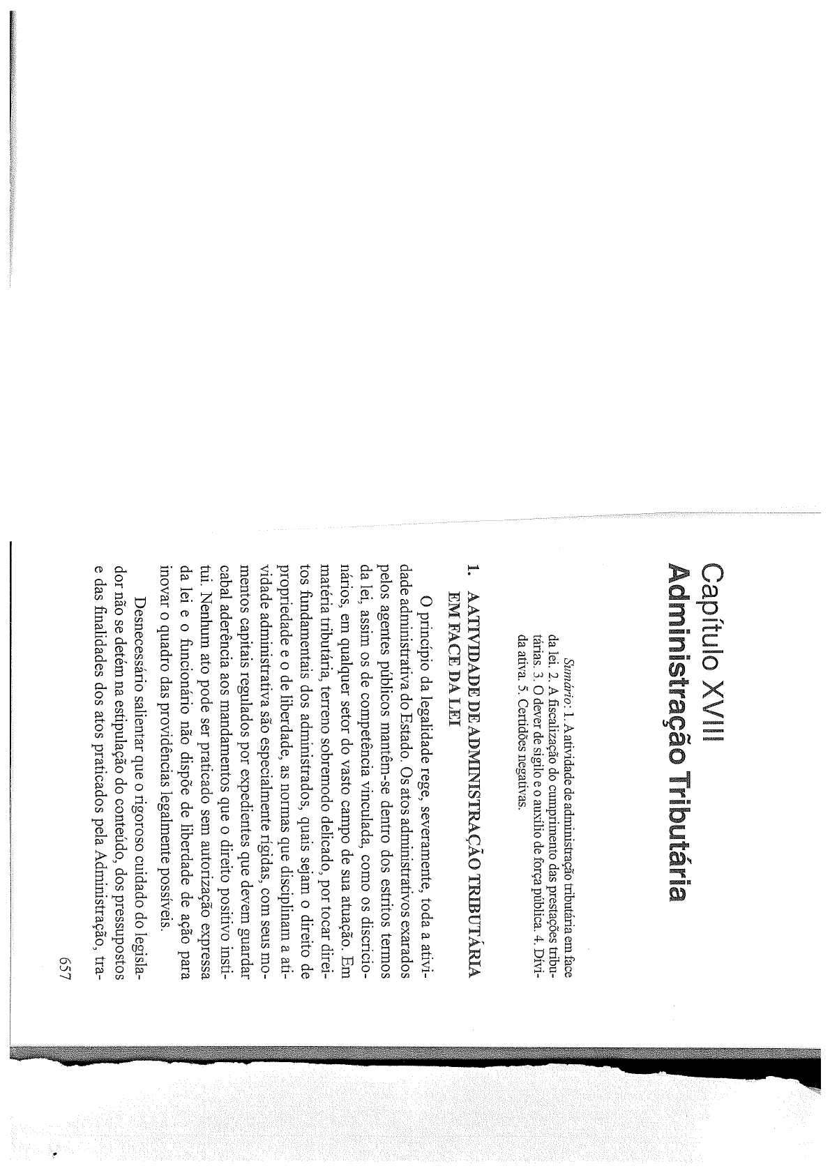 <p>Capítulo XVIII Administração Tributária Sumário: 1. A atividade de administração tributária em face da lei. 2. A fiscalização do cumprimento das prestações tribu- tárias. 3. O dever de sigilo e o auxílio de força pública. 4. Dívi- da ativa. 5. Certidões negativas. 1. AATIVIDADE DE ADMINISTRAÇÃO TRIBUTÁRIA EM FACE DA LEI O princípio da legalidade rege, severamente, toda a ativi- dade administrativa do Estado. Os atos administrativos exarados pelos agentes públicos mantêm-se dentro dos estritos termos da lei, assim os de competência vinculada, como os discricio- nários, em qualquer setor do vasto campo de sua atuação. Em matéria tributária, terreno sobremodo delicado, por tocar direi- tos fundamentais dos administrados, quais sejam o direito de propriedade e o de liberdade, as normas que disciplinam a ati- vidade administrativa são especialmente rígidas, com seus mo- mentos capitais regulados por expedientes que devem guardar cabal aderência aos mandamentos que o direito positivo insti- tui. Nenhum ato pode ser praticado sem autorização expressa da lei e o funcionário não dispõe de liberdade de ação para inovar o quadro das providências legalmente possíveis. Desnecessário salientar que o rigoroso cuidado do legisla- dor não se detém na estipulação do conteúdo, dos pressupostos e das finalidades dos atos praticados pela Administração, tra- 657</p><p>demais disso, a estruturação dos órgãos e a distribuição das funções que hão de ser desempenhadas. O funcionário pú- contidos em atos meramente administrativos. Só hão de fazer blico que exerce atribuições na área da Administração Tributá- alguma coisa se existir lei que o determine. Aquilo que o pará- ria está jungido ao plexo das regras genéricas do direito admi- grafo único do art. 194 quer exprimir é que as pessoas públicas nistrativo, a que se agregam as dispostas na legislação fiscal ou privadas que ele enumera devem acatar regular exercício que, a rigor, são também normas de direito administrativo. E a das competências que as autoridades administrativas recebem distinção entre trabalho exercitado externamente, ou no âm- da legislação tributária. Por exemplo: um contribuinte de ICMS bito interno das em nada modifica o regime jurídi- deve permitir que funcionários fiscais da Secretaria da Fazenda CO de sua atividade. ingressem em seu estabelecimento e examinem seus livros fis- Isso no pressuposto de que sejam eles portadores de com- petência legítima, segundo as diretrizes jurídicas estabelecidas 2. A FISCALIZAÇÃO DO CUMPRIMENTO DAS PRES- na legislação TAÇÕES TRIBUTÁRIAS Vem, nesse exato sentido, a advertência do art. 195 do Na linha do raciocínio que expusemos, diz o art. 194 do Código Tributário Nacional: Código Tributário Nacional que a legislação tributária, obser- vado o disposto naquela lei, regulará, em caráter geral, ou espe- Para os efeitos da legislação tributária, não têm cificamente em função da natureza do tributo de que se tratar, a aplicação quaisquer disposições legais excludentes ou competência e os poderes das autoridades administrativas em limitativas do direito de examinar livros, matéria de controle da sua aplicação, isto é, da observância das arquivos, documentos, papéis e efeitos comerciais ou regras fixadas pela Lei n. 5.172/66. É confusa a redação do fiscais dos comerciantes, industriais ou produtores, ou dispositivo, mas o princípio é este: a legislação tributária, as- da obrigação destes de exibi-los. sim compreendidos os atos normativos enumerados no art. 96 O comando não encerra conteúdo de é uma (CTN), regulará a competência e os poderes das autoridades imposição inafastável do exercício do dever que a lei atribui administrativas incumbidas de fiscalizar a aplicação dos pre- aos agentes da Administração Tributária, e se reflete num des- ceitos básicos estatuídos no Código Tributário dobramento do princípio da supremacia do interesse público ao Todo o feixe de normas jurídicas definidoras da competên- do particular. Não pode, portanto, sofrer embaraços ou enfren- cia e dos poderes das autoridades administrativas, para zelar pela tar obstáculos que não os próprios limites cravados na Consti- observância das regras da Lei n. 5.172/66, estende-se, como obri- tuição, no catálogo dos direitos e garantias Deve a gatório, à observância das pessoas naturais ou jurídicas, contri- fiscalização, por outro lado, ficar adstrita aos elementos de in- buintes ou não, inclusive às que gozem de imunidade tributária teresse, não podendo extravasar a sua competência administra- ou de isenção de caráter pessoal (art. 194, parágrafo único). tiva. Nesse sentido, veja-se a Súmula 437 do Supremo Tribunal Não que os súditos do Estado, estranhos aos serviços pú- Federal: "Estão sujeitos à fiscalização tributária ou previden- blicos da Administração, estejam sujeitos a cumprir deveres ciária, quaisquer livros comerciais, limitado o exame aos pon- tos objeto da investigação" (grifos nossos). 658 659</p><p>Mas a atração pelo óbvio é algo que acompanha sempre a Talvez pela circunstância de o legislador mencionar o ins- atividade legislativa, principalmente quando esta opera no cam- tituto da prescrição, cujo prazo, genericamente considerado, é po das normas gerais e abstratas. E o § do art. 145, em sua de cinco anos, tenham surgido interpretações como essa a que segunda parte, ratifica de maneira curiosa esse cacoete do legis- aludimos. Entretanto, dever de guarda e manutenção dos li- lador constitucional. Como se fora auspiciosa novidade, exposta vros, documentos e comprovantes, que interessem de modo di- em tom imponente, próprio das prescrições inaugurais, facultou- reto ou indireto à caracterização das prestações tributárias, per- se à Administração Tributária, especialmente para conferir dura pelo intervalo de te
