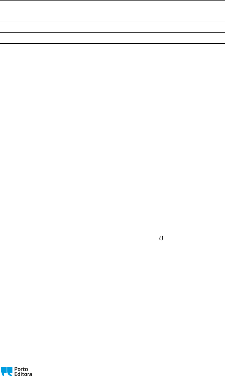<p>1</p><p>PROPOSTA DE PROVA DE EXAME</p><p>Prova de exame de Física e Química A - 2019</p><p>11.º Ano de Escolaridade</p><p>Duração da prova: 120 minutos. Tolerância: 30 minutos</p><p>Grupo I</p><p>Em 1909, Sören Peter Lauritz Sörensen (1868-1939) publicou dois artigos, intitulados Études</p><p>Enzymatiques I e II, sobre a influência da concentração hidrogeniónica na atividade</p><p>enzimática em reações biológicas. O grande mérito de Sörensen foi perceber que tanto as</p><p>soluções ácidas como as alcalinas poderiam ser caracterizadas pela concentração de iões de</p><p>hidrogénio, bastando apenas saber onde as grandezas H+ e OH− são iguais para se</p><p>definir o “ponto neutro” – se H OH+ − , a solução é ácida e, se H OH+ − , a solução é</p><p>alcalina –, e, então, desenvolveu métodos para medir o pH em sistemas bioquímicos. Depois</p><p>de desenhar gráficos e colocar potências negativas de base 10 nas abcissas, Sörensen optou</p><p>por utilizar os simétricos de logaritmos decimais dos valores de H+ , o que conduzia a</p><p>números positivos e com aspeto mais simples, sendo essa nova grandeza representada pelo</p><p>símbolo pH com a letra p proveniente de “potenz, puissance, potência”.</p><p>1. Considere a seguinte equação química:</p><p>( ) ( ) ( ) ( )4 3 2NH aq OH aq NH g H O+ −+ +</p><p>1.1. Selecione a opção que completa corretamente a seguinte frase.</p><p>O reagente que atua como base na reação direta é</p><p>(A)</p><p>4NH+ por ser a espécie presente que pode ceder H+ .</p><p>(B) OH− porque tem menos H do que as outras espécies.</p><p>(C) OH−</p><p>que capta H+ , passando a 2H O .</p><p>(D) 3NH por ser a espécie que capta um protão de 2H O .</p><p>1.2. Escreva os pares conjugados ácido-base envolvidos.</p><p>⇌</p><p>Marco</p><p>Máquina de Escrever</p><p>www.estudaFQ.pt</p><p>-</p><p>96</p><p>310</p><p>99</p><p>94</p><p>2</p><p>2. O suco gástrico tem pH 2,0= . Este pH deve-se maioritariamente à presença de HC no</p><p>estômago. Diariamente são produzidos cerca de 32,5 dm de suco gástrico (em média).</p><p>2.1. Indique a quantidade de ( )H aq+ é produzida no estômago por dia (em média).</p><p>2.2. Determine o volume de água alcalina comercial, com pH 9,5= a 25 C , que deveria</p><p>ser consumido diariamente para neutralizar todo o suco gástrico produzido.</p><p>3. Considere a reação representada pela seguinte equação química:</p><p>( ) ( ) ( ) ( ) ( )4 3 2 22 NH C aq CaO s 2 NH g CaC aq H O+ → + +</p><p>Num recipiente misturou-se 31,00 dm de solução aquosa de cloreto de amónio de</p><p>concentração 30,100 mol dm− com 56,1g de óxido de cálcio e obtiveram-se 32,00 dm de</p><p>amoníaco gasoso (PTN).</p><p>3.1. Justifique qual é o reagente limitante.</p><p>3.2. Selecione a opção que traduz o valor aproximado do rendimento da reação.</p><p>(A) 50%</p><p>(B) 56%</p><p>(C) 79%</p><p>(D) 89%</p><p>(E) 112%</p><p>4. Se a reação referida em 3. se destinar à obtenção de amoníaco, considere os elementos</p><p>químicos constituintes do subproduto cloreto de cálcio.</p><p>4.1. Das seguintes afirmações, selecione as duas falsas e escreva-as devidamente</p><p>corrigidas.</p><p>A. No estado fundamental, a configuração eletrónica do 17C é 2 2 6 1 61 2 2 3 3s s p s p .</p><p>B. O raio atómico do cálcio ( )20Ca é maior do que o raio atómico do cloro.</p><p>C. Os iões 2Ca + e C − são isoeletrónicos.</p><p>D. Os espetros fotoeletrónicos do cálcio e do cloro apresentam picos com três</p><p>intensidades diferentes.</p><p>3</p><p>4.2. Selecione a opção que indica a geometria das moléculas de 3NH .</p><p>(A) Tetraédrica.</p><p>(B) Piramidal trigonal.</p><p>(C) Triangular plana.</p><p>(D) Angular.</p><p>4.3. Selecione a opção que corresponde, respetivamente, à polaridade das ligações entre</p><p>os átomos de N e H nas moléculas de 3NH e à polaridade dessas moléculas.</p><p>(A) Ligações polares e moléculas apolares.</p><p>(B) Ligações apolares e moléculas apolares.</p><p>(C) Ligações apolares e moléculas polares.</p><p>(D) Ligações polares e moléculas polares.</p><p>Grupo II</p><p>1. O problema da destruição da camada de ozono tem vindo a assumir cada vez maior</p><p>relevância, tendo-se tornado um motivo de preocupação mundial.</p><p>Devido à presença de clorofluorocarbonetos na estratosfera, o “óxido de cloro”, formado a</p><p>partir da reação de átomos de cloro com o dioxigénio, C O• , participa na destruição da</p><p>camada de ozono.</p><p>1.1. Represente a fórmula de estrutura de Lewis da molécula C O• , atendendo a que este</p><p>composto é um radical livre.</p><p>1.2. Descreva o modo como os CFC provocam a destruição da camada de ozono,</p><p>escrevendo as correspondentes equações químicas a partir do diclorodifluorometano.</p><p>2. O cloro e o bromo são dois halogéneos que apresentam ambos dois isótopos naturais.</p><p>2.1. Tendo em conta a posição dos elementos cloro e bromo na Tabela Periódica, compare,</p><p>justificando, o raio atómico dos átomos destes elementos.</p><p>2.2. O bromo apresenta dois isótopos naturais, 79Br e 81Br . Em 1000 g de bromo puro</p><p>( )r 79,904A = há 243,8203 10 átomos do isótopo 79Br ( )r 78,918A = . Calcule a</p><p>abundância relativa do isótopo 81Br .</p><p>2.3. Calcule a massa isotópica relativa do isótopo 81Br .</p><p>4</p><p>3. Dada a reação A(g) 2 B(g) C(g)+ , considere misturas bem agitadas de A, B e C em</p><p>equilíbrio químico, a uma dada temperatura T.</p><p>Estabeleça a correspondência entre as razões que provocam a perturbação dos equilíbrios</p><p>descritas de a) a f) com os gráficos 1 a 8 que representam a variação do quociente da</p><p>reação no decorrer do tempo.</p><p>a) Passado um certo tempo, adição de reagente A à mistura em equilíbrio.</p><p>b) Passado um certo tempo, adição de reagente C à mistura em equilíbrio.</