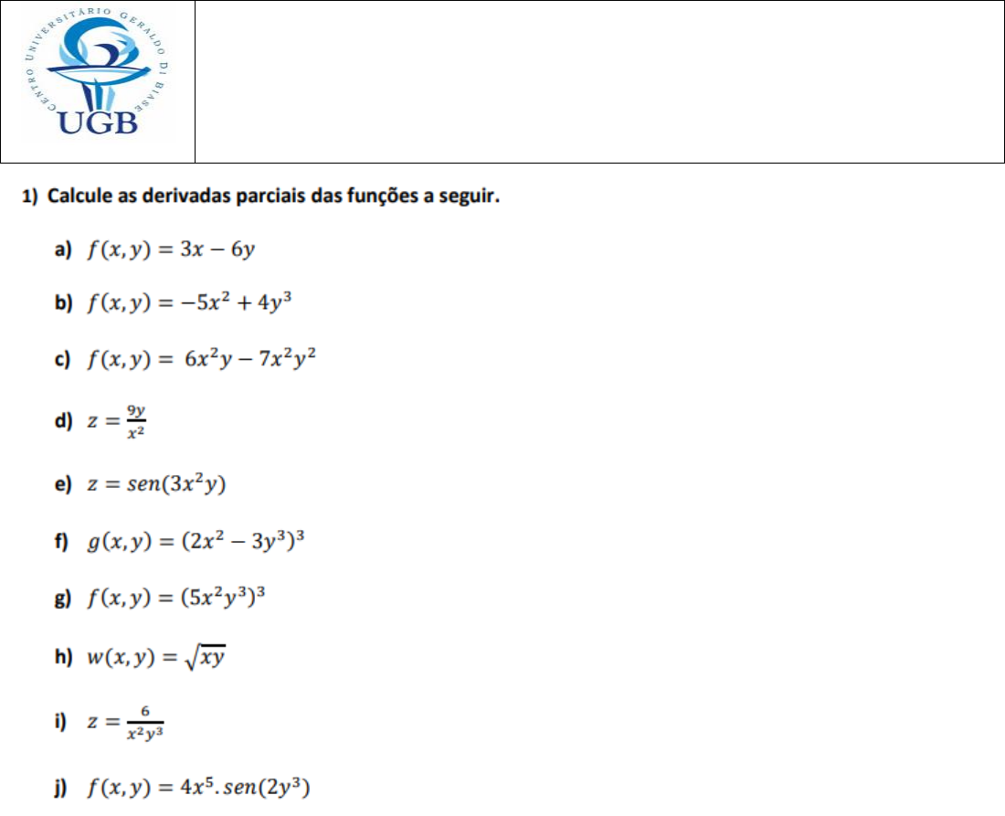 <p>UGB – Compromisso com a Transformação Social!</p><p>2) Resolva as integrais:</p><p>a)</p><p>b)</p><p>c)</p><p>d)</p><p>e)</p><p>f)</p><p>g)</p><p>h)</p><p>CENTRO UNIVERSITÁRIO GERALDI DI BIASE</p><p>FUNDAÇÃO EDUCACIONAL ROSEMAR PIMENTEL</p><p>ITE INSTITUTO DE TECNOLOGIA E ENGENHARIAS</p><p>CURSO: Engenharias</p><p>DISCIPLINA: Análise Matemática 2</p><p>PROFESSOR: Marco Antonio de O. Coelho</p>