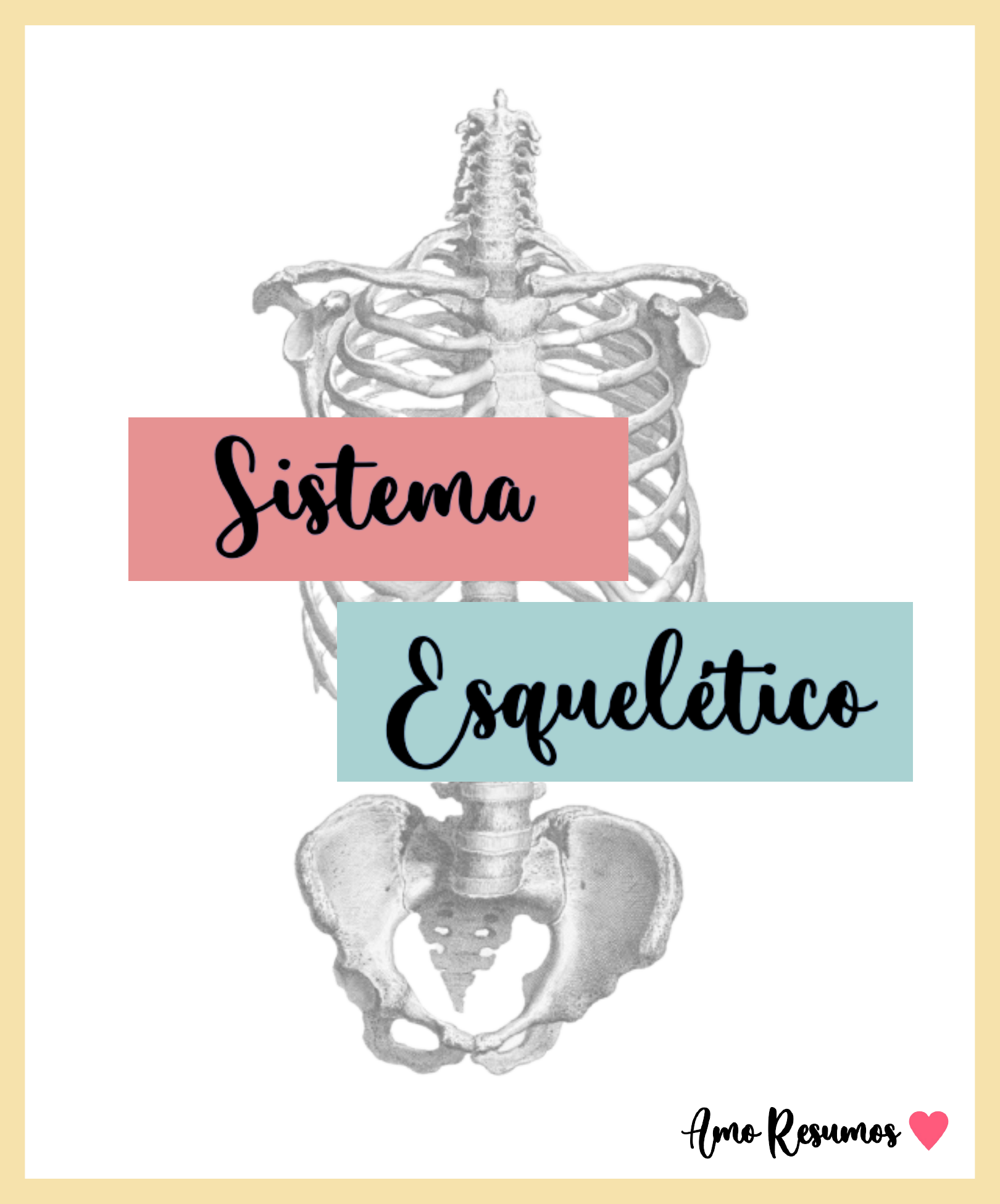 <p>Licenciado para - R</p><p>osania S</p><p>ouza - 66123950606 - P</p><p>rotegido por E</p><p>duzz.com</p><p>Olá, tudo bem?</p><p>Gostaríamos de te agradecer por adquirir um material do</p><p>@amoresumos. O nosso material é feito com amor para te</p><p>ajudar a alcançar o seus objetivos nos estudos. Esperamos que</p><p>você goste e que se sinta bem ao estudar.</p><p>Este conteúdo destina-se exclusivamente a exibição privada. É proibida toda forma</p><p>de reprodução, distribuição ou comercialização do conteúdo.</p><p>Qualquer meio de compartilhamento, seja por google drive, torrent, mega, whatsapp,</p><p>redes sociais ou quaisquer outros meios se classificam como ato de pirataria,</p><p>conforme o art. 184 do Código Penal.</p><p>Caso haja pirataria do material, o cliente registrado no produto estará sujeito a responder</p><p>criminalmente, conforme o artigo 184 do Código Penal com pena de 3 meses a 4 anos de reclusão</p><p>ou multa de até 10x o valor do produto adquirido (segundo o artigo 102 da Lei nº 9.610)</p><p>Entretanto, acreditamos que você é uma pessoa de bem que</p><p>está buscando se capacitar através dos estudos e que jamais</p><p>faria uma coisa dessa não é? A equipe Amo Resumos agradece a</p><p>compreensão e deseja a você um ótimo estudo.</p><p>Está com alguma dúvida? Envia para</p><p>suporte@amoresumos.com</p><p>Licenciado para - R</p><p>osania S</p><p>ouza - 66123950606 - P</p><p>rotegido por E</p><p>duzz.com</p><p>1- CONCEITO SISTEMA ESQUELÉTICO....................................................................................01</p><p>2- FUNÇÕES ...................................................................................................................................01</p><p>3- OSSOS - TECIDO ÓSSEO ..........................................................................................................01</p><p>4- TIPOS DE TECIDO ÓSSEO ......................................................................................................03</p><p>5- ELEMENTOS ÓSSEOS ..............................................................................................................03</p><p>5.1 PERIÓSTEO .........................................................................................................................03</p><p>5.2 CORTICAL ..........................................................................................................................04</p><p>6- ESTRUTURA DOS OSSOS LONGOS ......................................................................................05</p><p>3.1 FORMAÇÃO - OSSIFICAÇÃO ..........................................................................................01</p><p>3.2 CÉLULAS DO TECIDO ÓSSEO ........................................................................................02</p><p>5.3 ESPONJOSO .......................................................................................................................04</p><p>5.4 CARTILAGEM ARTICULAR ............................................................................................04</p><p>5.5 MEDULA ÓSSEA ................................................................................................................04</p><p>5.6 VASCULARIZAÇÃO ..........................................................................................................04</p><p>5.7 FÍSIS .....................................................................................................................................04</p><p>7- CLASSIFICAÇÃO DOS OSSOS ...............................................................................................05</p><p>8- ACIDENTES ÓSSEOS ...............................................................................................................06</p><p>Licenciado para - R</p><p>osania S</p><p>ouza - 66123950606 - P</p><p>rotegido por E</p><p>duzz.com</p><p>9- DIVISÃO......................................................................................................................................06</p><p>10- ESQUELETO AXIAL ................................................................................................................07</p><p>10.1 OSSOS DO CRÂNIO .........................................................................................................07</p><p>10.2 COSTELA E ESTERNO ....................................................................................................09</p><p>10.3 COLUNA VERTEBRAL ...................................................................................................09</p><p>11- ESQUELETO APENDICULAR ...............................................................................................12</p><p>11.1 OSSOS DO MEMBRO SUPERIOR .................................................................................12</p><p>11.1 OSSOS DO MEMBRO INFERIOR ..................................................................................14</p><p>12- ARTICULAÇÕES ......................................................................................................................16</p><p>12.1 ARTICULAÇÕES SINOVIAIS .........................................................................................16</p><p>12.2 ARTICULAÇÕES FIBROSAS .........................................................................................16</p><p>12.3 ARTICULAÇÕES CARTILAGÍNEAS .............................................................................17</p><p>Licenciado para - R</p><p>osania S</p><p>ouza - 66123950606 - P</p><p>rotegido por E</p><p>duzz.com</p><p>FUNÇÕES</p><p>OSSOS - TECIDO ÓSSEO</p><p>01</p><p>O Sistema Esquelético compreende um conjunto de</p><p>ossos e cartilagens (denominado esqueleto),</p><p>juntamente com ligamentos e tendões, que se</p><p>interligam com o intuito de formar o arcabouço do</p><p>corpo humano. Há aproximadamente 206 ossos em</p><p>indivíduos adultos.</p><p>Conceito</p><p>Os ossos são órg