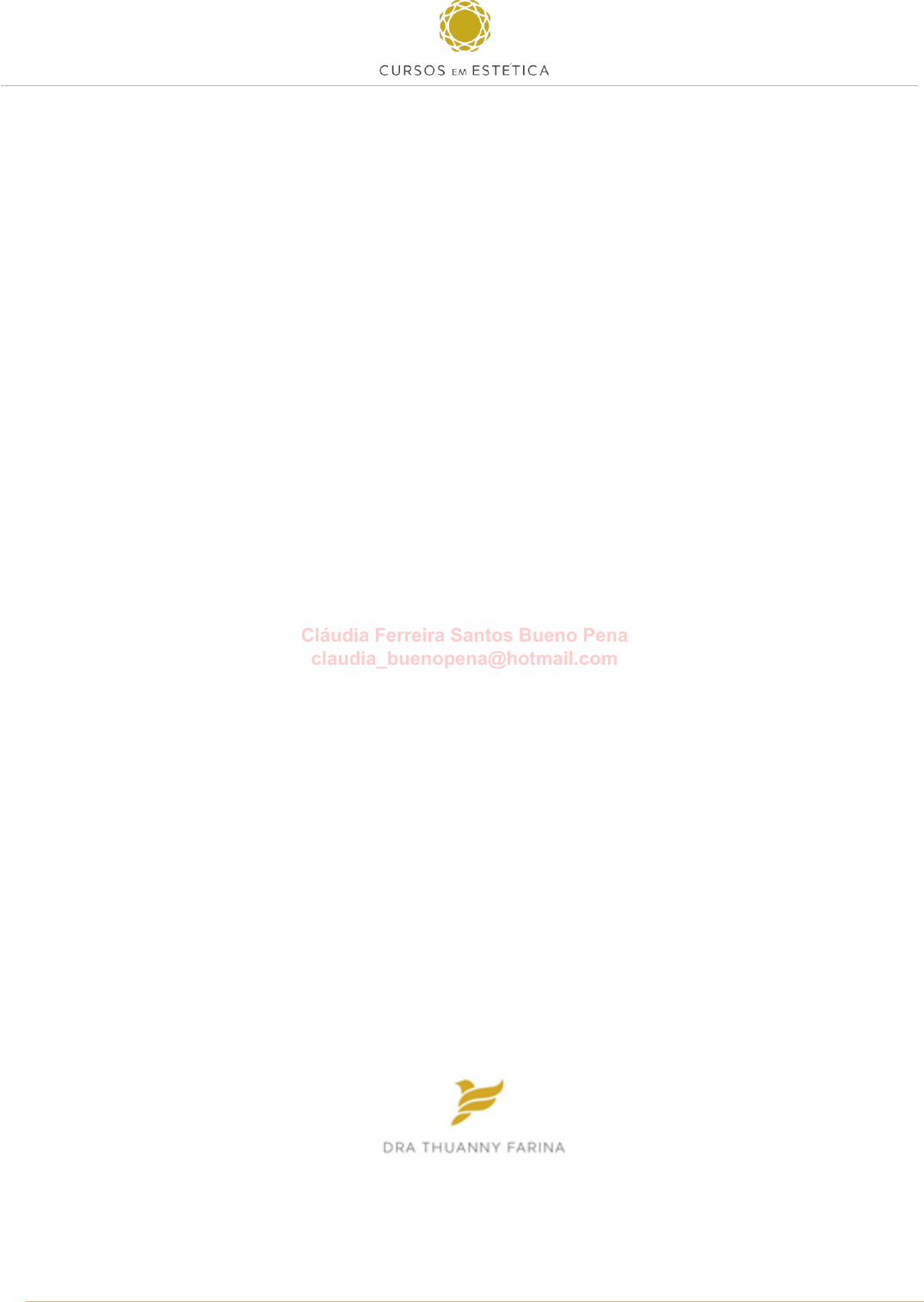 <p>www.cursosemestetica.com.br</p><p>PEIM</p><p>Procedimento Estético Injetável para Microvasos</p><p>Cláudia Ferreira Santos Bueno Pena</p><p>claudia_buenopena@hotmail.com</p><p>2</p><p>www.cursosemestetica.com.br</p><p>Dra. Thuanny Farina</p><p>@drathuannyfarina</p><p>• Graduada em Biomedicina em 2008 pela Faculdades Metropolitanas Unidas – UniFMU</p><p>• Habilitada em Análises Clínicas, Biologia Molecular, Microbiologia de Alimentos e</p><p>Estética</p><p>• Pós graduada em Estética e Cosmetologia</p><p>• Professora de cursos de aperfeiçoamento estético em escolas de São Paulo, Bahia e</p><p>Fortaleza</p><p>• Docente de pós graduação em estética (biomedicina estética, farmácia estética,</p><p>enfermagem estética e estética) Famesp (SP), Inaesp (SP), Biocursos (AM, RR, PA) e</p><p>Univic (BA).</p><p>• Speaker da empresa i-Thread de Fios de PDO</p><p>• Speaker Galderma e Rennova</p><p>• Doutoranda em Ciências Biomédicas (Argentina/Brasil)</p><p>• Graduanda em Medicina</p><p>• CEO da Cursos em Estética</p><p>• Palestrante em Congressos nacionais e internacionais na área de saúde e Estética.</p><p>• Especializações e atualizações em procedimentos estéticos minimamente invasivos no</p><p>Brasil e exterior.</p><p>Cláudia Ferreira Santos Bueno Pena</p><p>claudia_buenopena@hotmail.com</p><p>3</p><p>www.cursosemestetica.com.br</p><p>Sumário</p><p>1 - Introdução ..................................................................................................................................... 4</p><p>2 – Anatomia do Sistema Cardiovascular ......................................................................................... 5</p><p>3 – Sistema Cardiovascular e Microvasos......................................................................................... 6</p><p>4 – Fisiopatologia dos Microvasos .................................................................................................... 7</p><p>5. Procedimento Estético Injetável para Microvasos ...................................................................... 9</p><p>6 – Métodos de Anestesia ................................................................................................................ 12</p><p>7 – Avaliação Clínica ......................................................................................................................... 14</p><p>8 – Complicações e Recomendações ............................................................................................... 16</p><p>9 – Contraindicações ........................................................................................................................ 17</p><p>10 – Terapias Associadas e Tratamento das Intercorrências ....................................................... 17</p><p>11 – Referências Bibliográficas ....................................................................................................... 19</p><p>Cláudia Ferreira Santos Bueno Pena</p><p>claudia_buenopena@hotmail.com</p><p>4</p><p>www.cursosemestetica.com.br</p><p>1 - Introdução</p><p>As varizes constituem uma das doenças mais antigas de que se tem relato e,</p><p>atualmente, estão presentes, em média, em torno de 30 a 40% da população brasileira. Alguns</p><p>fatores de riscos são considerados, tais como ocupação, gravidez, dieta, obesidade,</p><p>hereditariedade e etnia, sendo as mulheres as mais afetadas, numa razão de 4 mulheres para</p><p>1 homem afetado. Acredita-se que 70% das mulheres com idade acima de 40 anos</p><p>apresentem veias varicosas.</p><p>Existem dois tipos de varizes:</p><p>- Primárias: que aparecem influenciadas pela tendência hereditária, são as responsáveis</p><p>pelas antiestéticas linhas vermelhas e azuis, de diversos tamanhos, que aparecem</p><p>especialmente nas pernas das mulheres e também pelas varizes de maior calibre, que são as</p><p>mais frequentes.</p><p>- Secundárias: que aparecem por doenças adquiridas no decorrer da vida, sendo de</p><p>tratamento mais difícil, são causadas por uma doença pré-existente, como fístulas</p><p>arteriovenosas (congênitas ou adquiridas), traumas, angiodisplasias, síndrome pós-flebítica,</p><p>compressões extrínsecas, entre outras.</p><p>Existe uma tendência hereditária para as pessoas apresentarem varizes e também</p><p>alguns fatores podem desencadear o aparecimento ou a piora do quadro de varizes. Um dos</p><p>principais é a gravidez. Outro muito importante é o uso de anticoncepcionais. Ficar muito</p><p>tempo na posição em pé ou sentada também provoca varizes. Portanto, pessoas que ficam em</p><p>pé paradas, ou sentadas durante muito tempo, usam anticoncepcional ou tem várias gestações</p><p>e que apresentam a tendência hereditária, têm uma forte possibilidade de desenvolver o</p><p>problema.</p><p>A questão hereditária favorecendo as varizes atinge homens e mulheres igualmente,</p><p>mas existe uma proporção muito maior de mulheres com varizes do que homens, por causa</p><p>do efeito do hormônio feminino em agravar o problema.</p><p>Cláudia Ferreira Santos Bueno Pena</p><p>claudia_buenopena@hotmail.com</p><p>5</p><p>www.cursosemestetica.com.br</p><p>2 – Anatomia do Sistema Cardiovascular</p><p>A função principal do sistema cardiovascular é abastecer de sangue os tecidos,</p><p>proporcionar os nutrientes essenciais das células para o metabolismo e eliminar os produtos</p><p>de dejeto das células. O coração atua como uma bomba, de modo que, ao se contrair, gera uma</p><p>pressão que impulsiona o sangue através de uma série de vasos sanguíneos.</p><p>Os vasos que transportam o sangue do coração até os tecidos são as artérias, que estão</p><p>submetidas a uma pressão elevada e que contém uma porcentagem relativamente pequena do</p><p>volume sanguíneo. As veias, que transportam o sangue de retorno dos tecidos para o coração,</p><p>