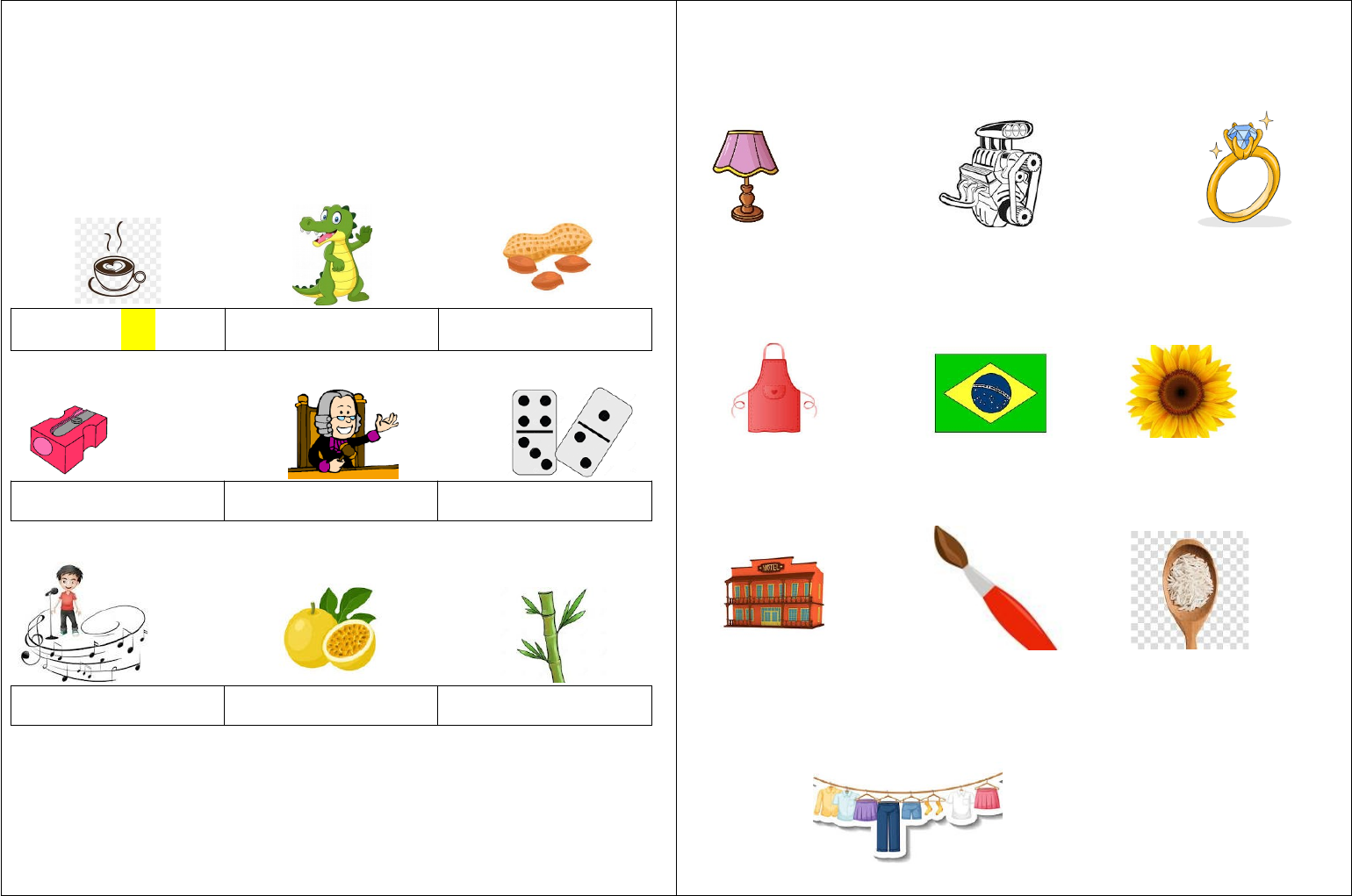 <p>Lição de casa- Segunda-feira</p><p>Oxítonas: é a última sílaba mais forte da palavra</p><p>ESCREVA OS NOMES E PINTE A SÍLABA OXÍTONA.</p><p>café</p><p>Escolha 5 figuras e forme frases no seu caderno.</p><p>Lição de casa- Terça-feira</p><p>Produção de frases com palavras oxítonas:</p><p>1- 2- 3-</p><p>4- 5- 6-</p><p>7- 8- 9-</p><p>10-</p><p>Lição de casa- Quarta-feira</p><p>a. 75 x 63 =</p><p>b. 55 x 18=</p><p>c. 93 x 25=</p><p>d. 36 x 82=</p><p>Lição de casa- Quinta-feira</p><p>a. 28 x 35=</p><p>b. 85 x 96=</p><p>c. 23 x 36=</p><p>d. 22 x 13=</p><p>Fazer com a prof.</p><p>a. 23 x 13=</p><p>b. 56 x 11=</p><p>c. 36 x 12=</p><p>d. 24 x 24=</p><p>Fazer com a prof.</p><p>ACHE OS OBJETOS:</p><p>image6.png</p><p>image7.jpeg</p><p>image8.jpeg</p><p>image9.jpeg</p><p>image10.jpeg</p><p>image11.jpeg</p><p>image12.png</p><p>image13.jpeg</p><p>image14.jpeg</p><p>image15.jpeg</p><p>image16.jpeg</p><p>image17.jpeg</p><p>image18.jpeg</p><p>image19.jpeg</p><p>image20.jpeg</p><p>image21.png</p><p>image22.jpeg</p><p>image23.jpeg</p><p>image1.jpeg</p><p>image2.jpeg</p><p>image3.jpeg</p><p>image4.png</p><p>image5.png</p>