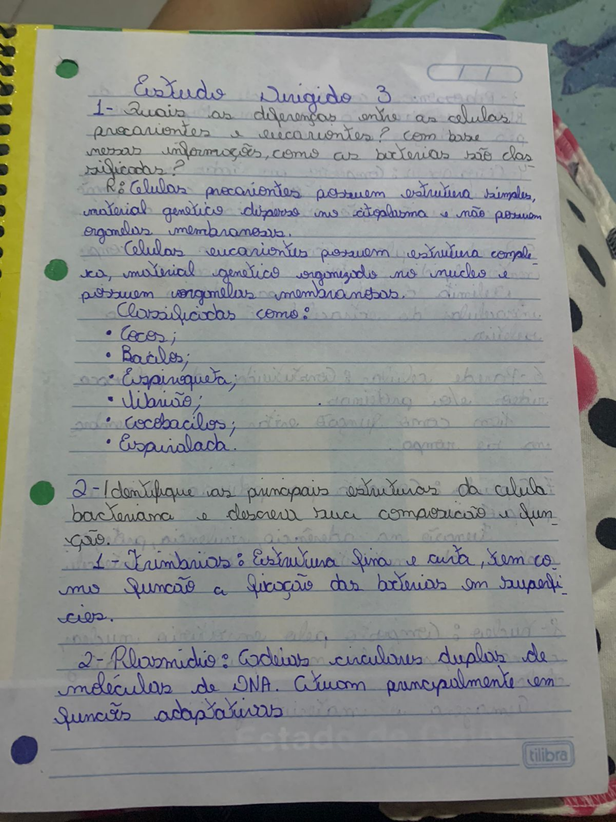 <p>/ / 1- Quais as as 3 com base messas as clas R: material genetico não Celular comple material genetico no nucleo como: 2- as da 1 - : l w mo a das Im superfi cies. de de em tilibra</p><p>/ / 3 - cle completes de as pela cle 4- pur Jodas as tem a 5 em compo menies Nulimita a celula do E uma 6 Parede celular de como que a membra see pur l na de nutrientes lan 8 - pelo nuclear, cromatina matriz celula w material genetico. tilibra</p><p>/ / : pr no ma l 3- I que futures de 2 de a capacidade do no organismo Exemples: Resistencia como as bucterias see l como a. de genetica entre elas. be dividem pur um processo de Jambem como a econe com a de am que coloca um dna em celula e ela be em a penede das Gram+ das - ? i l menor mais complexa. 6- Com a de Gram, deferencia a cilula da t colorante a elas. tilibra</p><p>are com a 7. as da de a de 1- Primonia : permitin que as bucterias visu I na com a violeta de (1 min) apos a recearimes com iodo. 2 - : identifican a com - 3 - secundario : was das a a lomina cowda com</p>