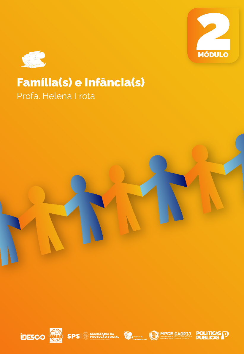 <p>2024 © Maria Andréa Luz da Silva</p><p>Promoção e Defesa dos Direitos Humanos</p><p>de Crianças e Adolescentes</p><p>Autoras</p><p>Profa. Dra. Maria Helena de Paula Frota</p><p>Profa. Dra. Kelyane Silva Sousa</p><p>Coordenação Editorial</p><p>Profa. Dra. Maria Andréa Luz da Silva</p><p>Capa</p><p>Ana Carolina Frota</p><p>Projeto gráfico e diagramação</p><p>Eduardo Freire</p><p>Revisão ortográfica</p><p>Caio Faheina</p><p>MÓDULO II</p><p>Infância(s), família(s)</p><p>e Direitos</p><p>Profa. Dra. Maria Helena de Paula Frota</p><p>Profa. Dra. Kelyane Silva Sousa</p><p>4</p><p>Promoção e Defesa dos Direitos Humanos de Crianças e Adolescentes</p><p>Profa. Dra. Maria Helena de Paula Frota • Profa. Dra. Kelyane Silva Sousa</p><p>1.1 Abordagem histórica e evolutiva dos conceitos de</p><p>família</p><p>Os estudos científicos acerca da família compreendem diversas</p><p>áreas do conhecimento: Sociologia, Antropologia, Direito, dentre</p><p>outros. Em cada uma, ocorreu a descoberta de formas de convi-</p><p>vência e cuidado com os membros de um núcleo familiar de for-</p><p>mas diferenciadas, as quais, não necessariamente, compunham o</p><p>entendimento do senso comum1 acerca do que é família.</p><p>A definição dominante de família congrega um conjunto</p><p>de palavras afins: pai, mãe, filho, casa, unidade domésti-</p><p>ca, casamento e parentesco. A família tida como “legíti-</p><p>ma”, “normal”, que se interioriza no imaginário da maioria</p><p>das pessoas, caracteriza-se como um conjunto de indiví-</p><p>duos aparentados que se ligam entre si por aliança, casa-</p><p>mento, filiação, adoção ocasional ou afinidade. É pressu-</p><p>posto comum que esses indivíduos habitem um mesmo</p><p>teto (Osterne, 2004, p. 34).</p><p>1 Senso comum é o entendimento coletivo acerca dos fenômenos que é</p><p>permeado por crenças culturais, sociais e religiosas em um determinado lugar</p><p>e período histórico.</p><p>1.0 Família(s) e infância(s)</p><p>5Família e Infância</p><p>MÓDULO II • UNIDADE 1</p><p>Para a compreensão de como o conceito atual de família foi</p><p>formulado é necessário retornar aos fatos que compõem a for-</p><p>mação sócio-histórica brasileira, do qual destaca-se a colonização</p><p>portuguesa e os valores e tradições importados do continente eu-</p><p>ropeu no século XVI em diante. Uma obra que retrata essa cons-</p><p>trução da ideia de família europeia é “História Social da Criança</p><p>e da Família” de Philippe Ariés. O autor francês descreve como os</p><p>papéis sociais na família foram se modificando e o cuidado com</p><p>as crianças foi se tornando uma prerrogativa para os pais, fazendo</p><p>surgir o sentimento de infância.</p><p>Ariés (2006) aponta que a sociedade moderna capitalista</p><p>traz a preocupação com a infância no seio da família e passa a</p><p>compreender o papel da educação na socialização das crianças,</p><p>diferente do período feudal em que eram considerados adultos</p><p>em miniatura, sendo submetidos a trabalhos braçais que exigiam</p><p>esforço físico. É importante destacar que esse pensamento se re-</p><p>laciona principalmente às famílias da elite, pois, nas famílias das</p><p>classes mais pobres o trabalho continua sendo necessário para</p><p>complemento de renda, sendo mão-de-obra requisitada no cam-</p><p>po e nas fábricas que começavam a se disseminar na Europa, mes-</p><p>mo que as crianças recebessem um menor valor assim como as</p><p>mulheres.</p><p>A necessidade de mudar o pensamento das famílias sobre as</p><p>crianças fez com que uma vasta literatura sobre infância fosse dis-</p><p>seminada para que pudessem lançar um novo olhar sobre as for-</p><p>mas de lidar com os problemas relacionados a essa fase. Salienta</p><p>o autor, que nos séculos XVIII e XIX, o rigor disciplinar para que</p><p>se tornassem adultos dentro dos moldes esperados pela sociedade</p><p>6</p><p>Promoção e Defesa dos Direitos Humanos de Crianças e Adolescentes</p><p>Profa. Dra. Maria Helena de Paula Frota • Profa. Dra. Kelyane Silva Sousa</p><p>fazia com que as famílias abastadas da Europa enviassem seus fi-</p><p>lhos para entidades religiosas, onde se propagavam as práticas de</p><p>violência física e aprisionamento, que ficaram conhecidas como</p><p>internatos. Por outro lado, as crianças pobres também eram aten-</p><p>didas por instituições educacionais repressoras, mas a educação</p><p>era voltada para a vida laboral (Ariès, 2006).</p><p>Pensando a família numa perspectiva sociológica, Cristi-</p><p>na Bruschini (2000), propõe concepção de que a família tem três</p><p>funções principais no decorrer da história da sociedade, as quais</p><p>são: a função econômica, a função socializadora e a função de</p><p>reprodução ideológica. A função econômica da família, antes do</p><p>advento do capitalismo, era ser lugar de produção, com papéis de</p><p>homens e mulheres bem definidos. A mulher se concentrava nos</p><p>trabalhos privados, como o cuidado aos animais e a confecção</p><p>de roupas, e tinha o poder de gerência na vida doméstica. Já o</p><p>homem era encarregado da vida pública. As tarefas domésticas</p><p>tinham importância e estavam ligadas à produção social.</p><p>Com o advento do capitalismo, acirra-se a divisão sexual</p><p>do trabalho, na esfera privada, o trabalho é de reprodução social</p><p>e não remunerado, e na esfera pública, o trabalho é produtivo e</p><p>remunerado. Essa divisão foi naturalizada e a casa (unidade de</p><p>produção e consumo) e a família (grupo de laços afetivos e psi-</p><p>cológicos) passaram a ser a mesma coisa. O trabalho doméstico</p><p>se realiza em dois planos: tarefas domésticas para a reprodu-</p><p>ção de pessoas e consumo de mercadorias e produção de novos</p><p>trabalhadores/gerações. Os membros da família se dividem em</p><p>t