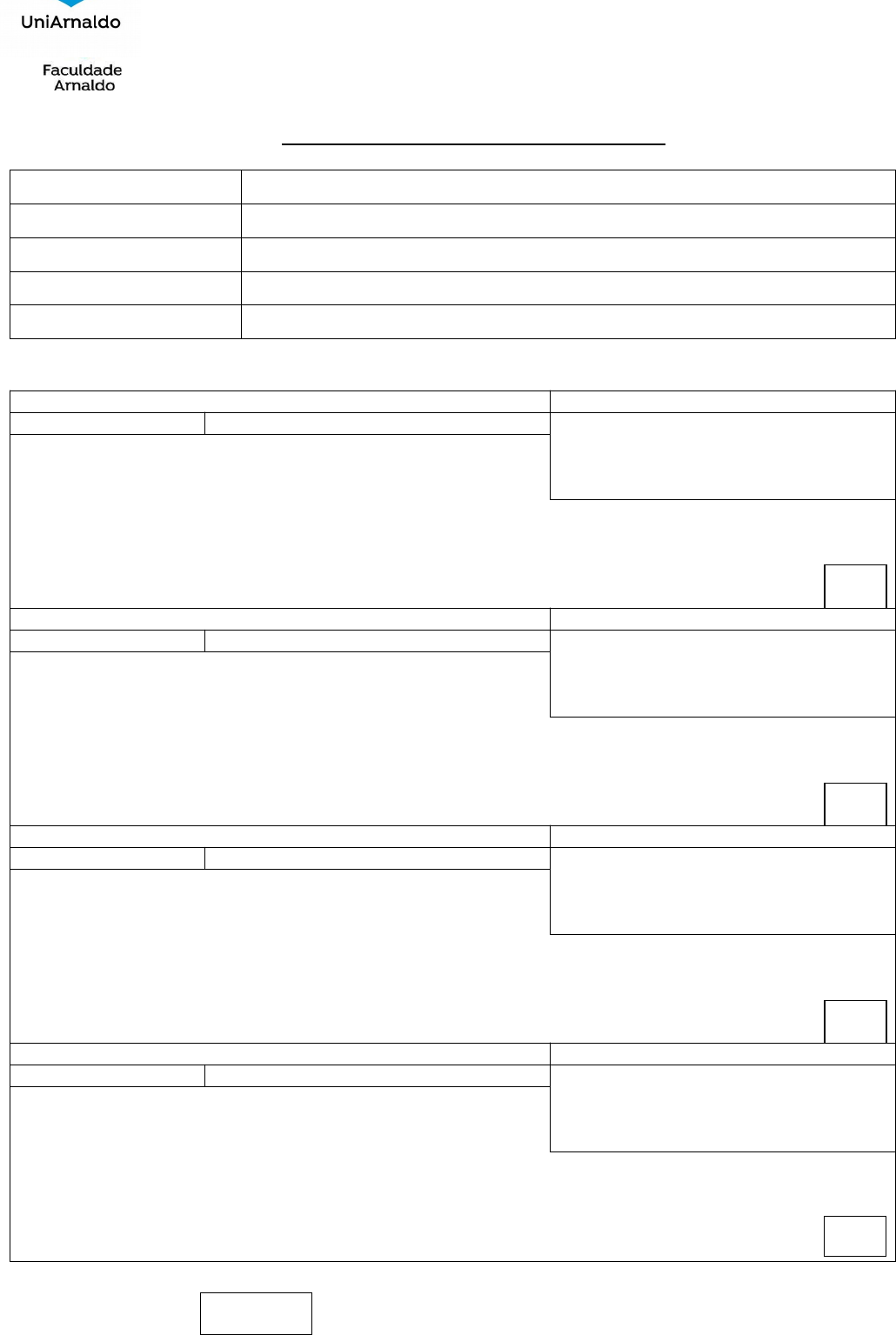<p>FICHA DE ACOMPANHAMENTO DO ESTÁGIO</p><p>Nome do Aluno:</p><p>Nome da dupla:</p><p>Local de estágio:</p><p>C.D.responsável:</p><p>Semestre:1o/2024</p><p>Mês:</p><p>Data:</p><p>Campo do C.D.supervisor</p><p>Hora chegada:</p><p>Hora saída:</p><p>Visto e Carimbo</p><p>Procedimentos realizados:</p><p>Horas</p><p>Data:</p><p>Campo do C.D.supervisor</p><p>Hora chegada:</p><p>Hora saída:</p><p>Visto e Carimbo</p><p>Procedimentos realizados:</p><p>Horas</p><p>Data:</p><p>Campo do C.D.supervisor</p><p>Hora chegada:</p><p>Hora saída:</p><p>Visto e Carimbo</p><p>Procedimentos realizados:</p><p>Horas</p><p>Data:</p><p>Campo do C.D.supervisor</p><p>Hora chegada:</p><p>Hora saída:</p><p>Visto e Carimbo</p><p>Procedimentos realizados:</p><p>Horas</p><p>TotalHorasdeEstágio</p><p>(</p><p>UNIVERSIDADE ARNALDO</p><p>)</p><p>Para osupervisor</p><p>· Classificação final do aluno referente ao mês:</p><p>· Observações:</p><p>CRITÉRIOSPARAPREENCHIMENTODAFICHADECLASSIFICAÇÃODOALUNO</p><p>A ficha de acompanhamento do estágio deverá ser preenchida todos os dias pelo aluno e entregueaoC.D.supervisornofinaldoexpediente,oqualcompletaráafichaeamanterásobsuatuteladurantetodoomês.Estafichaseráentregueaoprofessordeestágionofinaldetodososmeses,durantesuasupervisãoaos locaisconveniados.</p><p>As classificaçõesvariamentre1a5,sendo:</p><p>1= péssimo</p><p>2= ruim</p><p>3=regular</p><p>4= bom</p><p>5=excelente</p><p>Oscritériosparaaclassificaçãodevembasear-sena(o):</p><p>· Pontualidadedoaluno</p><p>· Comportamento sério e respeitoso para com o paciente, o supervisor e demais funcionários dolocal</p><p>· Capacidadederesoluçãoemrelaçãoaotrabalhoproposto</p><p>· Afetividadeehumanizaçãonoatendimento</p><p>· Proatividade</p><p>image1.jpeg</p><p>image2.png</p>