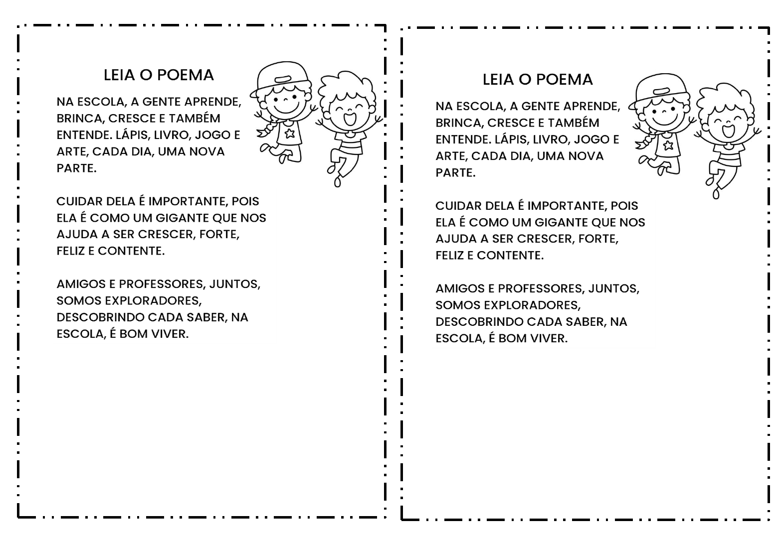 <p>Atividades Atividades</p><p>1- De acordo com o poema, complete as frases:</p><p>A) Na escola, a gente ________________, __________________,</p><p>__________________________e ___________________________</p><p>_______________________________.</p><p>B) Cuidar dela é __________________________________.</p><p>C) Amigos e professores, juntos somos________________.</p><p>@</p><p>g</p><p>ilc</p><p>a</p><p>ss</p><p>ia</p><p>ro</p><p>sa</p><p>@</p><p>g</p><p>ilc</p><p>a</p><p>ss</p><p>ia</p><p>ro</p><p>sa</p><p>1- De acordo com o poema, complete as frases:</p><p>A) Na escola, a gente ________________, __________________,</p><p>__________________________e ___________________________</p><p>_______________________________.</p><p>B) Cuidar dela é __________________________________.</p><p>C) Amigos e professores, juntos somos________________.</p><p>Atividades Atividades</p><p>@</p><p>g</p><p>ilc</p><p>a</p><p>ss</p><p>ia</p><p>ro</p><p>sa</p><p>@</p><p>g</p><p>ilc</p><p>a</p><p>ss</p><p>ia</p><p>ro</p><p>sa</p><p>Para Casa Para Casa</p><p>Escreva o nome de sua escola.</p><p>_________________________________________________________</p><p>_________________________________________________________</p><p>Qual o nome da diretora?</p><p>_________________________________________________________</p><p>_________________________________________________________</p><p>Escreva uma frase bem bonita sobre sua escola.</p><p>_________________________________________________________</p><p>_________________________________________________________</p><p>_________________________________________________________</p><p>_________________________________________________________</p><p>_________________________________________________________</p><p>Escreva o nome de sua escola.</p><p>_________________________________________________________</p><p>_________________________________________________________</p><p>Qual o nome da diretora?</p><p>_________________________________________________________</p><p>_________________________________________________________</p><p>Escreva uma frase bem bonita sobre sua escola.</p><p>_________________________________________________________</p><p>_________________________________________________________</p><p>_________________________________________________________</p><p>_________________________________________________________</p><p>_________________________________________________________</p><p>Atividades Atividades</p><p>@</p><p>g</p><p>ilc</p><p>a</p><p>ss</p><p>ia</p><p>ro</p><p>sa</p><p>@</p><p>g</p><p>ilc</p><p>a</p><p>ss</p><p>ia</p><p>ro</p><p>sa</p><p>Escreva um pequeno texto sobre sua escola.</p><p>_________________________________________________________</p><p>_________________________________________________________</p><p>_________________________________________________________</p><p>_________________________________________________________</p><p>_________________________________________________________</p><p>_________________________________________________________</p><p>_________________________________________________________</p><p>_________________________________________________________</p><p>_________________________________________________________</p><p>_________________________________________________________</p><p>_________________________________________________________</p><p>_________________________________________________________</p><p>_________________________________________________________</p><p>_________________________________________________________</p><p>_________________________________________________________</p><p>Escreva um pequeno texto sobre sua escola.</p><p>_________________________________________________________</p><p>_________________________________________________________</p><p>_________________________________________________________</p><p>_________________________________________________________</p><p>_________________________________________________________</p><p>_________________________________________________________</p><p>_________________________________________________________</p><p>_________________________________________________________</p><p>_________________________________________________________</p><p>_________________________________________________________</p><p>_________________________________________________________</p><p>_________________________________________________________</p><p>_________________________________________________________</p><p>_________________________________________________________</p><p>_________________________________________________________</p>