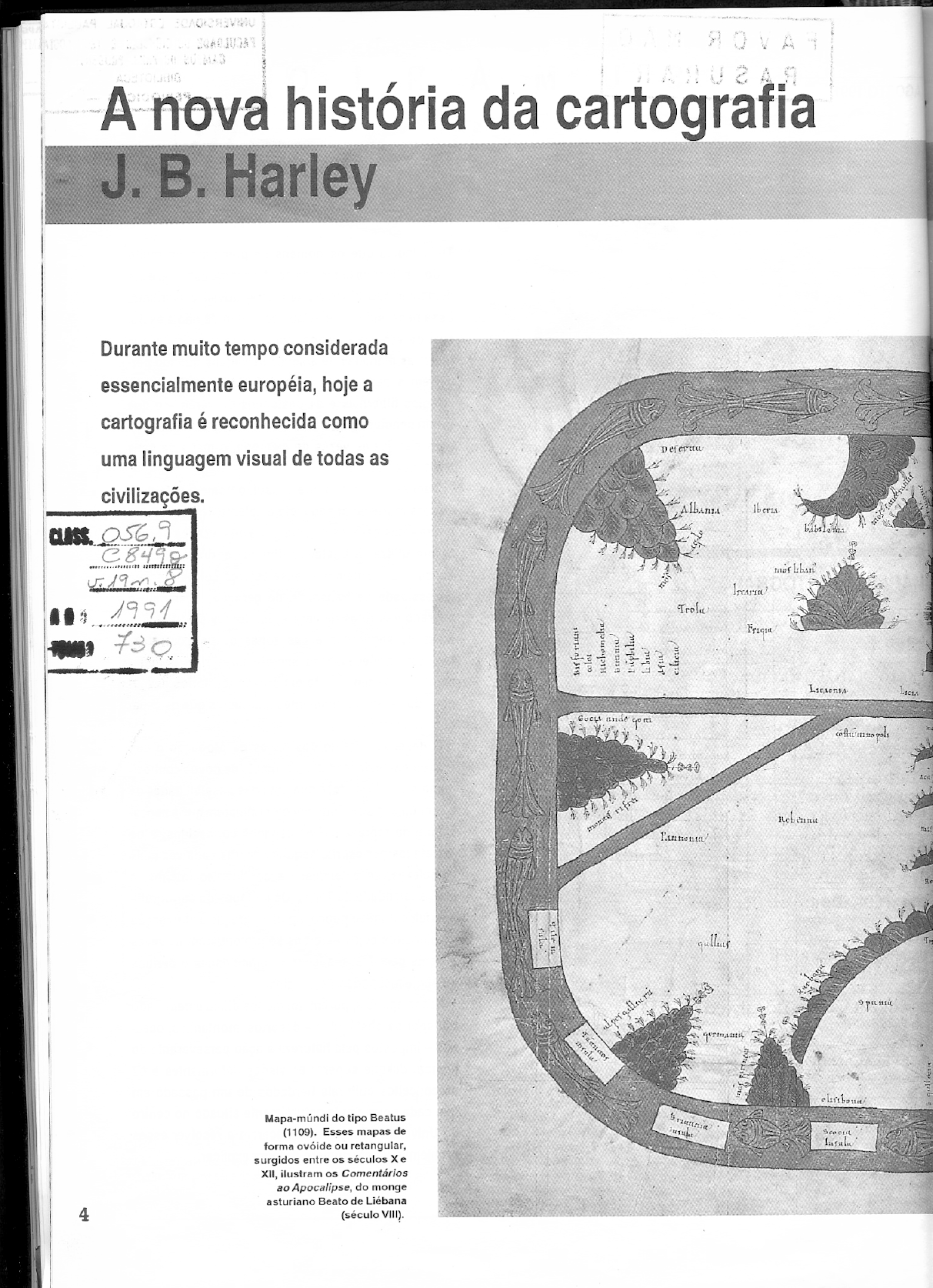<p>A nova história da cartografia Harley Durante muito tempo considerada essencialmente européia, hoje a cartografia é reconhecida como uma linguagem visual de todas as civilizações. CLASS. 056.9 C8490 1991 730 Mapa-mundi do tipo Beatus (1109). Esses mapas de forma ovóide ou retangular, surgidos séculos Xe entre os XII, ilustram os Comentários ao Apocalipse, do monge asturiano Beato de Liébana 4 (século VIII).</p><p>O S mapas sempre existiram, ou, pelo menos, o verso que trouxe inumeráveis Os desejo de balizar o espaço sempre esteve presente mapas precederam a escritura e a notação matemá- na mente humana. A apreensão do meio ambiente tica em muitas sociedades, mas somente no século e a elaboração de estruturas abstratas para XIX foram associados às disciplinas modernas cujo representá-lo foram uma constante da vida em conjunto constitui a cartografia. Mas isso não im- sociedade, desde os primórdios da humanidade até pede que os mapas de épocas anteriores remontem os nossos dias. Mas a história da cartografia teve às próprias raízes de nossa cultura. início com o primeiro testemunho tangível de mapa autêntico mais antigo foi elaborado a representação cartográfica (o fato de desenhar um cerca de 6000 a.C. Descoberto em 1963, durante mapa sobre o primeiro suporte disponível), dando uma escavação arqueológica em Çatal Höyuk, na existência concreta à antiga abstração. região centro-ocidental da Turquia, representa o Ao substituírem o espaço real por um espaço povoado neolítico do mesmo nome. traçado das analógico (processo básico da cartografia), os ho- ruas e casas, conforme os vestígios resgatados, ti- mens adquiriram um domínio intelectual do uni- nha ao fundo o vulcão Hasan Dag em erupção. Esse mapa primitivo guarda alguma semelhança com as plantas das cidades modernas, mas sua finalidade era totalmente distinta. sítio em que foi encontra- do era um santuário ou local sagrado, e ele foi criado como parte de um ato ritual, como um "pro- duto de momento", sem a intenção de ser preserva- do após o cumprimento do rito. India Uma visão eurocêntrica Somente há alguns anos mapas como os de Çatal Höyuk - e gravações e pinturas similares em ro- chas da África, das Américas, da Ásia e da Euro- pa começaram a ser estudados como uma cate- goria da pré-história cartográfica. Isso reflete não apenas as dificuldades para identificar mapas das sociedades primitivas, mas também a tendência na história da cartografia a tornar mais rígidos os cânones dos mapas considerados "aceitáveis". Desde o século XIX, a história da cartografia foi basicamente assimilada à da tradição ocidental, que tem suas origens no Oriente Próximo, no Egito e na era greco-romana, e que, enobrecida pelo con- tato com a Europa, atinge seu auge no atual mundo desenvolvido. A evolução dessa história da carto- grafia-apesar de uma interrupção na Idade Média, de pequenos retrocessos e de grandes revoluções partiu de formas rudimentares para alcançar um nível superior de aplicação numérica. Os mapas eram considerados marcos significa- tivos da evolução da humanidade; por conseguin- te, aqueles que não indicassem algum progresso rumo à objetividade deixavam de ser seriamente estudados. Mesmo alguns dos primeiros mapas produzidos pela cultura européia, como osgrandes planisférios da Idade Média Cristã, eram conside- rados indignos de atenção científica. No início des- te século, Charles Raymond descreveu os principais mapas da baixa Idade Média - o Hereford e o Ebstorf como "monstruosidades não-científi- cas, absolutamente inúteis". Os mapas das culturas não-européias eram considerados ainda mais estranhos ao epicentro da cartografia. A opinião tradicional sobre a história da cartografia islâmica, por exemplo, realça a ten- dência dos europeus de ver o mundo segundo sua própria Os mapas do Islã eram tidos como o fruto da herança grega, sem se levar em conta até que ponto as traduções árabes de obras 5</p><p>como o Almagesto e a Geografia de Ptolomeu foram gimento de inovações técnicas, como planos qua- inteligentemente adaptadas aos objetivos da cultu- driculados, escalas regulares, signos abstratos con- ra e da religião islâmicas. Os mapas árabes - como vencionais e até curvas de nível, ou seja, a todos os os da Escola Balkhi, por exemplo - eram analisados aspectos correspondentes ao modelo ocidental de segundo o critério ptolemaico, ao invés de serem excelência cartográfica. Assim, os mapas da dinas- apreciados como uma fusão de tradições cartográ- tia Han encontrados numa tumba nas imediações ficas em que se integravam tanto elementos persas de Changsha, na província de Hunan, foram acei- quanto gregos. tos pelos especialistas chineses e ocidentais como a Os mapas de culturas não-européias só rece- confirmação de um precoce desenvolvimento cien- biam certa atenção da parte dos historiadores oci- tífico da cartografia, convertendo-se em antepassa- dentais quando apresentavam alguma semelhança dos em linha direta do mapa moderno. com os mapas europeus. o interesse era descobrir Deu-se muita atenção às tradições "científicas" similitudes cartográficas nessas culturas remotas e da cartografia chinesa e aos efeitos de sua difusão não analisar suas diferenças. De acordo com seme- no Japão e na Coréia, relegando-se a segundo plano lhante lógica, um eminente cientista afirmava que as culturas cujas práticas cartográficas diferiam das a notável produção da cartografia chinesa, com ocidentais. Os mapas traçados na Índia antes da exemplares que remontavam ao século IV a.C., era ocupação britânica, com signos desconhecidos e "a mesma ciência" desenvolvida antes na Europa. estilo pictórico, só muito recentemente passaram a Nessa história comparada da cartografia, da- ser citados nas descrições convencionais da história va-se muita atenção aos aspectos matem