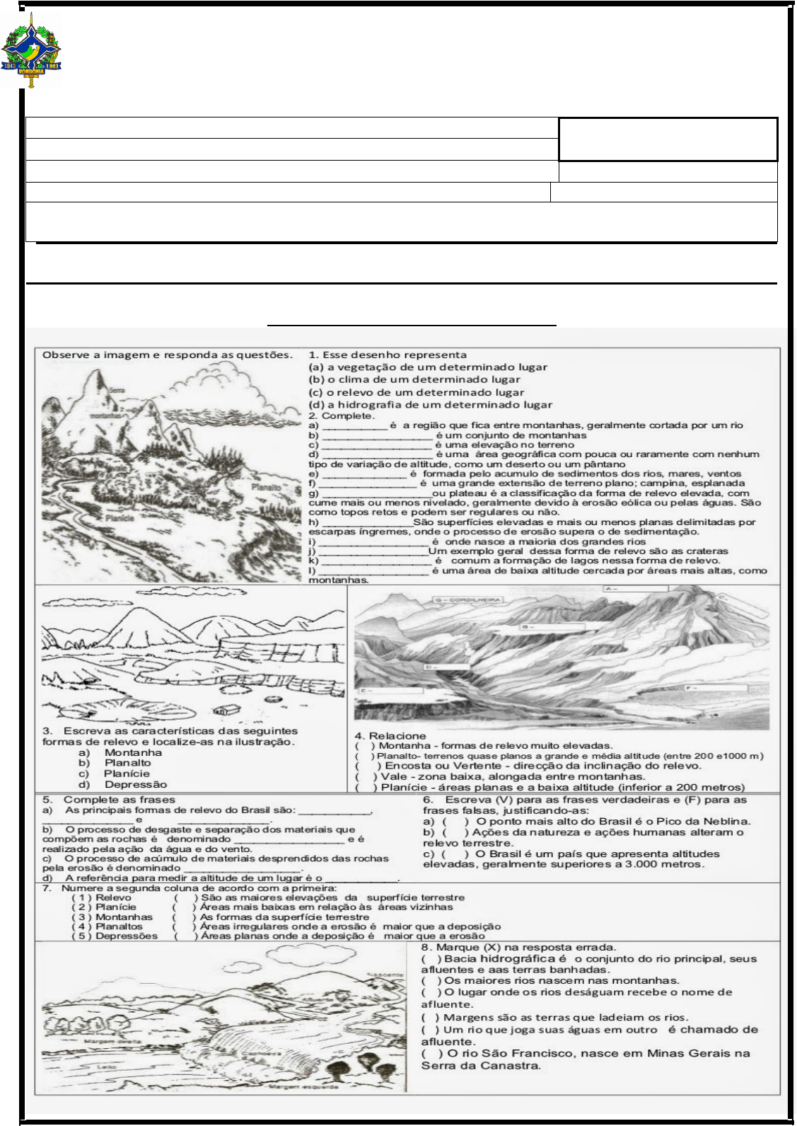 <p>GOVERNO DO ESTADO DE RONDÔNIA</p><p>SECRETARIA DE ESTADO DA EDUCAÇÃO</p><p>E.E.E.F.M. GOVERNADOR JORGE TEIXEIRA DE OLIVEIRA</p><p>SÉRIE: 8º Ano Turma: __________</p><p>Nota:</p><p>DISCIPLINA: Geografia</p><p>PROFESSOR (A): Aparecida Conceição de Moura Souza</p><p>Valor: 5,0</p><p>2º BIMESTRE/2024</p><p>DATA: ____/___/____</p><p>ALUNO (A):_________________________________________________________________________</p><p>AVALIAÇÃO BIMESTRAL DE GEOGRAFIA</p><p>Instruções:</p><p>1. Identifique sua folha 2. Responda à caneta 3. Não faça rasuras e nem borrões 4. Escreva de forma legível</p><p>Tenha uma ótima prova!</p><p>ATIVIDADES DE AULA REPOSITIVA</p><p>image1.wmf</p><p>oleObject1.bin</p><p>�</p><p>image2.jpeg</p>