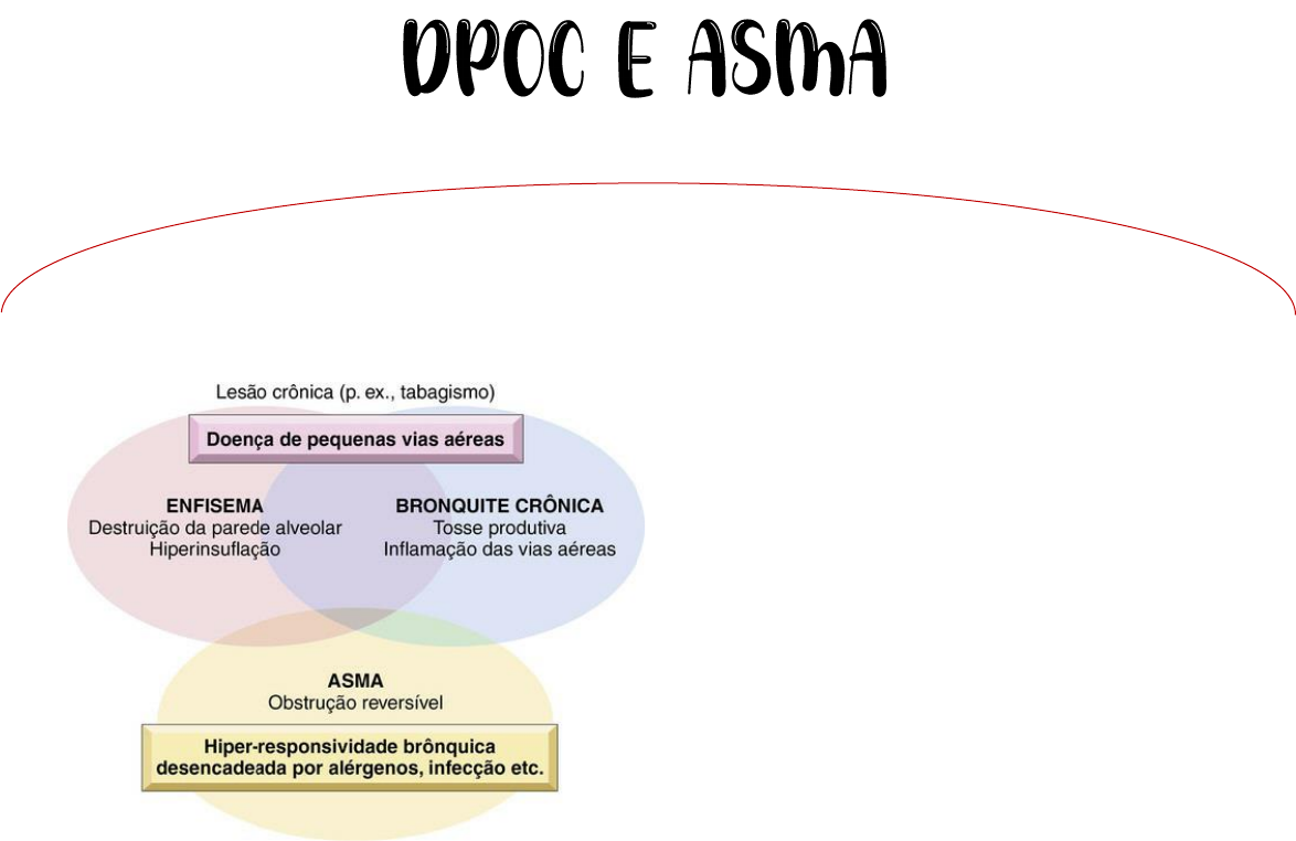 I ns ta : @ fe l ip e s r ibe i i r o_ - s i t e : l i nk t r . e e / f e l ip e s r i be i r o_ FELIPE RIBEIRO – MEDICINA DPOC ENGLOBA DUAS DOENÇAS • ENFISEMA • BRONQUITE OBSTRUTIVA CRÔNICA DEFINIÇÃO • OBSTRUÇÃO DO FLUXO DE AR NAS VIAS RESPIRATÓRIAS PULMONARES • APRISIONAMENTO DO AR • CAUSAS PRINCIPAL • TABAGISMO MENOS COMUM • Defic iência hereditária de alfa1- antr itr ipsina • ASMA • HIPER-RESPONSIVIDADE DAS VIAS RESPIRATÓRIAS PROBLEMA PRINCIPAL Difíc il detecção em estágios inic iais, quando se percebe ela já está em estágios muito avançados POPULAÇÃO MAIS EXPOSTA A DPOC • TABAGISTA • IDOSOS • TRABALHADORES EXPOSTOS POEIRA DE FABRICAS (ELES PERDEM FUNÇÃO PULMONAR COM O TEMPO) • FATORES GENÉTICOS I ns ta : @ fe l ip e s r ibe i i r o_ - s i t e : l i nk t r . e e / f e l ip e s r i be i r o_ PATOGÊNESE • Inf lamação na parede brônquica • Fibrose na parede brônquica • Hipertrof ia das glândulas submucosas • Hipersecreção do muco Esses achados contr ibuem para obstrução do fluxo aéreo impedindo a correspondência entre ventilação e perfusão A f ibrose contribui principalmente para a destruição do tec ido alveolar o que gera a diminuição da superfíc ie para as trocas gasosas prejudicando a taxa de f luxo expiratór io , com isso temos um aumento na retenção de ar e colapso das vias respiratór ias ENFISEMA DEFINIÇÃO • ALARGAMENTO DOS ESPAÇOS AÉREOS E DESTRUIÇÃO DO TECIDO ALVEOLAR SEM FIBROSE EVIDENTE • PERDA DE ELASTICIDADE PULMONAR • AUMENTO DOS ALVÉOLOS • DILATAÇÃO IRREVERSIVEL DOS ESPAÇOAS AÉREOS Acredita-se que o enfisema é gerado pela degradação de elastina (proteína de fibras elásticas) pelas proteases (enzimas que degradam proteínas) PRINCIPAIS CAUSAS • TABAGISMO – GERA UMA LESÃO PULMONAR • DEFICIÊNCIA DE ALFA1 -ANTITRIPSINA – PROTEGE O PULMÃO DE LESÕES O QUE ACONTECE Acredita-se que o enfisema é gerado pela degradação de elastina (proteína de fibras elásticas) pelas proteases (enzimas que degradam proteínas). Normalmente o ser humano possui enzimas antiproteases (alfa1 – antitr ipsina) que protegem o pulmão dessas proteases que digerem a elastina. Porém a fumaça do cigarro acelera os processos células , inclu indo de células inflamatór ias que irá resultar no aumento da l iberação de proteases. Ou seja, você que f ica aí fumando VAPE possui uma alta taxa de metabolização celular que faz com que as células produzem e l iberem uma I ns ta : @ fe l ip e s r ibe i i r o_ - s i t e : l i nk t r . e e / f e l ip e s r i be i r o_ quantidade insufic iente de antiproteases comparada a quantidade de proteases que o senhorio está produzindo com essa fumaça. Com isso, a alta concentração de proteases começa a desencadear um processo descontrolado de destruição de tec ido elástico (elastina) podendo gerar quadros de enf isema. A maior ia das pessoas com en fisema antes dos 40 anos possuem uma def ic iênc ia na antiproteases (alfa1- antitr ipsina). Vale salientar aqui que a quantidade de alfa1 - antr itr ipsina que uma pessoa tem é determinada são determinadores por um par de genes chamados genes PI T IPOS DE ENFISEMA ENFISEMA CENTROLOBULAR • Represamento aéreo no centro do lobo pulmonar. • TÍPICO DO TABAGISMO • Mais comum em fumantes do sexo masculino • Geralmente as partes centrais ou proximais dos ác inos, formadas por bronquíolos respiratór ios , são afetadas, enquanto os alvéolos distais são poupados • Lembrar que aqui estamos tratando de aprisionamento de AR, ou seja, as imagens NÃO f icaram brancas, mas sim, mais pretas. ENFISEMA PARASSEPTAL – BOLHAS • Represamento aéreo na per iferia dos septos • Lembrar que aqui estamos tratando de aprisionamento de AR, ou seja, as imagens NÃO f icaram brancas, mas sim, mais pretas. I ns ta : @ fe l ip e s r ibe i i r o_ - s i t e : l i nk t r . e e / f e l ip e s r i be i r o_ Perceba nessa imagem acima o acumulo de bolhas pretas nas periferias, característ ica principal de enfisema parasseptal . Note ainda que essas bolhas estão revestidas por uma membra que del imita sua conformação. Já nessa região em amarelo não temos mais essa membrana del imitando essas bolhas. Isso se dá porque ao decorrer da evolução do enf isema essas bolhas se “ESTOURAM” o que faz com que caia gás na caixa torác ica causando PNEUMOTÓRAX Nessa altura do campeonato f ica obvio imaginar que se atemos aquele gás na região de per ifer ia o paciente não consegue inspirar de forma correta e adequada, causando assim uma DISPNEIA. ENFISEMA PANLOBULAR • Represamento aéreo general izado • TÍPICO DA DEFIC IENCIA DE ALFA1 - ANTITRIPSINA • Acinos uniformemente aumentados I ns ta : @ fe l ip e s r ibe i i r o_ - s i t e : l i nk t r . e e / f e l ip e s r i be i r o_ • Mais comum em pacientes com def ic iênc ia de alfa1- antritr ipsina • Lembrar que aqui estamos tratando de aprisionamento de AR, ou seja, as imagens NÃO f icaram brancas, mas sim, mais pretas. Perceba a quantidade de “bolhas” com delimitações e sem del imitações de forma bilobular, ou seja, nos dois pulmões, caracterizando um enfisema panlobular A MAIORIA DOS PACIENTES COM DPOC GRAVE POSSUI ELEMENTOS DE CENTROLOBULAR E PANLOBULAR I ns ta : @ fe l ip e s r ibe i i r o_ - s i t e : l i nk t r . e e / f e l ip e s r i be i r o_ RESUMO DO TABAGISMO NO ENFISEMA 1- INDIVIDUO FUMANTE 2- CÉLULAS INFLAMATÓRIAS EM ATIVAÇÃO 3- LIBERAÇÃO DE ELASTASE E PROTEASES AO MESMO TEMPO QUE COMEÇAM A INIBIR AS ALFA1 - ANTRITRIPSINA 4- DEFICIÊNCIA DE ALFA1- ANTRITRIPSINA 5- PROTEASES SE SOBRESSAINDO (DESTRÓI PROTEÍNAS, E QUEM REVESTE NOSSO PULMÃO SÃO AS ELASTINAS QUE SÃO PROTEÍNAS, OU SEJA, AS PROTEASES DIGEREM AS ELASTINAS) 6- ENFISEMA I ns ta : @ fe l ip e s r ibe i i r o_ - s i t e : l i nk t r . e e / f e l ip e s r i be i r o_ CASO CLINICO Nesse caso da imagem acima o médico estava suspeitando de uma possível 