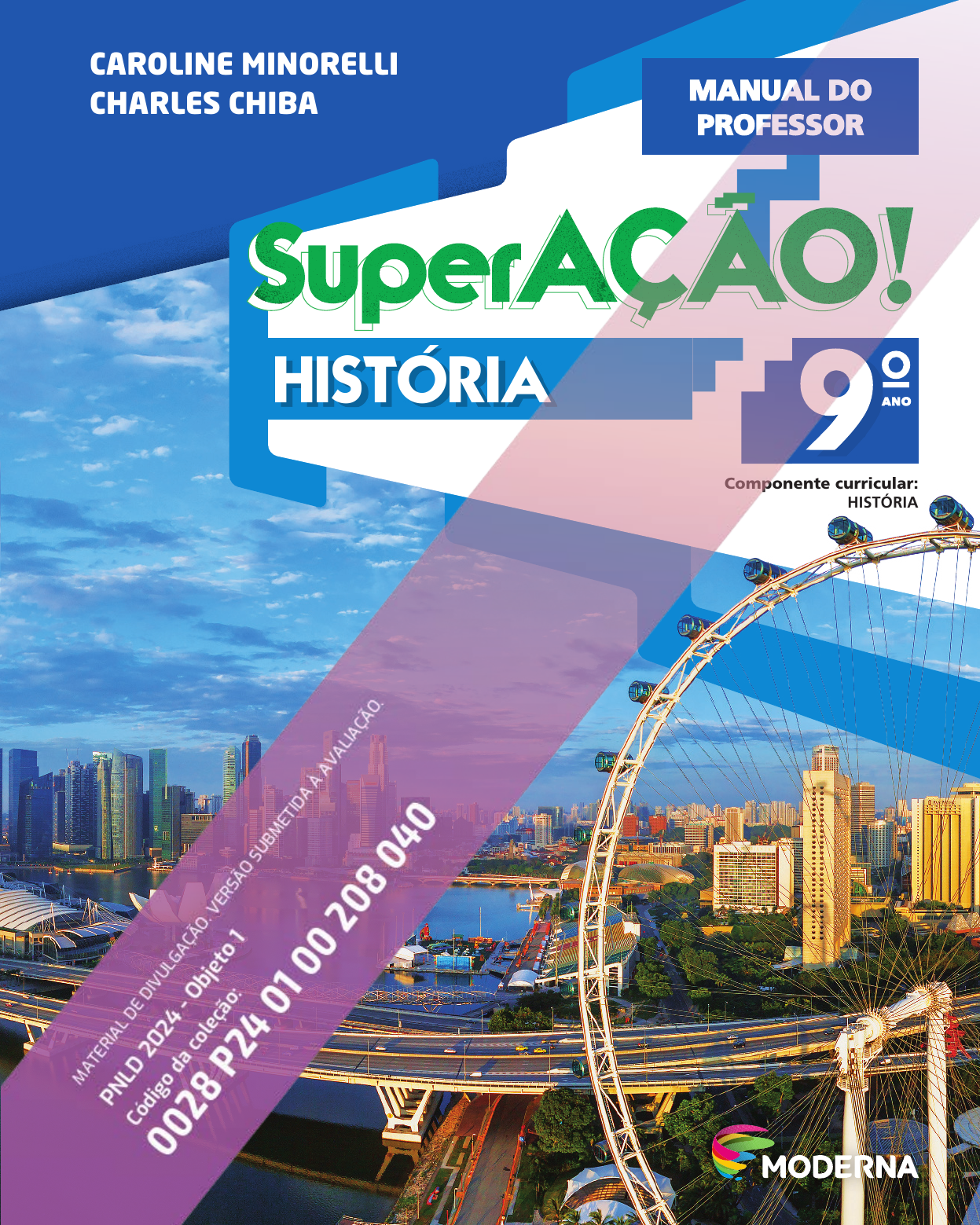 <p>Componente curricular:</p><p>HISTÓRIA</p><p>HISTORIA</p><p>CAROLINE MINORELLI</p><p>CHARLES CHIBA MANUAL DO MANUAL DO</p><p>PROFESSORPROFESSOR</p><p>1a edição</p><p>São Paulo, 2022</p><p>Componente curricular: HISTÓRIA</p><p>Caroline Minorelli</p><p>Licenciada e bacharela em História pela Universidade Estadual de Londrina (UEL-PR).</p><p>Especialista em História e Teorias da Arte: Modernidade e Pós-Modernidade pela</p><p>Universidade Estadual de Londrina (UEL-PR).</p><p>Atuou como professora da rede pública de ensino básico no estado do Paraná.</p><p>Autora de livros didáticos para o ensino básico.</p><p>Charles Chiba</p><p>Licenciado e bacharel em História pela Universidade Estadual de Londrina (UEL-PR).</p><p>Especialista em História Social e Ensino de História pela Universidade Estadual de Londrina (UEL-PR).</p><p>Atuou como professor da rede particular de ensino básico no estado do Paraná.</p><p>Autor de livros didáticos para o ensino básico.</p><p>HISTORIA</p><p>MANUAL DO MANUAL DO</p><p>PROFESSORPROFESSOR</p><p>1 3 5 7 9 10 8 6 4 2</p><p>Reprodução proibida. Art. 184 do Código Penal e Lei 9.610 de 19 de fevereiro de 1998.</p><p>Todos os direitos reservados</p><p>EDITORA MODERNA LTDA.</p><p>Rua Padre Adelino, 758 - Belenzinho</p><p>São Paulo - SP - Brasil - CEP 03303-904</p><p>Atendimento: Tel. (11) 3240-6966</p><p>www.moderna.com.br</p><p>2022</p><p>Impresso no Brasil</p><p>Projeto e produção editorial: Scriba Soluções Editoriais</p><p>Edição: Natalia Figueiredo Cirino de Moura, Alexandre de Paula Gomes</p><p>Assistência editorial: João Cabral de Oliveira</p><p>Colaboração técnico-pedagógica: Valeria Jacó da Silva</p><p>Coordenação de preparação de texto e revisão: Moisés M. da Silva</p><p>Supervisão de produção: Priscilla de Freitas Cornelsen</p><p>Assistência de produção: Lorena França Fernandes Pelisson</p><p>Projeto gráfico: Laís Garbelini</p><p>Coordenação de arte: Tamires R. Azevedo</p><p>Coordenação de diagramação: Adenilda Alves de França Pucca (Nil)</p><p>Diagramação: Ana Rosa Cordeiro de Oliveira, Carlos Cesar Ferreira,</p><p>Fernanda Miyabe Lantmann, Leda Cristina Teodorico</p><p>Pesquisa iconográfica: Tulio Sanches</p><p>Autorização de recursos: João Henrique Pedrão</p><p>Tratamento de imagens: Janaina Oliveira e Jéssica Sinnema</p><p>Gerência de design e produção gráfica: Patricia Costa</p><p>Coordenação de produção: Denis Torquato</p><p>Gerência de planejamento editorial: Maria de Lourdes Rodrigues</p><p>Coordenação de design e projetos visuais: Marta Cerqueira Leite</p><p>Capa: Mariza de Souza Porto, Tatiane Porusselli, Daniela Cunha e Apis Design</p><p>Foto: Foto aérea de Cingapura, em 2013. © Dmitry Moiseenko/AirPano LLC</p><p>Coordenação de revisão: Elaine C. del Nero</p><p>Coordenação de pesquisa iconográfica: Flávia Aline de Morais</p><p>Coordenação de bureau: Rubens M. Rodrigues</p><p>Pré-impressão: Alexandre Petreca, Fabio Roldan, José Wagner Lima Braga,</p><p>Marcio H. Kamoto, Selma Brisolla de Campos</p><p>Coordenação de produção industrial: Wendell Monteiro</p><p>Impressão e acabamento:</p><p>Cingapura é um dos maiores centros financeiros do</p><p>mundo. Tem um sistema educacional considerado</p><p>excelente e fortes incentivos para atrair empresas de</p><p>outros países.</p><p>III</p><p>Apresentação</p><p>Este Manual do professor é um material de apoio que fornece orientações para auxiliar</p><p>seu dia a dia em sala de aula. Esta coleção tem como objetivo ensinar aos alunos, além dos</p><p>conhecimentos específicos do componente curricular, habilidades, atitudes e valores, por meio</p><p>de diferentes temas, atividades e práticas pedagógicas que desenvolvam a argumentação, o pen-</p><p>samento crítico, a autonomia, a empatia e a cooperação, de maneira prática e contextualizada.</p><p>No tópico Conheça a estrutura da coleção, você vai encontrar informações detalhadas</p><p>e organizadas sobre a estrutura da coleção, tanto do livro do aluno quanto do Manual do</p><p>professor. Na sequência, apresentamos subsídios teórico-metodológicos acerca do trabalho</p><p>com o componente curricular de História, sua relação com a Base Nacional Comum Curricular</p><p>(BNCC), dicas e orientações relativas à prática docente, ao processo de avaliação, à relação</p><p>com outras áreas de conhecimento e ao aprendizado em sala de aula.</p><p>Ao final da primeira parte deste manual, disponibilizamos a transcrição das habilidades</p><p>de História da BNCC, seguidas pelo quadro de conteúdos e progressões e pela proposta de</p><p>sugestões de cronograma, ambos referentes a este volume, para este ano letivo. Esses elemen-</p><p>tos estão apresentados de maneira organizada, com o intuito de auxiliá-lo em seu planejamen-</p><p>to diário, colaborando para que ele seja mais prático e dinâmico.</p><p>Na segunda parte deste manual, você vai encontrar a reprodução do livro do aluno, acom-</p><p>panhada de explicações sobre como trabalhar os conteúdos e diversas orientações e co-</p><p>mentários, como os objetivos e as justificativas do trabalho com os conteúdos, comentários</p><p>explicativos relativos às atividades, sugestões de atividades complementares e de avaliação,</p><p>propostas de integração com outros componentes curriculares, para que você possa enrique-</p><p>cer ainda mais o processo de ensino-aprendizagem.</p><p>Esperamos, assim, que este manual contribua para o seu trabalho e favoreça a formação</p><p>de alunos aptos a exercer sua cidadania de maneira crítica e ética, respeitando o outro e a</p><p>diversidade em suas diferentes formas.</p><p>Desejamos a você um ótimo ano letivo!</p><p>IV</p><p>Sumário</p><p>Conheça a estrutura da coleção .......................................................................................V</p><p>Livro do aluno ...............................................