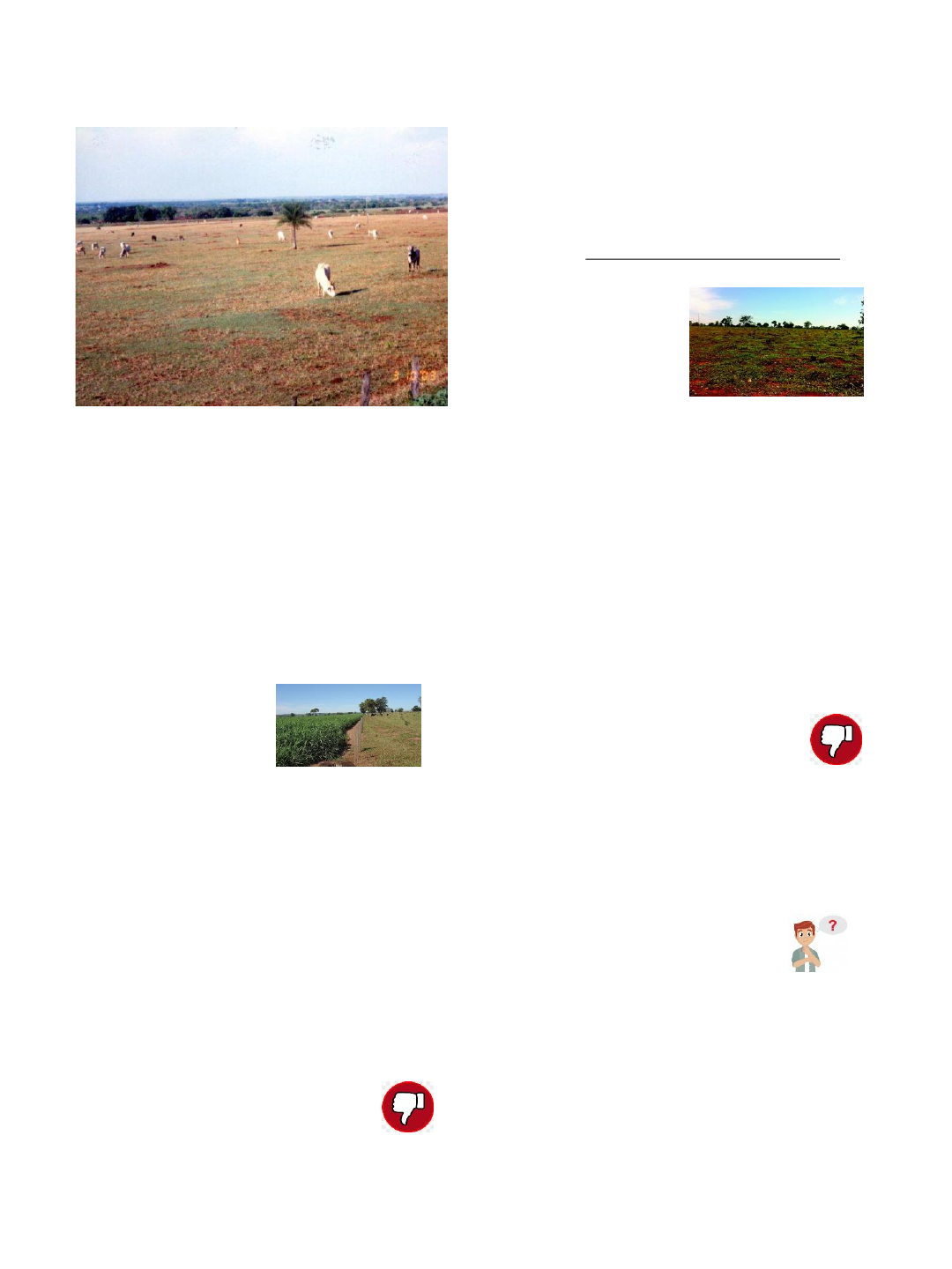 <p>25/04/2022</p><p>1</p><p>Reforma de pastos degradados Degradação - conceito</p><p>• É o processo de diminuição da produtividade</p><p>e da capacidade natural de recuperação ,</p><p>culminando com a degradação avançada dos</p><p>recursos.</p><p>Capacidade natural de recuperação</p><p>✓ É necessária para garantir a produtividade</p><p>de matéria verde para produção de</p><p>herbívoros.</p><p>✓ É necessária para as pastagens reagirem às</p><p>agressões de pragas e doenças.</p><p>Causas da degradação dos pastos</p><p>• Ocorre pela adoção de práticas de manejo</p><p>inadequadas.</p><p>• As características físicas e químicas do solo,</p><p>• Os aspectos relacionados à espécie forrageira,</p><p>a presença de pragas e doenças,</p><p>• A má formação da pastagem pelo</p><p>estabelecimento inadequado</p><p>Causas da degradação dos pastos</p><p>• A compactação e a erosão do solo,</p><p>• A falta de correção e adubação do solo, o que</p><p>prejudica a assimilação de fósforo (um</p><p>nutriente crítico para o crescimento das</p><p>plantas),</p><p>• O manejo inadequado (superlotação) que</p><p>propicia o aparecimento de espécies</p><p>invasoras.</p><p>Processo de degradação dos pastos</p><p>Como identificar?</p><p>• Redução da produção de forragens</p><p>• Diminuição na capacidade de lotação e o ganho</p><p>de peso e conversão alimentar.</p><p>• Aparecimento de plantas invasoras, predispondo</p><p>ao aparecimento de pragas</p><p>• Compactação, diminuição das taxas de infiltração</p><p>e da capacidade de retenção de água</p><p>• Erosão e o assoreamento de nascentes, lagos e</p><p>rios.</p><p>25/04/2022</p><p>2</p><p>Impactos da degradação</p><p>• Para minimizar estes impactos, é necessário um</p><p>conjunto de medidas:</p><p>• Abordagem multidisciplinar</p><p>• Visão sistêmica, do todo e de longo prazo:</p><p>✓ Causas</p><p>✓ Tempo de curso</p><p>• Não voltam a ter as características iniciais.</p><p>• Para que haja a recuperação, é essencial a presença de</p><p>uma população de plantas adequadas, caso contrário, a</p><p>pastagem deverá ser totalmente refeita (renovação).</p><p>Recuperação de pastagens</p><p>• É preciso que sejam estudadas as</p><p>características do sistema, para adoção de</p><p>uma das duas formas:</p><p>1. Forma direta</p><p>2. Forma indireta</p><p>Recuperação – Forma direta</p><p>• Pode ser parcial ou total</p><p>• São usados métodos mecânicos,</p><p>• Químicos e agronômicos</p><p>• Sem culturas intermediárias com espécies</p><p>anuais.</p><p>✓ Áreas que não permitem o cultivo de</p><p>grãos.</p><p>✓ Onde não tenha o maquinário e a</p><p>infraestrutura necessários.</p><p>Recuperação – forma indireta</p><p>• Utiliza-se a implantação de culturas anuais.</p><p>• Na forma indireta é feito o plantio de</p><p>pastagens anuais (como milheto ou sorgo) ou</p><p>de lavouras como soja e o milho para</p><p>recuperação ou renovação.</p><p>Recuperação de pastagens</p><p>• Independente da forma de recuperação, é</p><p>necessário a orientação de um Engenheiro</p><p>Agrônomo.</p><p>Por exemplo:</p><p>✓ Direta – Prescrição de herbicidas,...</p><p>✓ Indireta - Orientação desde o plantio,</p><p>controle de insetos, ervas daninhas...</p><p>25/04/2022</p><p>3</p><p>Conservação do solo</p><p>• É fundamental para evitar a degradação das</p><p>pastagens.</p><p>Fatores que comprometem a saúde do</p><p>solo</p><p>• Precipitação pluviométrica,</p><p>• Características do solo (arenoso, argiloso,...)</p><p>• Declividade</p><p>• Comprimento da encosta</p><p>• Cobertura vegetal</p><p>• Tipo de manejo utilizado no solo</p><p>Fatores que comprometem a saúde do</p><p>solo</p><p>✓O solo argiloso é mais sujeito a compactação.</p><p>• Solo argiloso + superlotação = Tendência a</p><p>compactação.</p><p>• Solo argiloso + superlotação + superpastejo =</p><p>Tendência a compactação e degradação.</p><p>Fatores que comprometem a saúde do</p><p>solo associados</p><p>• Nível de encharcamento do solo:</p><p>➢Qto maior, mais a água escorre</p><p>• Declividade x nível de encharcamento:</p><p>➢Alta declividade + solo encharcado = EROSÃO</p><p>Fatores que comprometem a saúde do</p><p>solo associados</p><p>• Declividade x nível de encharcamento x tipo</p><p>de solo:</p><p>➢Alta declividade + solo encharcado + solo</p><p>arenoso = EROSÃO</p><p>Fatores que comprometem a saúde do</p><p>solo associados</p><p>• Alta declividade + solo encharcado + solo</p><p>arenoso + ausência de cobertura vegetal =</p><p>arrasto de nutrientes + EROSÃO</p><p>25/04/2022</p><p>4</p><p>Controle da erosão</p><p>• Manter sempre a cobertura vegetal</p><p>• Uso de curvas de nível</p><p>Qualidade do solo</p><p>• É fundamental para a manutenção da</p><p>forrageira (qualidade e quantidade).</p><p>• É fundamental a reposição de nutrientes para</p><p>evitar a exaustão química.</p><p>Qualidade do solo</p><p>• Avaliação periódica do solo – Análise de solo</p><p>“Evitará gastos desnecessários oriundos da</p><p>tomada de decisões sem embasamento</p><p>técnico.”</p><p>• Se necessário, realizar adubação suplementar</p><p>✓ Fósforo (P)</p><p>✓ Nitrogênio (N)</p><p>✓ Potássio (K)</p><p>Qualidade do solo</p><p>• Ajuste constante da taxa de lotação adequada</p><p>• Evitar o super pastejo</p><p>• Associação com “floresta” – plantio de árvores</p>
