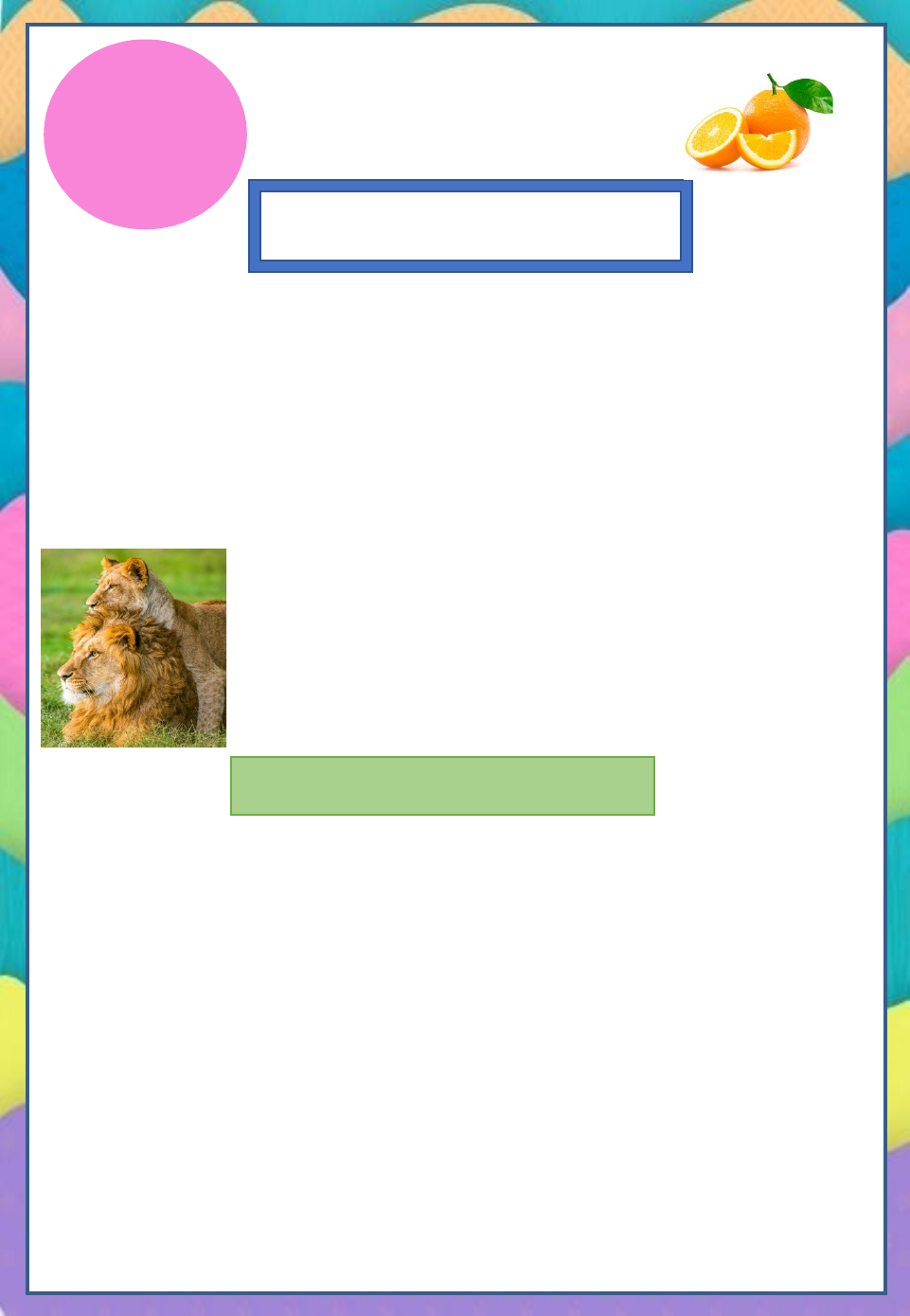 <p>Banco de palavras</p><p>O texto fala sobre: ( ) as compras da leoa ( ) a receita da leoa.</p><p>Por que o leão chamou a leoa para conversar? ____________________________________________________________________________________________________</p><p>Pinte todas as palavras que começam com a letra l.</p><p>Você merece todas as estrelas!</p><p>La- Le- Li- Lo- Lu</p><p>la- le- li- lo- lu</p><p>lima</p><p>lua</p><p>Luana</p><p>lixa</p><p>limão</p><p>leão</p><p>limonada</p><p>luta</p><p>lona</p><p>Léo</p><p>Lilica</p><p>lupa</p><p>L l</p><p>O leão chamou a leoa para conversar. Ficou sabendo que ela comprou um leque, um lenço e uma luva. Agora vão ter que economizar.</p><p>Interagindo com o texto</p><p>Ma- Me- Mi- Mo- Mu</p><p>ma- me- mi- mo- mu</p><p>mala</p><p>macaco</p><p>melão</p><p>hoje</p><p>hábito</p><p>Mel</p><p>melancia</p><p>minhoca</p><p>hóstia</p><p>hóspede</p><p>menino</p><p>Maria</p><p>mola</p><p>hino</p><p>higiene</p><p>mamão</p><p>Murilo</p><p>Miguel</p><p>harpa</p><p>história</p><p>Mm</p><p>Banco de palavras</p><p>O macaco é um guloso, bem cedo, de manhã pendurado em um galho gosta de comer maçã.</p><p>Interagindo com o texto</p><p>O texto fala de quem? _________________________</p><p>O que o macaco é? ________________________</p><p>Onde fica pendurado o macaco? __________________</p><p>O que ele gosta de comer? _______________________</p><p>Procure, no banco de palavras, os nomes das imagens e pinte de verde.</p><p>Amo seu capricho!</p><p>image7.png</p><p>image8.jpeg</p><p>image9.jpeg</p><p>image10.png</p><p>image11.jpeg</p><p>image12.jpeg</p><p>image1.jpeg</p><p>image2.jpeg</p><p>image3.png</p><p>image4.jpeg</p><p>image5.jpeg</p><p>image6.png</p>