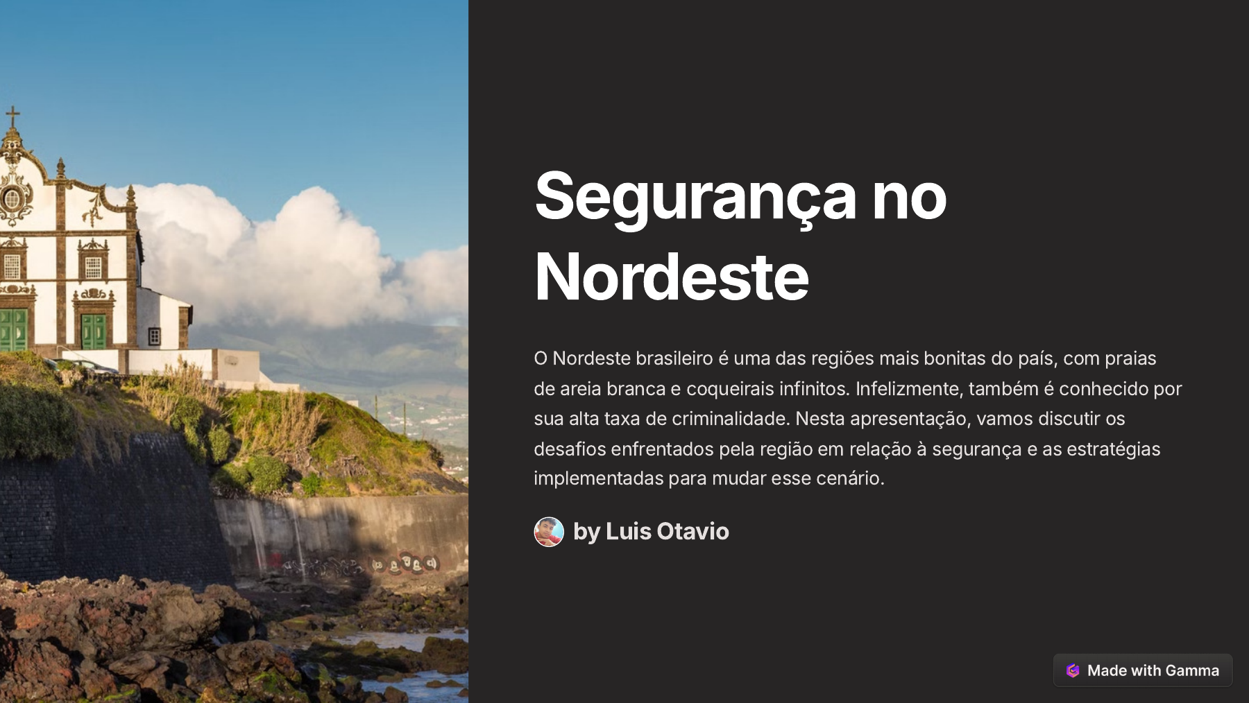 <p>Segurança no</p><p>Nordeste</p><p>O Nordeste brasileiro é uma das regiões mais bonitas do país, com praias</p><p>de areia branca e coqueirais infinitos. Infelizmente, também é conhecido por</p><p>sua alta taxa de criminalidade. Nesta apresentação, vamos discutir os</p><p>desafios enfrentados pela região em relação à segurança e as estratégias</p><p>implementadas para mudar esse cenário.</p><p>by Luis Otavio</p><p>https://gamma.app/?utm_source=made-with-gamma</p><p>A situação atual da segurança no Nordeste</p><p>1</p><p>Crimes violentos</p><p>Os crimes violentos, como</p><p>homicídios e roubos, são comuns</p><p>em muitas cidades do Nordeste.</p><p>2</p><p>Crimes cibernéticos</p><p>Com o aumento da digitalização,</p><p>os crimes cibernéticos se</p><p>tornaram uma ameaça cada vez</p><p>maior na região.</p><p>3</p><p>Tráfico de drogas</p><p>O Nordeste é uma das rotas mais</p><p>utilizadas para o tráfico de drogas</p><p>entre a América do Sul, África e</p><p>Europa.</p><p>https://gamma.app/?utm_source=made-with-gamma</p><p>Principais desafios enfrentados na região</p><p>Falta de investimento</p><p>A falta de investimento na segurança pública é um</p><p>fator que contribui para a alta criminalidade na região.</p><p>Corrupção</p><p>A corrupção é um problema endêmico na região e</p><p>muitas vezes dificulta as iniciativas de combate à</p><p>criminalidade.</p><p>Pobreza e desigualdade</p><p>A pobreza e a desigualdade social são muito altas no</p><p>Nordeste, o que dificulta a adoção de medidas</p><p>eficazes contra o crime.</p><p>Falta de educação</p><p>A falta de educação é outro fator que contribui para a</p><p>criminalidade na região.</p><p>https://gamma.app/?utm_source=made-with-gamma</p><p>Iniciativas governamentais para melhorar a</p><p>segurança</p><p>Investimento em Segurança</p><p>Pública</p><p>O governo tem investido em</p><p>equipamentos, armamentos, veículos</p><p>e capacitação dos policiais para</p><p>melhorar o desempenho da</p><p>segurança pública na região.</p><p>Convênios com Municípios</p><p>O governo federal tem estabelecido</p><p>convênios com municípios para</p><p>promover ações integradas de</p><p>prevenção e combate à violência.</p><p>Canais de Denúncia</p><p>Foram criados canais para incentivar</p><p>os cidadãos a denunciar atividades</p><p>suspeitas à polícia e ajudar na</p><p>prevenção de crimes.</p><p>https://gamma.app/?utm_source=made-with-gamma</p><p>Estratégias adotadas por empresas e cidadãos</p><p>para se protegerem</p><p>1Segurança particular</p><p>Algumas empresas e pessoas contratam</p><p>serviços de segurança particular para se</p><p>protegerem da criminalidade. 2 Segurança eletrônica</p><p>Com o avanço da tecnologia, muitos investem</p><p>em sistemas de segurança eletrônica, como</p><p>câmeras e alarmes.3Autodefesa</p><p>Algumas pessoas realizam cursos de</p><p>autodefesa e artes marciais para se protegerem</p><p>e reduzir a sensação de vulnerabilidade.</p><p>https://gamma.app/?utm_source=made-with-gamma</p><p>O papel da tecnologia na segurança no</p><p>Nordeste</p><p>1 Sistemas de</p><p>monitoramento</p><p>Os sistemas de monitoramento</p><p>permitem às autoridades</p><p>rastrear e identificar atividades</p><p>suspeitas em tempo real.</p><p>2 Redes sociais</p><p>As redes sociais também têm</p><p>sido usadas para disseminar</p><p>informações úteis sobre</p><p>segurança e denunciar crimes.</p><p>3 Inteligência artificial</p><p>A Inteligência artificial tem o</p><p>potencial de melhorar a</p><p>eficiência da segurança</p><p>pública e reduzir a</p><p>criminalidade.</p><p>https://gamma.app/?utm_source=made-with-gamma</p><p>Implicações econômicas da falta de segurança</p><p>na região</p><p>Aumento do turismo A alta taxa de criminalidade na região dissuade os</p><p>turistas e prejudica o setor turístico.</p><p>Impacto sobre a economia informal A criminalidade também afeta negativamente a</p><p>economia informal, com o aumento dos custos de</p><p>segurança e redução das oportunidades de negócios.</p><p>Dificuldades para atrair investimentos A falta de segurança na região é vista como um</p><p>obstáculo pelos investidores, tornando a atração de</p><p>investimentos mais difícil.</p><p>https://gamma.app/?utm_source=made-with-gamma</p><p>Conclusão e perspectivas futuras para a</p><p>segurança no Nordeste</p><p>A segurança no Nordeste é um desafio complexo que requer a adoção de medidas integradas e coordenadas. No</p><p>entanto, há razões para acreditar que é possível mudar esse cenário, com a intensificação do investimento em</p><p>segurança pública e o avanço da tecnologia.</p><p>https://gamma.app/?utm_source=made-with-gamma</p>