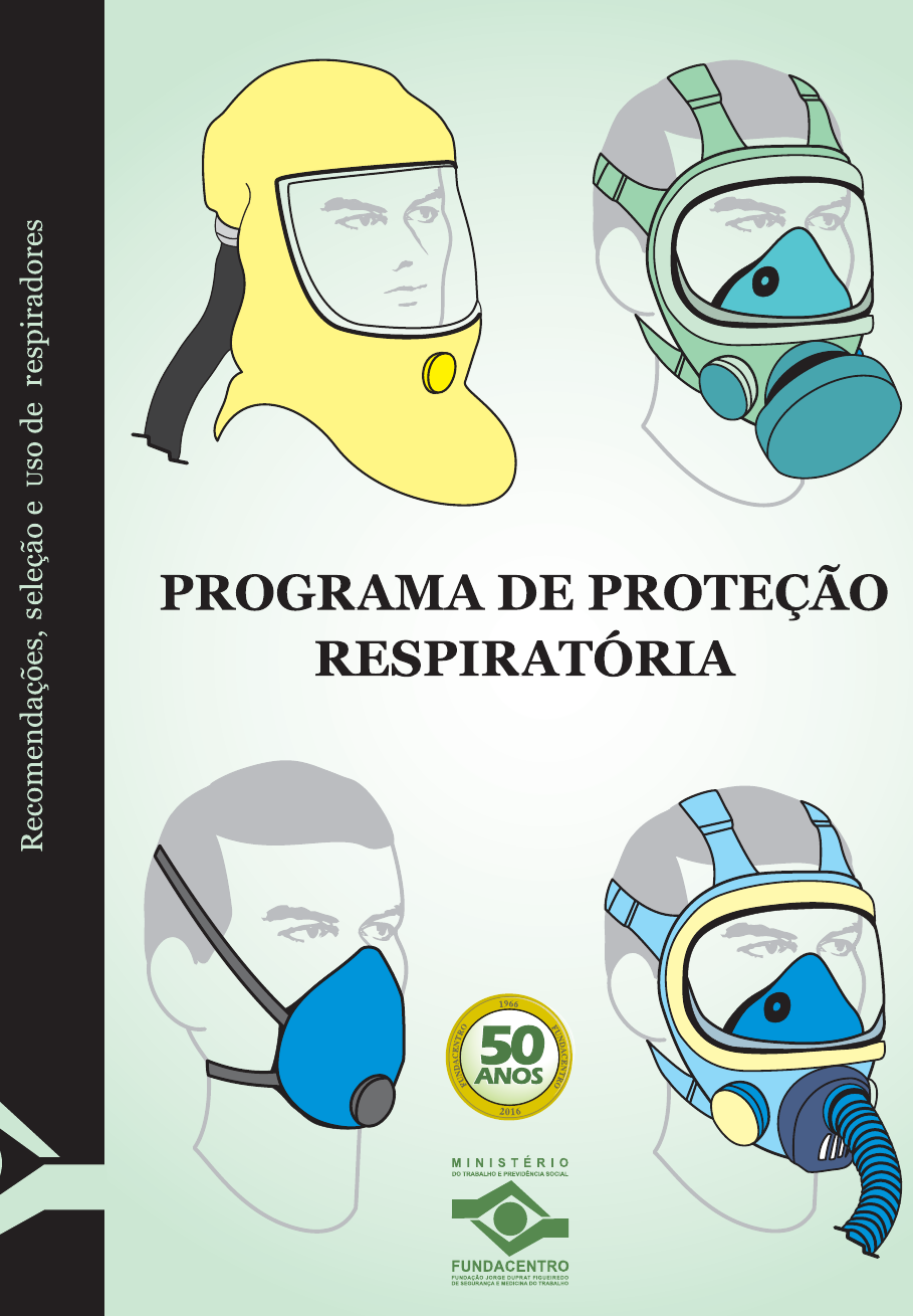 <p>Recomendações, seleção e uso de respiradores</p><p>C</p><p>M</p><p>Y</p><p>CM</p><p>MY</p><p>CY</p><p>CMY</p><p>K</p><p>Programa de Proteção Respiratória_Capa.ai 1 17/02/2016 14:19:21Programa de Proteção Respiratória_Capa.ai 1 17/02/2016 14:19:21</p><p>Programa de Proteção</p><p>resPiratória</p><p>Recomendações, seleção e uso de respiradores</p><p>PPR_1000.indd 1 23/08/2016 12:16:11</p><p>Vice-Presidente da República</p><p>no exercício do cargo de Presidente da República</p><p>Michel Temer</p><p>Ministro do Trabalho</p><p>Ronaldo Nogueira de Oliveira</p><p>Fundacentro</p><p>Presidente</p><p>Luiz Henrique Rigo Muller</p><p>Diretor Executivo Substituto</p><p>Jorge Marques Pontes</p><p>Diretor Técnico</p><p>Robson Spinelli Gomes</p><p>Diretor de Administração e Finanças</p><p>Dalton Tria Cusciano</p><p>PPR_1000.indd 2 23/08/2016 12:16:11</p><p>4ª edição</p><p>Coordenador técnico</p><p>Maurício Torloni</p><p>(in memoriam)</p><p>Programa de Proteção</p><p>resPiratória</p><p>Recomendações, seleção e uso de respiradores</p><p>2016</p><p>São Paulo</p><p>PPR_1000.indd 3 23/08/2016 12:16:11</p><p>Dados Internacionais de Catalogação na Publicação (CIP)</p><p>Serviço de Documentação e Biblioteca – SDB / Fundacentro</p><p>São Paulo – SP</p><p>Erika Alves dos Santos CRB-8/7110</p><p>Disponível também em: www.fundacentro.gov.br</p><p>Qualquer parte desta publicação pode ser reproduzida, desde que citada a fonte.</p><p>T637p Torloni, Maurício</p><p>Programa de proteção respiratória: recomendações, seleção e uso de</p><p>respiradores/coordenador técnico, Maurício Torloni; equipe técnica, Antonio</p><p>Vladimir Vieira, José Damásio de Aquino, Sílvia Helena de Araujo Nicolai e</p><p>Eduardo Algranti. - 4. ed. - São Paulo: Fundacentro, 2016.</p><p>209 p.</p><p>Publicação baseada na "ANSI Z88.2 - Practices for Respiratory Protection",</p><p>no "Code Federal Regulations, Title 29 1910.134" e na “ISO 16975.1”.</p><p>ISBN: 978-85-98117-86-7</p><p>1. Proteção respiratória - Padrão norma. I. Torloni, Maurício. II. Vieira,</p><p>Antonio Vladimir. III. Aquino, José Damásio IV. Nicolai, Sílvia Helena de Araujo.</p><p>V. Algranti, Eduardo.</p><p>CDU 614.894(083.96) CIS Ti Zua</p><p>Equipe técnica</p><p>Antonio Vladimir Vieira • José Damásio de Aquino • Eduardo Algranti</p><p>• Sílvia Helena de Araujo Nicolai</p><p>Equipe de elaboração</p><p>Coordenação editorial: Glaucia Fernandes</p><p>Revisão de textos: Karina Penariol Sanches • Beatriz Taroni de Aguiar (estagiária)</p><p>• Edmara dos Santos Ribeiro</p><p>Ilustrações e capa: Flavia Roda (Yelow Design)</p><p>Projeto gráfico miolo: Gisele Almeida • Marila Geraldo Destro Apolinário</p><p>PPR_1000.indd 4 23/08/2016 12:16:11</p><p>Índice</p><p>11 Introdução</p><p>13 Apresentação</p><p>15 1 Objetivo</p><p>16 2 Situações em que se utilizam equipamentos de proteção</p><p>respiratória</p><p>16 2.1 Introdução</p><p>17 2.2 Uso voluntário</p><p>18 3 Programa de proteção respiratória</p><p>18 3.1 Introdução</p><p>18 3.2 Elementos do programa</p><p>18 3.2.1 Conteúdo mínimo</p><p>19 3.2.2 Procedimentos operacionais</p><p>19 3.2.2.1 Procedimentos operacionais para o uso rotineiro de</p><p>respiradores</p><p>20 3.2.2.2 Procedimentos operacionais para o uso em situações de</p><p>emergência e de salvamento</p><p>20 3.3 Implementação do programa</p><p>21 3.4 Administração do programa</p><p>21 3.5 Regras e responsabilidades</p><p>21 3.5.1 Responsabilidades do empregador</p><p>22 3.5.2 Responsabilidades do administrador</p><p>23 3.5.3 Responsabilidades do empregado</p><p>23 3.5.4 Responsabilidades do prestador de serviço</p><p>PPR_1000.indd 5 23/08/2016 12:16:11</p><p>24 4 Riscos respiratórios</p><p>24 4.1 Introdução</p><p>24 4.2 Avaliação dos perigos no ambiente de trabalho</p><p>25 4.3 Avaliação da adequação do respirador à exposição</p><p>26 4.4 Avaliação da adequação do respirador à tarefa, ao usuário e</p><p>ao ambiente de trabalho</p><p>26 4.4.1 Adequação à tarefa</p><p>27 4.4.2 Adequação ao usuário</p><p>29 4.4.3 Adequação ao ambiente de trabalho</p><p>29 4.4.4 Localização da área de risco</p><p>29 4.4.5 Características de desempenho do respirador</p><p>30 4.4.6 Aplicações especiais</p><p>30 4.5 Registros</p><p>31 5 Procedimento para a seleção dos respiradores</p><p>31 5.1 Seleção de respiradores para uso rotineiro</p><p>38 5.2 Seleção de respiradores para uso em atmosferas IPVS,</p><p>espaços confinados ou atmosferas com pressão reduzida</p><p>38 5.2.1 Atmosfera IPVS</p><p>38 5.2.1.1 Respiradores para uso em condições IPVS na pressão</p><p>atmosférica normal</p><p>39 5.2.2 Respiradores para uso em espaços confinados</p><p>40 5.2.3 Respiradores para uso em pressão atmosférica reduzida</p><p>40 5.2.3.1 Deficiência de oxigênio IPVS envolvendo pressão</p><p>atmosférica reduzida</p><p>42 5.2.3.2 Deficiência de oxigênio não IPVS envolvendo pressão</p><p>atmosférica reduzida</p><p>42 5.3 Respiradores para operação de jateamento</p><p>43 5.4 Respiradores para fuga, emergência e resgate</p><p>44 6 Avaliação das condições físicas e psicológicas do candidato ao</p><p>uso/ usuário de respirador</p><p>44 6.1 Requisitos físicos</p><p>45 6.2 Requisitos psicológicos</p><p>45 6.3 Registros</p><p>PPR_1000.indd 6 23/08/2016 12:16:11</p><p>46 7 Treinamento</p><p>46 7.1 Introdução</p><p>46 7.2 Conteúdo mínimo</p><p>46 7.2.1 Treinamento para usuários</p><p>47 7.2.2 Treinamento para o supervisor e profissionais de</p><p>segurança</p><p>48 7.2.3 Treinamento para a pessoa que distribui o respirador</p><p>48 7.2.4 Treinamento para o condutor do ensaio de vedação</p><p>49 7.2.5 Treinamento para fuga, emergência e salvamento</p><p>49 7.2.6 Treinamento para o administrador</p><p>49 7.3 Frequência</p><p>49 7.4 Registros</p><p>50 8 Ensaio de vedação</p><p>50 8.1 Introdução</p><p>50 8.2 Ensaio
