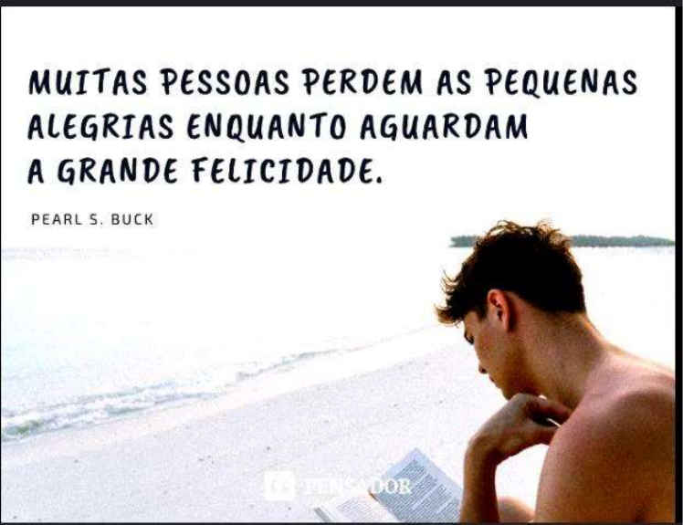 <p>MUITAS PESSOAS PERDEM AS PEQUENAS ALEGRIAS ENQUANTO AGUARDAM A GRANDE FELICIDADE. PEARL S. BUCK</p>