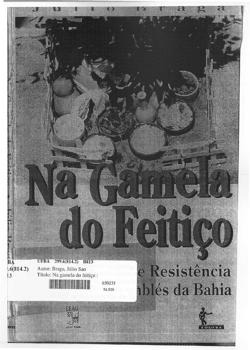 <p>Este trabalho e 0 resultado parcial de urn projeto de</p><p>pesquisa mais amplo denominado "A Presenya do Negro</p><p>na Bahia na Primeira Metade do Seculo XX",apoiado pela</p><p>Fundayao Ford. Ao longo da pesquisa de campo ate chegar</p><p>a redayao final, contei com a colaborayao de muitos pesqui-</p><p>sadores e estudiosos da cultura afro-brasileira alem,</p><p>evidentemente, da ajuda inestimavel de pessoas direta-</p><p>mente envolvidas com 0 mundo religioso dos candombles.</p><p>Dificil seria citar nomes sem cometer 0 equivoco da omis-</p><p>san de muitos.</p><p>Mas nao poderia deixar de citar 0 nome de Jeferson</p><p>Bacelar, pesquisador do CEAO e tambem responsavel por</p><p>urn subprojeto de pesquisa, de cujo convivio/epermanente</p><p>discussao sobre 0 andamento desse estudo resultou uma</p><p>cotidiana e proveitosa colaborayao.</p><p>A professora Cecilia Sardenberg sempre esteve</p><p>ao meu lado revendo meu texto, apresentando sugest6es</p><p>e, muitas vezes, reclamando do meu estilo nem sempre</p><p>academico. 0 meu carinho de sempre.</p><p>A eficiente equipe do CEAO, que envidou esforyos</p><p>para que este trabalho pudesse ser concluido, quero con-</p><p>signar os meus agradecimentos e, em particular, a Mirian</p><p>Cardial, Ivanildes Santos da Conceiyao e Sayonara Lima</p><p>Brasil que cuidaram da digitayao com indiscutivel</p><p>compet€mcia.</p><p>Agradecimentos especiais vao para Olga Primo,</p><p>Secreta-ria do CEAO durant~ a minha gestao de Diretor.</p><p>Uma amiga de sempre.</p><p>A pesquisa--contou, desde 0 inicio com 0 apoio da</p><p>Fundayao Ford e, posteriormente, do CNPq que concedeu</p><p>iW projeto tres bolsas de iniciayao cientifica e uma de</p><p>II] erfeiyoamento.</p><p>Aos meus amigos dos candombles da Bahia, que</p><p>'I tenderam a minha preoclipayao em contar a hist6ria</p><p>da resistencia do povo-de-santo contra a permanente</p><p>L I tativa da sociedade baiana em querer excluir do seu</p><p>'olwfvio elementos profundos da formayao de nossa</p><p>eidadania. Valeu a pena.</p><p>APRESENTAQAo : 13</p><p>CAPITULO 1</p><p>CANDOMBLE, RESISTENCIA A REPREssAo 17</p><p>CAPITULO 2</p><p>MARTINIANO E A RESISTENCIA RELIGIOSA 37</p><p>CAPITULO 3</p><p>CANDOMBLE E 0 ESPIRITO DA RESISTENCIA 59</p><p>CAPfTUL04</p><p>JUBIABA E A RESISTENCIA DO ESPIRITO 93</p><p>CAPITULO 5</p><p>CANDOMBLE, FEITIQARIA E FALSAMEDICINA 125</p><p>CAPITULO 6</p><p>CANDOMBLE E RESISTENCIA LEGAL 147</p><p>REFERENCIAS BIBLIOGRAFICAS 195</p><p>APRESENTAc;XO</p><p>Na Gamela do Feiti~o: repressao e resistencia nos</p><p>candombIes da Bahia pertence aquela casta de livros que,</p><p>iniciada sua leitura, nao se consegue parar ate atingir</p><p>sua ultima pagina. 0 fasCinio de uma tematica pratica-</p><p>mente virgem; a riqueza das fontes onde muitos dos</p><p>pr6prios atores "falam" atraves de documenta~ao de pri-</p><p>meira mao; 0 estilo escorreito e agradavel, tao caracteris-</p><p>tieo de Julio Braga, e, sobretudo, sua paixao de antrop6logo</p><p>engage, interessado nao apenas em descrever como 0</p><p>Candomble resistiu a repressao policial, mas como Pais e</p><p>Maes-de-Santo foram vitimas de odiosa discrimina~ao</p><p>racial- todas estas virtu des fazem deste livro urn marco</p><p>paradigmal na hist6ria das religi6es no Brasil. Insisto;</p><p>trata-se de obra basilar nao apenas para a historiografia</p><p>dos cultos afro-brasileiros - e pe~a crucial para a compre-</p><p>ensao da macro-hist6ria das rela~6es interconfessionais</p><p>em nosso pais, a medida que comprova, atraves de eviden-</p><p>cias documentais, 0 quanto a intolerancia cat6lica, herdei-</p><p>ra da Inquisi~ao, foi responsavel pela ilegalidade e perse-</p><p>gui~ao dos rituais de origem africana. Repressao patro-</p><p>cinada inicialmente pela hierarquia eclesiastica, sucedida</p><p>depois pelos lacaio$ do poder estatal, mas que mantinha</p><p>em sua raiz 0 mesmo etnocentrismo biblicoque se escorava</p><p>em dois postulados abominaveis: primeiro, que "fora da</p><p>Igreja nao ha salva~ao"; segundo, que enxergava nos</p><p>rituais ali~nigenas, sobretudo naqueles praticados por</p><p>l!-egrosafncanos, a presen~a fisica do proprio Demonio.</p><p>~om exemplo deste sectarismo religioso e dado pelo mais</p><p>lrreverente de nossos poetas, Gregorio de Matos ele</p><p>p.roprio apelidado de Boca de Inferno'e, como tal, de~un-</p><p>clado ao Santo Ofieio da Inquisi~ao, 0 qual, mesmo de-</p><p>monstrando promiscua simpatia para com negras e</p><p>mulatas, nao deixa de destilar 0 mesmo preconceito cristao</p><p>con!ra as manifesta~6es religiosas afro-brasileiras, ja</p><p>ntao bastante populares nos fins do seculo XVII:</p><p>... nos Calundus e Feitit;os .</p><p>ventura dizem que buscam .</p><p>o que sei e que em tais dant;as</p><p>Satanas anda metido ...</p><p>que outras ag~ncia8 in titucionais nao solucionavam a</p><p>contento. Apratica da m diclna tradicional nos "Terreiros"</p><p>pass a entao a ser consid rada contraven~ao, apontada</p><p>pelos novos esculapios como charlatanismo contnirio a</p><p>moderna Ciencia Medica tal qual era ensinada na seleta</p><p>Faculdade de Medicina do Terreiro de Jesus. a bem cole-</p><p>tivo e a saude publica exigiam a repressao aos "templos</p><p>da supersti~ao". E a medida que os "Terreiros" representa-</p><p>yam 0 fulcro irradiativo das tradi~6es africanas, 0 locus</p><p>principal de endocultura~ao das novas gera~6es e reduto</p><p>inexpugmlvel de resistencia cultural, seu confinamento,</p><p>controle e aniquila~ao foram as solu~6es encontradas pela</p><p>elite baiana a fim de imp or a hegemonia europocentrica,</p><p>sempre amea~ada pelos ecos dos tambores e fascinada</p><p>pelas comidas de santo.</p><p>E pois neste mundo a urn tempo fascinante e</p><p>comovente que 0 atual Diretor do Centro de Estudos Mro-</p><p>Orientais nos leva a conhecer, fazendo nossos guias dois</p><p>luminares do Candomble baiano na primeira metade do</p><p>seculo XX: a Babala6 Martiniano Eliseu do Bomfim, e 0</p><p>Cabocl