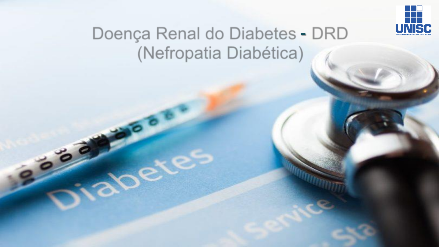 <p>Doença Renal do Diabetes - DRD</p><p>(Nefropatia Diabética)</p><p>Claus Dummer MD, PhD</p><p>Maio de 2024</p><p>Introdução</p><p>● O termo nefropatia diabética historicamente foi definido como a</p><p>presença de albuminúria acompanhada de retinopatia em pacientes</p><p>com DM1.</p><p>● Atualmente está claro que existem diversas formas de doença renal</p><p>atribuída ao DM incluindo lesões glomerulares não clássicas e doenças</p><p>tubulointersticiais</p><p>● DRD é um diagnóstico clínico baseado na presença de albuminúria,</p><p>redução da TFG ou ambos, em pacientes com DM.</p><p>Introdução</p><p>● A hiperglicemia resulta na produção de AGES e ROS.</p><p>● Estes produtos do metabolismo são aberrantes e ativam marcadores</p><p>pro-inflamatórios intracelulares e aumentam a expressão de genes pro-</p><p>fibróticos que levam a danos celulares.</p><p>● Além da hiperglicemia, hiperisulinemia, resistência a insulina e</p><p>lipotoxicidades também contribuem para diferentes apresentações</p><p>histopatológicas entre DM 1 e 2.</p><p>Introdução</p><p>● O declínio da TFG em decorrência da idade em indivíduoa sadios é de</p><p>0,5 a1 ml/min/ano.</p><p>● Em pacientes com DM o declínio é variável e pode chegar a 3</p><p>ml/min/ano, principalmente em pacientes com DM de longa duração</p><p>(>10 anos), albuminúria elevada e baixa TFG (<60 /min).</p><p>● O risco de evoluir para DRC terminal depende de diversos fatores como</p><p>tipo de DM, acesso ao cuidado, tipo de tratamento, fatores genéticos,</p><p>condições socioeconômicas.</p><p>Epidemiologia</p><p>● Globalmente, 537 milhões de indivíduos entre 20 e 79 anos são diabéticos.</p><p>● A Federação Internacional de Diabetes prevê um aumento progressivo no número de pacientes</p><p>diabéticos até 643 milhões em 2030 e 784 milhões em 2045 (1).</p><p>● O DM atinge 10,2% da população brasileira (Vigitel Brasil 2023). Índice representa aumento</p><p>com relação a 2021, quando era 9,1%. Também mostra que o diagnóstico é mais frequente</p><p>entre as mulheres (11,1%) do que entre os homens (9,1%).</p><p>● A prevalência do DM no Brasil é de 7,6%.</p><p>1. Diabetes Res. Clin. Pract. 2022, 183, 109119.</p><p>Epidemiologia</p><p>● Cerca de 33% dos pacientes com diabetes tipo 1 (DM1) e cerca de 50% dos pacientes com DM2</p><p>desenvolverão DRC.</p><p>● O envelhecimento da população, a obesidade e o sedentarismo são considerados os</p><p>principais fatores responsáveis pelo aumento da incidência e prevalência do DM em</p><p>todo o mundo.</p><p>● Entre 2008 e 2010 12,0% das hospitalizações foram em decorrência do DM.</p><p>● Isso representou 15,4% dos custos hospitalares do SUS.</p><p>Fisiopatologia</p><p>Fenômenos vasculares</p><p>Acumulam-se em tecidos e parede dos</p><p>vasos</p><p>Induz síntese de citocinas (IL, IGF-1)</p><p>Proliferação de células mesangiais</p><p>Esclerose glomerular</p><p>Diacilglicerol (DAG) e ativação da</p><p>proteína quinase C (PKC).</p><p>Produção decitocinas</p><p>inflamatórias</p><p>Neovascularização</p><p>Síntese do colágeno</p><p>Diagnóstico</p><p>● Albuminúria e/ou TFG reduzida de forma persistente</p><p>○ Albuminúria = ≥30 mg/24 h ou ≥30 mg/g em amostra.</p><p>○ TFG reduzida <60 mL/min/1.73 m2</p><p>● A persistência destas anormalidades por mais de 3 meses necessita ser</p><p>confirmada</p><p>● Albuminúria não é mais necessária para o diagnóstico de DRD.</p><p>DRD Não Albuminúrica</p><p>● TFG reduzida pode estar presente em pacientes com DM sem albuminúria.</p><p>○ DM1 com TFG reduzida 7-24% são normoalbuminúricos.</p><p>○ DM2 com TFG reduzida 39-52% são normoalbuminúricos.</p><p>● A prevalência da DRC normoalbuminúria aumenta com a idade</p><p>● A prevalência de retinopatia diabética é menor em pacientes normoalbuminúricos.</p><p>Mecanismo distinto da microangiopatia?</p><p>● A progressão da DRD é mais lenta nos normoalbuminúricos.</p><p>Diagnóstico</p><p>● 1. Longa duração do DM</p><p>○ Pacientes com DM1 longa duração são 5 anos</p><p>○ Pacientes com DM2 a DRD pode estar presente no diagnóstico</p><p>● 2. Retinopatia estabelecida</p><p>Diagnóstico</p><p>● 3. Julgamento de que etiologias alternativas são improváveis</p><p>○ Albuminúria muito elevada (ex. ≥300 mg/day or mg/g) dentro de cinco anos após o início do diabetes</p><p>tipo 1 ou anos antes do início do diabetes tipo 2 (se a data de início for conhecida).</p><p>○ Cilindros hemáticos e dismorfismo eritrocitário no sedimento urinário</p><p>○ Presença de outra doença sistêmica que está associada a doença renal (ex. LES)</p><p>○ Aumento súbito da albuminúria (5 a 10x em um período menor de 1 a 2 anos)</p><p>○ Rápido declínio da TFG (>5 ml/min/ano)</p><p>Biópsia renal!?</p><p>Rastreio</p><p>- Dosagem de microalbuminúria</p><p>- Presença de microalbuminúria em 2 de 3 amostras com intervalos de 3-4</p><p>meses</p><p>- Quando dosar microalbuminúria:</p><p>- DM tipo 1: após 5 anos (antes se adolescentes). Atenção: pode-se fazer após 1 ano.</p><p>- DM tipo 2: no diagnóstico</p><p>- Anualmente se negativo</p><p>Albuminúria</p><p>Novos biomarcadores</p><p>Novos biomarcadores serão úteis no futuro</p><p>para classificar melhor os pacientes com ND</p><p>de acordo com seu prognóstico futuro e</p><p>orientar os médicos na avaliação do manejo</p><p>clínico correto.</p><p>Classificação de Mogensen</p><p>Estágios</p><p>Copyrights apply</p><p>Diagnóstico histopatológico</p><p>Copyrights apply</p><p>Diagnóstico histopatológico</p><p>Copyrights apply</p><p>Novos marcadores</p><p>DM e DCV</p><p>● O DM é uma patologia de elevada morbimortalidade.</p><p>● Meta-análise com quase 1 milhão de pacientes mostrou que os pacientes</p><p>com DM apresentam um risco de mortalidade cardiovascular 2x maior do que</p><p>os pacientes sem DM.</p><p>Mo