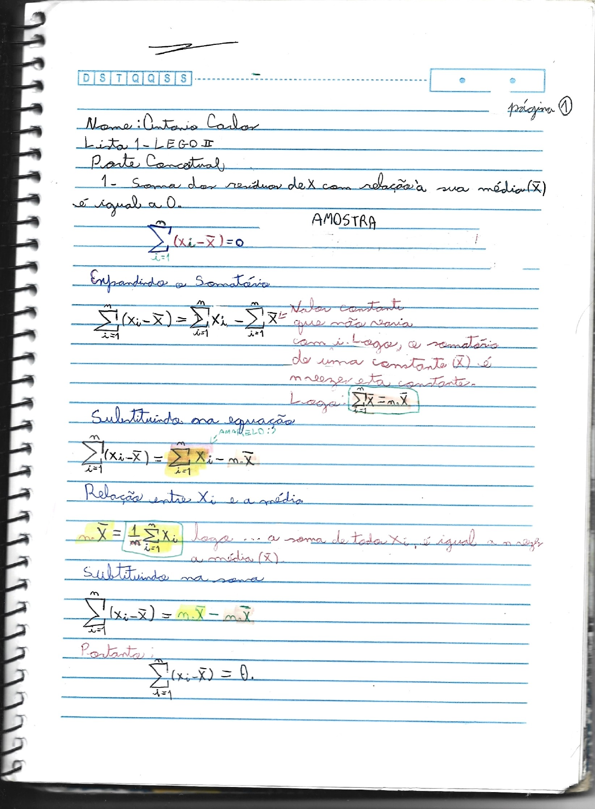 <p>1 Name: Carlor Lista 1- LEGO II Parte 1- dex com I igual a O. AMOSTRA X)=0 a = - que i=1 i-1 i=1 Logo, Q do uma uma constante (X) eta ona n (Xi-X) = i=1 entre Xi e a media me X 11 a soma de igual a n i=1 a media (X) na m - (xi-X) =</p><p>2 2 a) PGD que se refere ou de que as de b) Q valor que gera a e a da de um um Q da paper um valor em particular obtido for da do (E) e no PGD medida teorica da a real i) calculado as PGD, a discrepan- Cia entre I e) a entre Ye linear, que as flas se a de was influencia a de is um identicamente se todar a de g) que or X as logo temor can names desta forma, as</p><p>Q S S h) a de que relacionador com do modela de Media condicional igual do uma date que dada a a media do 3 a) Em uma riada para identifican a de uma X1 em um de maneira come coda pode simulada sem or de b) Quanda a significa que qualquer na Xi esta co com alguma parte was explicada represen- toda as podem de que come efector c) Pain madela contro- d) significa que do erra Esta acaba for a validade for</p><p>DSTQQSS 4 4 a) ino afeta Q ML3, lima de Causanda probleman de independented singular b) calinearidade Visando dummy. uma categoria come OF : OF no a a modelo main algo ra a base Q cada dummy pode sev sem categoria de referencing pain ele a exata entre or dummier. Noo exis- 5 A RLM Bot que RLM Matricial y = < error M.L. 1 independente Multiplica ambor lador pela transporta Xy- Multiplica pela imeena da transporta ML3 me garanty was (x'x) (X'X)</p><p>pagina 5 Matriz identidade (x'x) (x'x) = t (x'x) ML4 com que a seja D. = IB ML2 - que a erro B=</p>