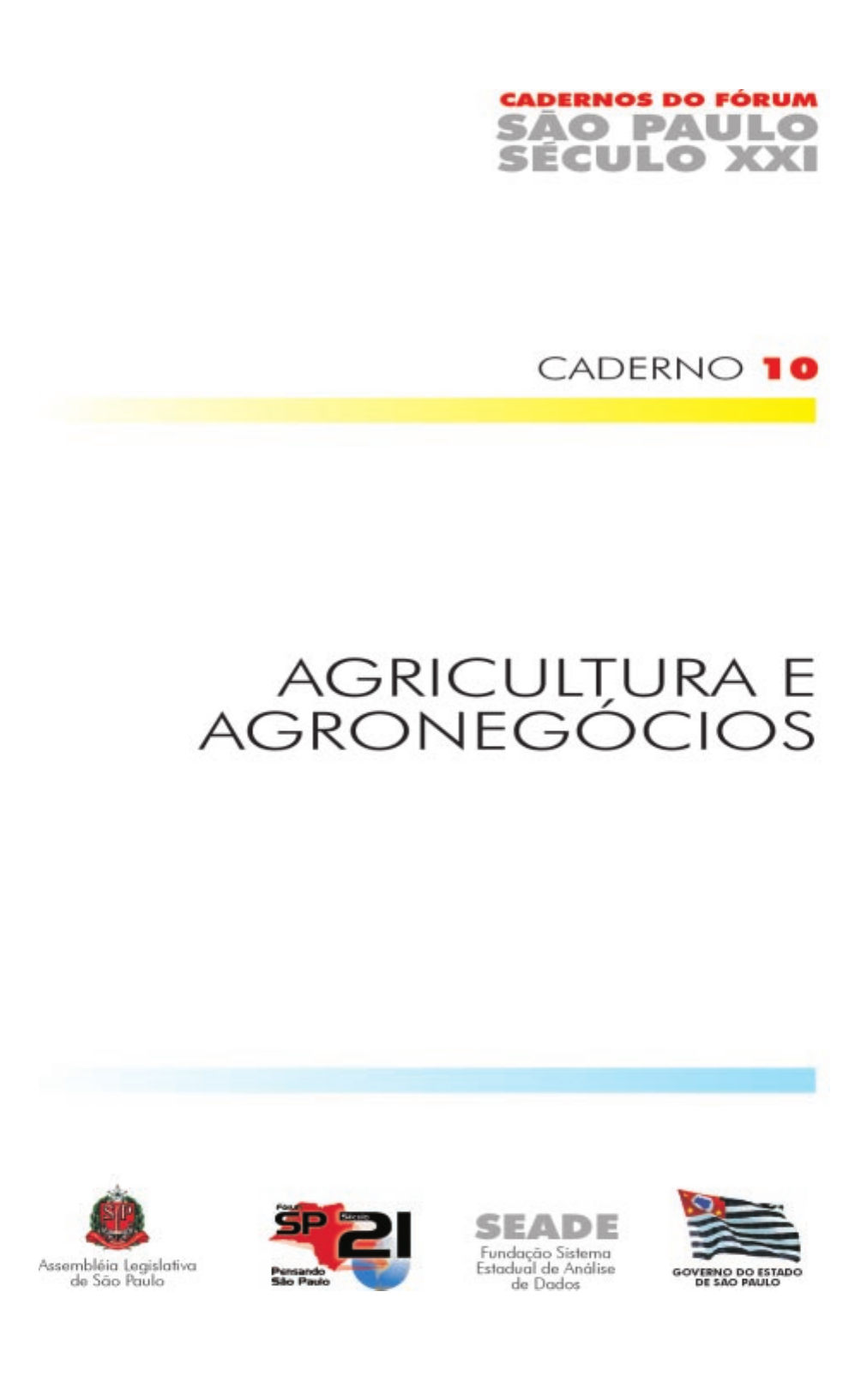 <p>1</p><p>Agricultura e Agronegócios</p><p>2</p><p>Mário Covas</p><p>Governador do Estado</p><p>Geraldo José Rodrigues Alckmin Filho</p><p>Vice-Governador</p><p>André Franco Montoro Filho</p><p>Secretário de Economia e Planejamento</p><p>Pedro Paulo Martoni Branco</p><p>Diretor Executivo</p><p>Amaro Angrisano</p><p>Diretor Adjunto Administrativo e Financeiro</p><p>Felícia Reicher Madeira</p><p>Diretor Adjunto de Análise Socioeconômica</p><p>Luiz Henrique Proença Soares</p><p>Diretor Adjunto de Produção de Dados</p><p>Conselho de Curadores</p><p>Adroaldo Moura da Silva (Presidente)</p><p>Ana Maria Afonso Ferreira Bianchi</p><p>Antonio Márcio Fernandes Costa</p><p>Carlos Antonio Luque</p><p>Carlos Eduardo do Nascimento Gonçalves</p><p>Hélio Nogueira da Cruz</p><p>Liana Maria Lafayette Aureliano da Silva</p><p>Maria Coleta Ferreira Albino de Oliveira</p><p>Maria Fátima Pacheco Jordão</p><p>Michael Zeitlin</p><p>Conselho Fiscal</p><p>Caioco Ishiquiriama</p><p>Danila Micioni</p><p>Sandra Lucia Fernandes Marinho</p><p>Dezembro 1999</p><p>SEADE</p><p>Fundação Sistema Estadual de Análise de Dados</p><p>3</p><p>Agricultura e Agronegócios</p><p>AGRICULTURA E AGRONEGÓCIOS</p><p>Este caderno expõe uma abordagem geral sobre a agropecuária e os agronegócios no Es-</p><p>tado, a partir de questões relacionadas com: caracterização dos principais complexos agroindus-</p><p>triais no Estado de São Paulo; transformações da estrutura regional de cultivo; inovações</p><p>tecnológicas e seus impactos sobre o emprego agrícola; principais modalidades de financiamento</p><p>para os agricultores; relações de comércio exterior.</p><p>Além desses temas, há outros que poderão ser aprofundados oportunamente, como os</p><p>programas de produtividade e qualidade, formação de recursos humanos para o setor de</p><p>agronegócios e infra-estrutura para a agropecuária. O tema da infra-estrutura será abordado no</p><p>Caderno 13 – Ciência, Tecnologia e Telecomunicações e no Caderno 14 – Transportes e Energia,</p><p>dado que é tema geral para todas as atividades econômicas do Estado.</p><p>O caderno está assim estruturado:</p><p>– introdução;</p><p>– regionalização da estrutura produtiva da agropecuária paulista, com as principais carac-</p><p>terísticas das sete regiões produtoras definidas (tipo de atividade, valor da produção</p><p>agropecuária, pessoal ocupado, número e área dos estabelecimentos, padrão tecnológico,</p><p>agricultura irrigada e estrutura de armazenagem);</p><p>– o emprego rural no Estado de São Paulo, com a evolução das ocupações agrícolas e não-</p><p>agrícolas da PEA rural e da demanda da força de trabalho pelas principais culturas nos</p><p>anos 90; sua interface com as mudanças tecnológicas;</p><p>– a agroindústria paulista, com ênfase na sua importância e estrutura no Estado, no porte</p><p>(tamanho) das empresas, na distribuição geográfica da produção agroindustrial e na qua-</p><p>lificação do pessoal ocupado na agroindústria;</p><p>– evolução do sistema de crédito convencional e novas formas de financiamento dos agri-</p><p>cultores, como o Pronaf, a CPR e o mercado futuro na Bolsa de Mercadorias;</p><p>– a reforma agrária, com ênfase no número de assentamentos definitivos e de famílias</p><p>assentadas, ação dos diferentes órgãos executores, participação dos assentamentos na</p><p>produção de alguns produtos da agropecuária paulista;</p><p>– o item comércio exterior é retomado complementando o da agroindústria, com destaque</p><p>para o peso dos produtos processados a partir de algumas atividades como a cana-de-</p><p>açúcar, a laranja, o café e a soja na pauta de exportação do Estado de São Paulo. O</p><p>destino das vendas da produção agroindustrial paulista também é abordado.</p><p>As considerações finais ressaltam as principais questões e desafios na elaboração e gestão</p><p>de políticas para a agricultura e agroindústria paulista, que podem subsidiar novos projetos e</p><p>temas a serem aprofundados e pesquisados, de acordo com os interesses do Fórum São Paulo</p><p>Século XXI.</p><p>REGIONALIZAÇÃO DA AGROPECUÁRIA PAULISTA</p><p>Para melhor caracterização da agropecuária paulista, pode-se dividir o Estado de São Pau-</p><p>lo em sete regiões, a saber:</p><p>– Região Oeste (I), englobando as mesorregiões de Presidente Prudente e de Araçatuba.</p><p>Suas características fundamentais são o predomínio da pecuária de corte como atividade</p><p>4</p><p>5</p><p>Agricultura e Agronegócios</p><p>agropecuária, a presença de explorações agropecuárias com área média mais elevada e a</p><p>baixa presença de agroindústrias e de outras atividades industriais.</p><p>– Região Noroeste (II), conhecida antigamente como da Mogiana, composta pelas</p><p>mesorregiões de São José do Rio Preto, Ribeirão Preto, Araraquara, Piracicaba e Campi-</p><p>nas. Concentra a agricultura de maior valor comercial do Estado, em particular as ativi-</p><p>dades dos complexos agroindustriais da cana-de-açúcar e da laranja.</p><p>– Região Centro-Oeste (III), que engloba as mesorregiões de Bauru, Marília e Assis. A</p><p>produção de grãos e de café são suas atividades agropecuárias principais e as agroindústrias</p><p>da região estão voltadas à transformação em óleos e farelos, basicamente.</p><p>– Região Centro-Sul (IV), que reúne as mesorregiões de Itapetininga e Macro-Metropoli-</p><p>tana Paulista. Concentra as atividades do cinturão verde do entorno metropolitano e as</p><p>principais áreas de reflorestamento do Sul do Estado. Também são importantes a pecuá-</p><p>ria de pequenos animais e a suinocultura.</p><p>– Região Litoral Sul (V), composta pela mesorregião do mesmo nome (Litoral Sul Paulista).</p><p>Compreende, fundamentalmente, o Vale do Ribeira, de pouca expressão como atividade</p><p>agropecuária. Os desta