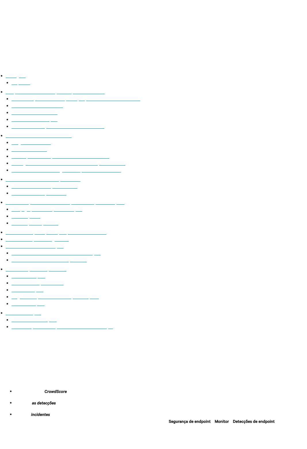 <p>27/04/2023, 13:18 Incident and Detection Monitoring | Monitoring | Endpoint Security | Documentation | Support and resources | Falcon</p><p>https://falcon.crowdstrike.com/documentation/69/incident-and-detection-monitoring 1/36</p><p>Monitoramento de Incidentes e Detecção</p><p>Ultima atualização: 25 de abril de 2023</p><p>Visão geral</p><p>O console do Falcon fornece informações para ajudá-lo a entender a segurança geral da sua organização e tomar ações mais rápidas contra ameaças avançadas em</p><p>seus hosts.</p><p>Acompanhe seu CrowdScore para ver a probabilidade de sua organização estar sob ataque.</p><p>Monitore as detecções para entender os processos em arquivos ou comportamentos suspeitos individuais.</p><p>Priorizar incidentes para investigação. Uma abordagem mais abrangente para identificar possíveis ataques, os incidentes são compostos por detecções e</p><p>processos relacionados. Eles também incluem detecções contextuais não incluídas em Segurança de endpoint > Monitor > Detecções de endpoint .</p><p>Requisitos</p><p>Conteúdo:</p><p>Visão geral</p><p>Requisitos</p><p>Compreendendo as informações no aplicativo Atividade</p><p>Qual é a relação entre eventos, detecções, incidentes e seu CrowdScore?</p><p>Entendendo seu CrowdScore</p><p>Entendendo os incidentes</p><p>Entendendo as detecções</p><p>Estrutura de detecção de Falcon baseada em MITRE</p><p>Trabalhando através de um incidente</p><p>Triagem de incidentes</p><p>Editando incidentes</p><p>Atualização das detecções envolvidas em um incidente</p><p>Investigando um incidente através de diferentes pontos de vista</p><p>Guias de incidentes: Investigando e respondendo a incidentes</p><p>Trabalhando através de detecções móveis</p><p>Como visualizar detecções de celular</p><p>Modificando detecções móveis</p><p>Trabalhando por meio de uma detecção em Detecções de endpoint</p><p>Filtre, agrupe e classifique as detecções</p><p>Ícones objetivos</p><p>Visualizações do processo</p><p>Monitore detecções e prevenções personalizadas de IOA</p><p>Como as detecções são registradas</p><p>Atalhos de teclado de detecções</p><p>Atalhos de teclado de acessibilidade de detecções</p><p>Atalhos de teclado da árvore de processos</p><p>Revise os arquivos em quarentena</p><p>Liberar um arquivo</p><p>Desfazer um arquivo liberado</p><p>Baixar um arquivo</p><p>Perguntas frequentes sobre extração de arquivos</p><p>Excluir um arquivo</p><p>Revise as correções</p><p>Acessando Remediações</p><p>Revise as ações de correção realizadas em uma detecção</p><p>27/04/2023, 13:18 Incident and Detection Monitoring | Monitoring | Endpoint Security | Documentation | Support and resources | Falcon</p><p>https://falcon.crowdstrike.com/documentation/69/incident-and-detection-monitoring 2/36</p><p>Assinatura: Falcon Insight XDR, Falcon Prevent necessário para prevenção</p><p>Suporte de sensor: todas as versões suportadas do sensor Falcon para macOS, Windows e Linux</p><p>Incidentes e Detecções em Atividade: Todas as versões suportadas do sensor Falcon para macOS, Windows e Linux</p><p>Detecções móveis no Investigate: versões 2020 e posteriores dos aplicativos CrowdStrike Falcon para iOS e Android</p><p>Requisitos do sistema: Nenhum</p><p>Funções: as funções Falcon Administrator, Falcon Security Lead, Falcon Investigator e Falcon Analyst têm permissão para gerenciar detecções e incidentes.</p><p>Para obter detalhes completos sobre as funções necessárias para executar ações específicas em detecções e incidentes, consulte Funções do Falcon Insight</p><p>.</p><p>Compreendendo as informações no aplicativo Atividade</p><p>Qual é a relação entre eventos, detecções, incidentes e seu CrowdScore?</p><p>O Falcon monitora a atividade em seu ambiente para identificar arquivos e comportamentos suspeitos e informá-lo sobre eles em Atividade . Todos os dados</p><p>coletados podem ser observados como eventos em Investigate . Quando uma coleção de eventos é considerada digna de nota, provavelmente por ser suspeita ou</p><p>maliciosa, o sensor aciona uma detecção . Ajuste as detecções que você vê por meio de suas configurações de política de prevenção. Os incidentes reúnem</p><p>detecções relacionadas, processos associados e as conexões entre eles para mostrar a atividade coordenada que você deve priorizar para investigação. Seu</p><p>CrowdScoreé criado a partir de seus incidentes de alta pontuação para apresentar a probabilidade atual de que sua organização está sob ataque.</p><p>Understanding your CrowdScore</p><p>Your Current CrowdScore on the Activity dashboard represents the likelihood that hostile activity is going on against your organization. Your CrowdScore is on a</p><p>scale of 0-100, and changes based on your current highest scoring incidents. The higher your CrowdScore, the greater the chance you’re facing a significant threat. If</p><p>you see your score increase by 20% or more, pay attention and investigate. It might be cause for concern or indicate your organization has pen testing underway.</p><p>Note: At this time, edits to incidents, such as changing status or adding tags, don’t influence your CrowdScore.</p><p>Understanding incidents</p><p>What are incidents?</p><p>Incidents are made of detections, associated processes, and the connections between them, which can include parent-child relationships, thread injections, and lateral</p><p>movement. Because attacks often consist of coordinated activity happening together on one or more hosts, incidents help you see important and relevant information</p><p>more quickly.</p><p>Incidents can include, or be entirely composed of, detections that aren’t shown in Endpoint detections. Though these contextual detections don’t meet a threshold of</p><p>significance for all environments on their own, the context of their relationship to the rest of the incident and how note