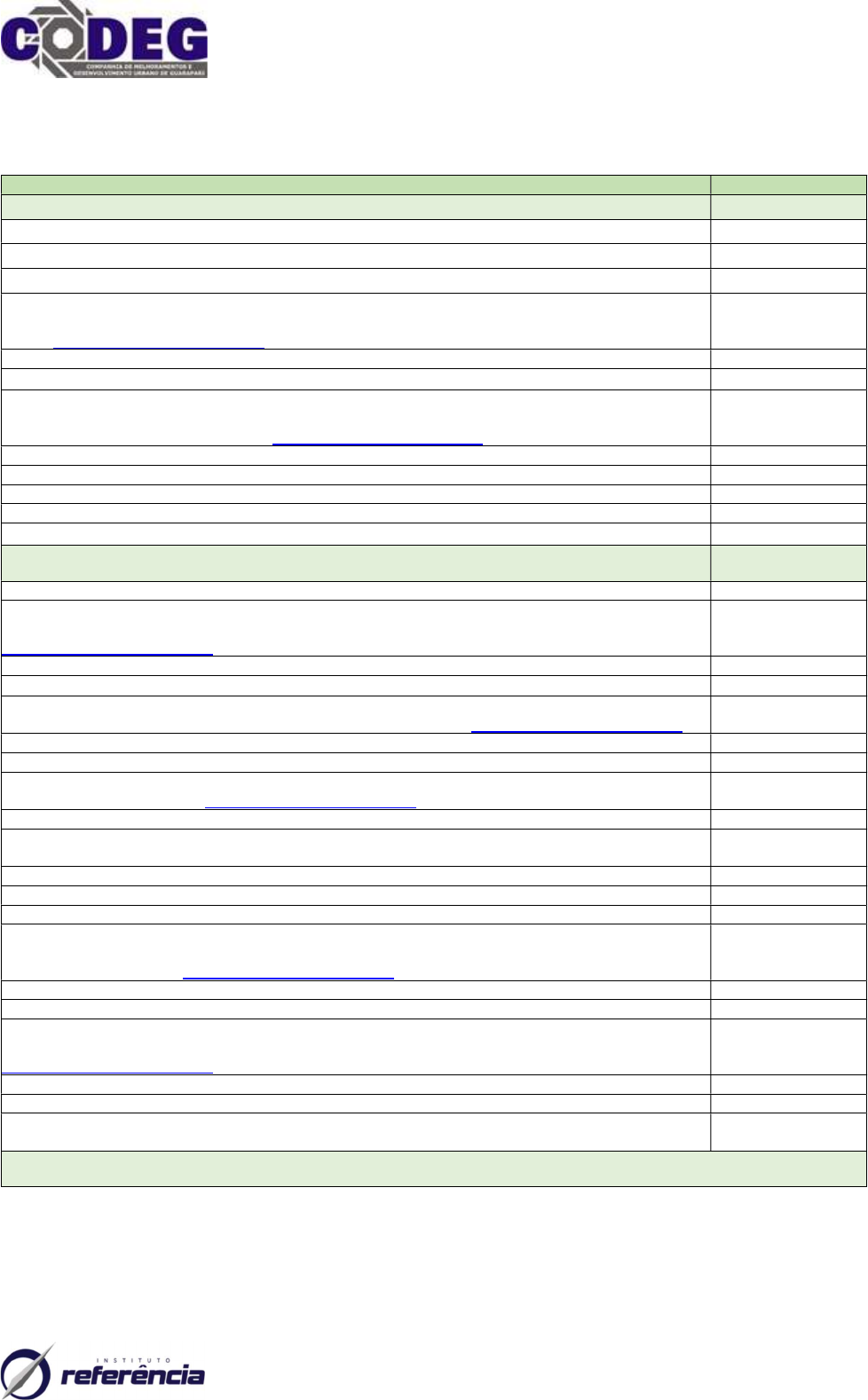 <p>ESTADO DO ESPÍRITO SANTO</p><p>MUNICÍPIO DE GUARAPARI</p><p>38</p><p>ANEXO I-CRONOGRAMA</p><p>EVENTOS DATAS</p><p>Publicação do Edital 17/01/2024</p><p>Período de Inscrição do Concurso público 18/01 a 02/02</p><p>Período de Isenção do Valor da Taxa de Inscrição 18 e 19/01</p><p>Relação Preliminar dos candidatos com Pedido de Isenção 22/01</p><p>Recursos contra a Relação Preliminar dos candidatos com Pedido de Isenção. Iniciando-se às</p><p>10horas e encerrando-se às 18horas dos dias previstos, no link correlato ao Concurso Público</p><p>no site www.institutoreferencia.org.br</p><p>23 e 24/01</p><p>Relação Final dos candidatos com Pedido de Isenção 25/01</p><p>Divulgação da Relação Preliminar de Candidatos PCD e Necessidades Especiais Momentâneas 20/02</p><p>Recursos contra a Relação Preliminar de Candidatos PCD e Necessidades Especiais</p><p>Momentâneas. Iniciando-se às 10horas e encerrando-se às 18horas dos dias previstos, no link</p><p>correlato ao Concurso Público no site www.institutoreferencia.org.br</p><p>21 e 22/02</p><p>Relação Final dos Candidatos PCD e Necessidades Especiais Momentâneas 26/02</p><p>Relação Final dos Candidatos com Inscrição Homologada e não homologada 27/02</p><p>Homologação dos Locais de Prova Objetiva 29/02</p><p>Retirada do Cartão de Convocação da Prova (CCP) 29/02</p><p>Período de Correção de Dados do (CCP) 29/02</p><p>REALIZAÇÃO DAS PROVAS 17/03</p><p>Divulgação dos Gabaritos Preliminares das provas objetivas 18/03</p><p>Período de Recursos contra as questões das provas objetivas. Iniciando-se às 10horas e</p><p>encerrando-se às 18horas dos dias previstos, no link correlato ao Concurso Público no site</p><p>www.institutoreferencia.org.br</p><p>19 e 20/03</p><p>Divulgação dos Gabaritos Definitivos das provas objetivas 03/04</p><p>Divulgação do Resultado Preliminar de Notas das provas objetivas 03/04</p><p>Período de Recurso de Cartão Resposta. Iniciando-se às 10horas e encerrando-se às 18horas</p><p>dos dias previstos, no link correlato ao Concurso Público no site www.institutoreferencia.org.br</p><p>04 e 05/04</p><p>Resposta dos Recursos de Cartão Resposta 08/04</p><p>Divulgação do Resultado das notas da prova objetiva – pós recursos 08/04</p><p>Período de Envio de Títulos (via sistema eletrônico, conforme item 7.12 do Edital, no link correlato</p><p>ao Concurso Público no site www.institutoreferencia.org.br)</p><p>09 a 12/04</p><p>Divulgação do Edital de Convocação PP (Prova Prática) 09/04</p><p>Divulgação do Edital de Convocação do TAF (Teste de Aptidão Física) dos cargos de Gari I</p><p>Limpeza Urbana e Gari II Jardineiro</p><p>09/04</p><p>Realização do (TAF) Teste de Aptidão Física 28/04</p><p>Realização da Prova da PP (Prova Pratica) 28/04</p><p>Divulgação do Resultado do Teste de Aptidão (TAF) e PP (Prova Prática) 30/04</p><p>Período de Interposição de Recursos do Teste de Aptidão Física (TAF) e PP (Prova Prática).</p><p>Iniciando-se às 10horas e encerrando-se às 18horas dos dias previstos, no link correlato ao</p><p>Concurso Público no site www.institutoreferencia.org.br</p><p>02 e 03/05</p><p>Resposta aos Recursos e Resultado Pós-Recursos do TAF e PP (Prova Prática) 07/05</p><p>Divulgação do Resultado das notas dos Títulos 07/05</p><p>Período de Interposição de Recursos de Títulos. Iniciando-se às 10horas e encerrando-se às</p><p>18horas dos dias previstos, no link correlato ao Concurso Público no site</p><p>www.institutoreferencia.org.br</p><p>08 e 09/5</p><p>Divulgação das Respostas dos Recursos das notas de Títulos 13/05</p><p>Divulgação do Resultado Final 13/05</p><p>Homologação do Concurso Público</p><p>A ser divulgado</p><p>posteriormente</p><p>OBS: Todas as divulgações na página serão após as 14 h.</p>