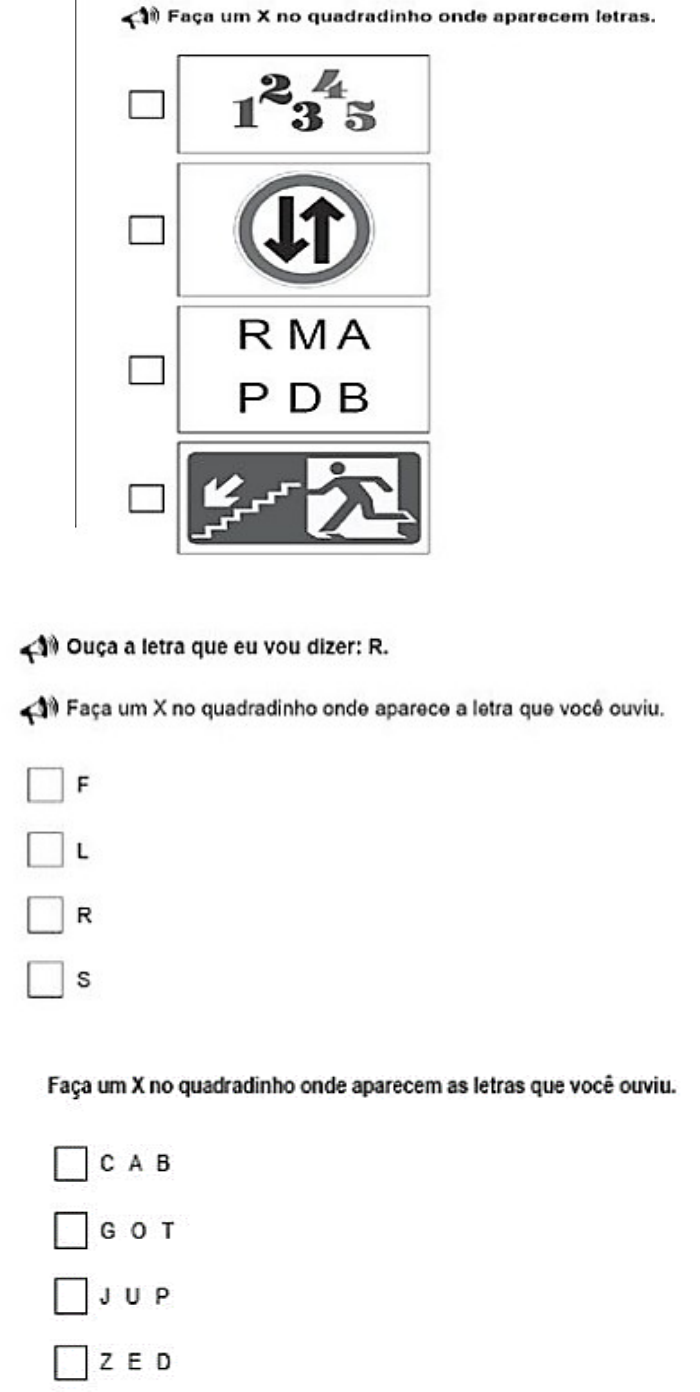 <p>Escola Municipal Bom Jesus</p><p>Colniza, ____ de _______________ de 2024.</p><p>Aluno(a):_______________________________________________Turma:________</p><p>1-DIFERENCIAR LETRAS DE OUTROS SINAIS GRÁFICOS</p><p>2-RECONHECER AS LETRAS DO ALFABETO</p><p>3- LER FRASES</p><p>4- RECONHECER A ORDEM ALFABÉTICA</p><p>5- RECONHECER AS DIFERENTES FORMAS DE GRAFAR UMA LETRA OU PALAVRA</p><p>6-RECONHECER AS VARIAÇÕES DE FONEMA/GRAFEMA</p><p>7-LER PALAVRAS FORMADAS POR SÍLABAS CANONICAS</p><p>8-LER PALAVRAS FORMADAS POR SÍLABAS NÃO CANÔNICAS</p><p>9- EF12LP19 Identificar rimas.</p><p>MARQUE COM UM X O PAR DE PALAVRAS QUE RIMAM NO TEXTO:</p><p>BRANCAS-AZUIS</p><p>BRANCAS-FRANCAS</p><p>BRANCAS – LUZ</p><p>LUZ- ESCURIDÃO</p><p>EF15LP03 - LOCALIZAR INFORMAÇÕES EXPLÍCITAS EM TEXTOS, RECUPERADAS POR MEIO DE UMA REPETIÇÃO.</p><p>QUAL É A PERSONAGEM PRINCIPAL DESSA HISTÓRIA?</p><p>A NUVEM O CÉU</p><p>A SEMENTE O SOL A NUVEM</p><p>RECONHECER O GÊNERO TEXTUAL</p><p>EF15LP02 - Reconhecer o assunto de um texto ouvido.</p><p>Inferir informação em texto que articula linguagem verbal e não verbal.</p><p>ESSES QUADRINHOS FAZEM LEMBRAR UM CONTO DE FADAS. QUAL?</p><p>O PATINHO FEIO</p><p>JOÃO E MARIA</p><p>BRANCA DE NEVE</p><p>PINÓQUIO</p><p>IDENTIFICAR O NÚMERO DE SÍLABAS DE UMA PALAVRA.</p><p>image3.png</p><p>image4.png</p><p>image5.png</p><p>image6.png</p><p>image7.png</p><p>image8.png</p><p>image9.png</p><p>image10.png</p><p>image11.emf</p><p>image12.png</p><p>image13.png</p><p>image14.png</p><p>image15.png</p><p>image16.png</p><p>image17.png</p><p>image1.png</p><p>image2.png</p>