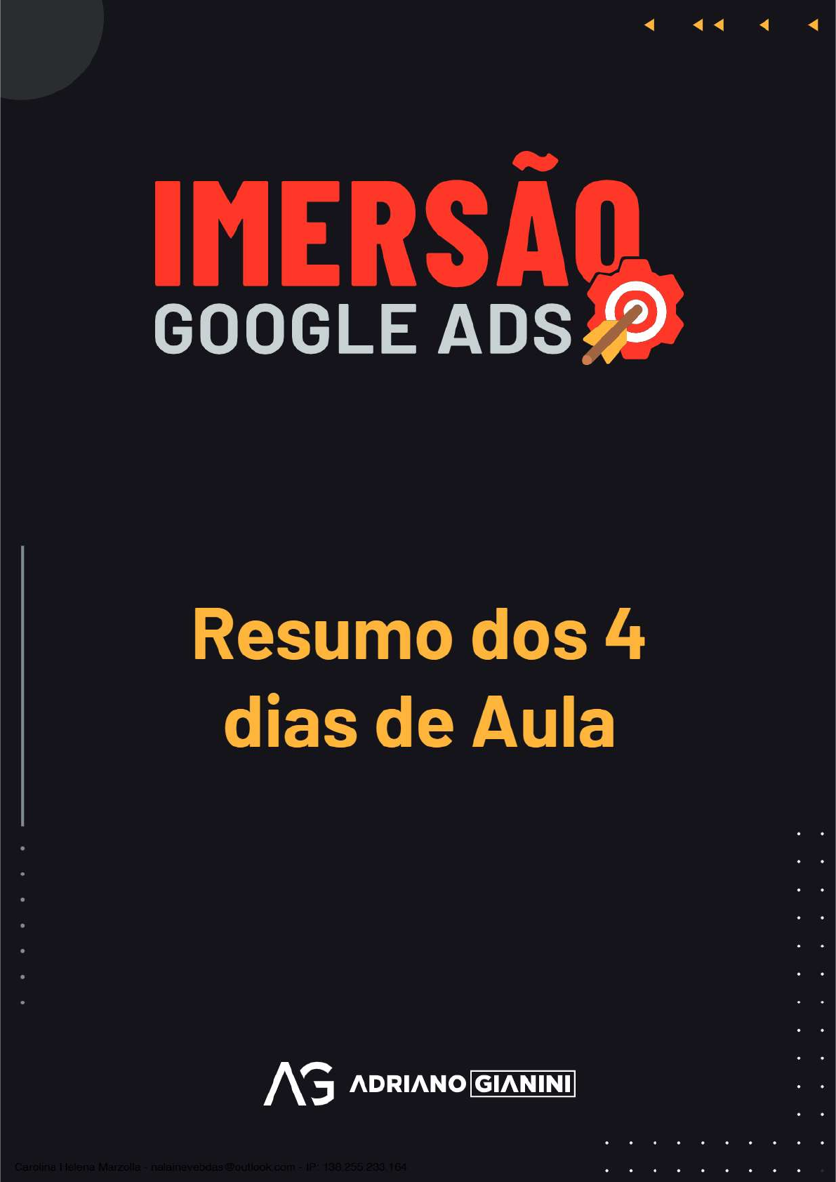 <p>IMERSAO GOOGLE ADS Resumo dos 4 dias de Aula AG ADRIANO GIANINI Carolina Helena Marzolla nalainevebdas @outlook com - IP 138.255.233.164</p><p>IMERSA Depoimentos GOOGLE ADS nataliafabricio Bom dia Adriano e equipe. Só tenho a agradecer vocês porque acabei de receber ligação após Quero agradecer pelo trabalho e muito tempo parado e foi assim pontuar o impacto que o seu : "Eu quero agendar uma trabalho teve. Atendo uma consulta com o senhor" olha o empresa de Desmonte nível de consciência que está Automotivo, e 24h após subir a chegando meu novo anúncio primeira Campanha, tive o após as 2 aulas de você... muito prazer de efetuar a primeira venda da empresa, uma peça avaliada em mais ou Muito mas muito obrigado Gratidão pela transformação Detalhe....é o primeiro contato que o seu conteúdo traz! que fecha do ano!!!! Andrieli Alves fiz uma mudança na estrategia do larissanunes_oficial_ meu anuncio e ja melhorou meu ctr e minhas conversões começaram Adriano, eu acabei de entrar nesse mundo Marketing, e a Adriano, tenho uma campanha rodando desde 18 de fevereiro. imersão foi um presente. Muito Venho mexendo nela constante- obrigada por ter empatia e mente devido aos seus videos. compartilhar o que levou anos Com a aula de hoje, a qual vi como reprise, pois sou professor para aprender. Eu fiquei de inglês e não consigo nos emocionada quando você falou horários estabelecidos. Acabei isso na live. e tenho certeza que de assisitir a aula 2 e já mexi pra caramba na estrutura de meus você vai colher muitos frutos. anuncios. Minha campanha reco- Você virou uma chave na minha meça a rodar amanhã e já estou cabeça que mudou tudo. Muito ancioso para ver o resultado! Meu site estava com aparência obrigada. péssima no Google, obrigada. Arrumei no meio da live. Você é sensacional, super inteligente, obrigada por tudo!!!! Quero mabaldovino #chegadelerolero um livro.... Se não ganhar, vou Adriano obrigada! Estou mesmo!! Muito feliz e impactado comprar!!! começando agora e não tinha Adriano com teus ensinamentos. noção nenhuma... consumi Depois das dicas de ontem, fui pro exercício de criar uma alguns "lero lero" fiz campanha campanha para meu negócio. apertando botão e, claro, sem Caracaaaaa pela primeira vez vi resultado. Em 1 aula vi o tanto de meu anúncio pular de quase não erros que cometi. A campanha aparecer para segunda posição. Mas ainda não me dei por tá pausada por enquanto. Tô satisfeito e bora atualizar para ser amando a imersão! Valeu! primeiro. GRATIDÃO e quero ser aluno do teu curso. Estou vendo meus concorrentes Responder com outros olhos agora kkkkk vendo sua aula, estou mexendo Muito massa a imersão! Muito até no nome dos meus produtos obrigado! K e categorias do meu site Carolina Helena Marzolla IP: 138.255.233.164</p><p>IMERS Depoimentos GOOGLE ADS boas_compra_palmasto Quando encontrei essa imersão buscava por ticojacob Já errei fazendo campanhas entender como configurar o google para de apertar botões no GoogleAds. Até a que eu pudesse vender, porque estou aula de hoje não compreendia que uma comecand do absoluto zero porém campanha eficaz, que traz resultados, assinti a aula agora a pouco e o conteúdo entregado não tem preço. Essa precisa ser elaborada com o foco em aula entregou a estratégia que há por apresentar solução para um problema/ trás dos grandes vendedores da dor do cliente. Dor, que muitas vezes, ele internet, coisas que eu não sabia, mas sente sem ter plena consciência. que não só eu, mas todas as pessoas Adriano, muito obrigado pela aula de que querem vender, precisam saber. hoje. #euentendiojogo Obrigado ao @adrianogianini e toda a sua equipe por entendem a minha dor e 14h Responder por estarem dispostos em colocar isso em foco para que eu pudesse enchergar. Essa imersão tem um grande valor e se espacotecendo Pausei minha esse conteúdo fosse pago seria um valor campanha, vi que fiz tudo #euentendiojogo errado#EUENTENDIOJOGO 19min Responder 14h Responder titoxmanuel Com certeça tenho muito por aprender de negocio, de pessoas, de mim, por compartilhar tanto clinica_dentalfit Meu maior aprendizado conteúdo foda mesmo. A partir de hoje foi esclarecer o que eu resolvia do não tenho como olhar um anúncio do problema e da dor do meu paiente. Já mesmo jeito, a partir de hoje criar mudei a estratégia. anúncios muito foda, vou dar direto no 14h Responder dor, mudar a minhá estratégia. Brigadão deus abençoe 14h Responder clinica_dentalfit @clinica_dentalfit paciente 14h Responder watsonmedeiros #entendiojogo me liguei naquela parada da dor, qual a dor que resolvo e pq ele deve comprar de Aprendi a pensar para mim e não do meu concorrente... já formar a estratégia antes de anunciar na estou pesquisando os sites dos meus mídia #euentendiojogo futuros concorrentes, pq ainda estou 14h Responder montando meu site de vendas ! 14h Responder Olá Adriano Assisti seus vídeos tutoriais instarogersilveira #euentendiojogo de campanha no YouTube e consegui fazer com que CTR Saber a dor do meu cliente, vai me fazer da campanha da loja onde faço criar campanhas que funcionam! social media subisse de 1% Obrigado Adriano! para 6% em menos de 2 agora estou fazendo o imersão 14h 1 curtida Responder para aprender mais sobre a estratégia e o marketing antes da campanha. Obrigado! o mercado da loja é roupa infantil bem concorrido Carolina Helena Marzolla IP: 138.255.233.164</p><p>IMERSAO GOOGLE ADS Resumo da Live DIA 01 AG ADRIANO GIANINI</p><p>Resumo Dia 01 GOOGLE ADS Para fazer o marketing da sua empresa ser sólido e crescer, é necessário constância! Não é somente hoje, não é somente amanhã, é sempre! Fazer hoje, pode te tornar melhor amanhã. Se o seu marketing está ruim, sem resultados, é consequência de não ter feito nada ontem. o que você fizer hoje vai dar frutos amanhã, mas se deixar de fazer, de estu- dar, de buscar coisas novas, de estar sempre atualizado, você vai sair do jogo, va