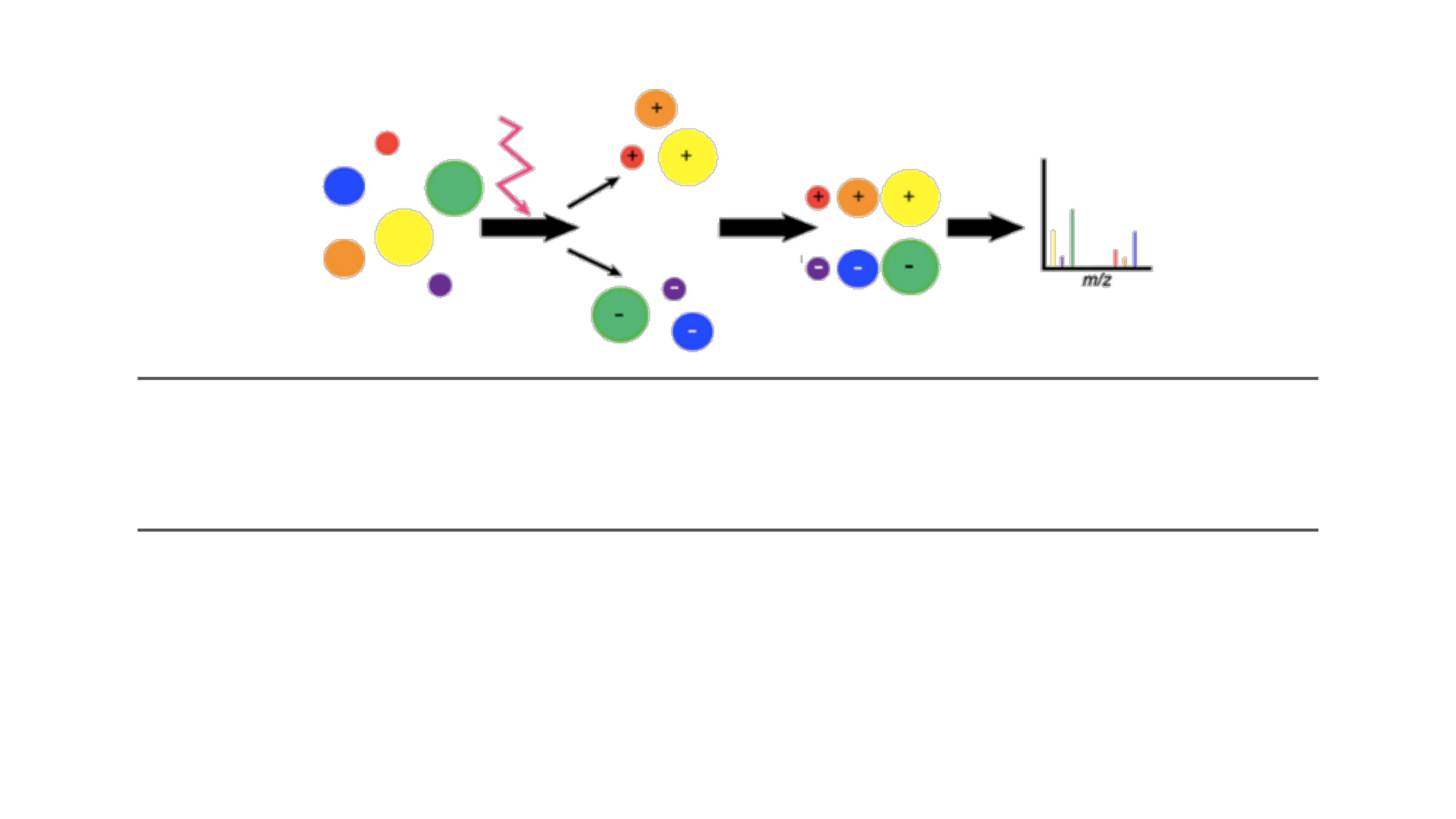 <p>Espectrometria de Massas</p><p>Profa. Dra. Patrícia Bulegon Brondani</p><p>(@patyqmc)</p><p>2</p><p>Conceitos prévios necessários</p><p>✓ Mecanismos de reações orgânicas;</p><p>✓ Interações intermoleculares;</p><p>✓ Ionização;</p><p>✓ Rearranjos moleculares;</p><p>✓ Cromatografia Gasosa e Líquida.</p><p>3</p><p>Espectrometria de Massas</p><p>Identificação, quantificação e caracterização molecular e</p><p>estrutural de amostras com base na sua composição elementar</p><p>✓ Identificar compostos desconhecidos;</p><p>✓ Quantificar materiais conhecidos;</p><p>✓ Elucidar as propriedades químicas e estruturais das moléculas;</p><p>✓ Determinar a massa molecular de alguns compostos;</p><p>✓ Análise de sequenciamento proteínas, peptídeos…;</p><p>✓ Indústria farmacêutica em diversas etapas;</p><p>✓ Aplicabilidade clínica: análise de hemoglobina, teste de drogas...</p><p>O que é?</p><p>Para que serve?</p><p>4</p><p>Espectrometria de Massas</p><p>Alto vácuo</p><p>Espectro de Massas</p><p>Sistema</p><p>de dados</p><p>Fonte</p><p>de íon</p><p>Analisador</p><p>de massas</p><p>Compartimento</p><p>de entrada</p><p>da amostra</p><p>Detector</p><p>de íons</p><p>Interface</p><p>atmosfera/vácuo</p><p>5</p><p>Espectrometria de Massas</p><p>Na maioria dos experimentos de E.M.</p><p>z = +1, logo</p><p>m/z = m/1 = m</p><p>ou seja: m/z = massa do íon</p><p>Ionização Aceleração</p><p>(voltagem aplicada)</p><p>Detector</p><p>+ - - Campo</p><p>Magnético</p><p>6</p><p>Espectrometria de Massas: Injeção da Amostra</p><p>Amostras:</p><p>Gasosas,</p><p>líquidas ou</p><p>sólidas</p><p>Equipamento de Massas acoplado com Cromatógrafo Gasoso (CG) ou Líquido (LC) são muito úteis</p><p>Amostras são</p><p>vaporizadas na</p><p>câmara de</p><p>vaporização</p><p>7</p><p>--</p><p>Espectrometria de Massas: Ionização</p><p>Ionização por Impacto de Elétrons (EI)</p><p>+</p><p>Após injeção e</p><p>vaporização</p><p>Bomba</p><p>+</p><p>Ânodo</p><p>Filamento</p><p>Pratos de</p><p>aceleração</p><p>Prato de</p><p>repulsão</p><p>Para o campo</p><p>magnético</p><p>Feixe de</p><p>elétrons</p><p>Cátion Radical</p><p>Íon Molecular (M+.)</p><p>Mesma massa da molécula</p><p>+ . + . + . + . + . + . + . + . + .</p><p>8</p><p>Espectrometria de Massas: Ionização</p><p>e-</p><p>e-</p><p>e-</p><p>e-</p><p>Amostra</p><p>e-</p><p>e-</p><p>Potencial de</p><p>ionização</p><p>(8-15 eV)</p><p>+.</p><p>Fragmentos que aparecem</p><p>no espectro</p><p>+ .</p><p>+ .+ .</p><p>+ .</p><p>+ . + .</p><p>Feixe possui 50-75 eV</p><p>e-</p><p>e-</p><p>e-</p><p>e-</p><p>e-</p><p>e-</p><p>9</p><p>Espectrometria de Massas: Ionização</p><p>Vantagens Desvantagens</p><p>Bom para análise de rotina de</p><p>pequenas moléculas orgânicas</p><p>Muita fragmentação → íon molecular</p><p>pode não ser detectável</p><p>Barato e robusto Amostra deve ser relativamente</p><p>volátil</p><p>Bastante fragmentação → estrutura Ruim para análise de moléculas com</p><p>alto peso molecular e biomoléculas</p><p>Espectros reprodutíveis – Grande</p><p>banco de dados de EI-MS disponível</p><p>10</p><p>Coluna</p><p>Espectrometria de Massas: combinações</p><p>Cromatograma</p><p>Espectrômetro</p><p>de massas</p><p>Fase móvel</p><p>(solvente)</p><p>Bomba</p><p>Compartimento</p><p>de injeção</p><p>CG também</p><p>pode ser</p><p>combinado (fase</p><p>móvel é gás)</p><p>LC-MS</p><p>11</p><p>O Espectro de Massas e o Íon Molecular</p><p>Eixo Y –</p><p>Abundância do íon</p><p>Eixo X – razão m/z</p><p>PM = 98 g.mol-1</p><p>Pico do íon molecular (M+): pico com maior m/z (exceto picos dos isótopos).</p><p>Algumas vezes não aparece ou aparece em baixa abundância!!!!</p><p>M+</p><p>Pico</p><p>base M+ = Íon</p><p>molecular = cátion</p><p>radical</p><p>(Mesmo PM da</p><p>amostra)</p><p>Pico base</p><p>pico mais alto</p><p>(100%);</p><p>íon com maior meia-</p><p>vida; mais estável;</p><p>12</p><p>✓ Perda de 16 (O), 17 (OH) ou 18 (H2O): compostos oxigenados</p><p>1) Observação dos fragmentos</p><p>✓ M - 15: perda de CH3</p><p>✓ M - 18: perda de H2O</p><p>✓ M - 31: perda de OCH3 (ésteres ou éteres)</p><p>✓ Perda de M - 3 a M - 14: Contaminantes ou o pico é proveniente de</p><p>uma fragmentação e não do M+;</p><p>✓ Perda de M - 19 a M - 25: incomuns, exceto: M - 19 (F) e M - 20 (HF);</p><p>O Espectro de Massas e o Íon Molecular</p><p>13</p><p>Íon Molecular</p><p>58</p><p>M+1</p><p>Fragmentos</p><p>https://sdbs.db.aist.go.jp/sdbs/cgi-bin/direct_frame_top.cgi</p><p>Pico Base</p><p>43</p><p>58 - 43 = 15</p><p>Metila (CH3)</p><p>O Espectro de Massas e o Íon Molecular</p><p>14</p><p>2) Regra do Nitrogênio:</p><p>✓ íon molecular com m/z ímpar = número ímpar de nitrogênios</p><p>✓ íon molecular com m/z par = número par de nitrogênios</p><p>(incluindo zero)</p><p>Metano (CH4) M+ m/z = 16</p><p>Exemplos</p><p>Etilamina (CH3CH2NH2) M+ m/z = 45</p><p>Etilenodiamina (NH2CH2CH2NH2) M+ m/z = 60</p><p>O Espectro de Massas e o Íon Molecular</p><p>15</p><p>Em reações químicas há uma previsão de produtos possíveis e isso</p><p>ajuda a saber se é o íon molecular ou outro fragmento.</p><p>3) Variação da energia do feixe de elétrons (EI): diminui fragmentação</p><p>do M+ = aumento da intensidade do pico M+ e diminuição dos picos dos</p><p>fragmentos ! gera um espectro com menos sinais</p><p>4) Utilização de ionização química (CI): fornece íon (M+H)+ intenso e</p><p>pouca fragmentação ! gera um espectro com menos sinais</p><p>O Espectro de Massas e o Íon Molecular</p><p>16</p><p>Aromáticos > alquenos conjugados > compostos</p><p>cíclicos > alcanos normais de cadeias curtas</p><p>Álcoois alifáticos, nitritos, nitratos, nitrocompostos,</p><p>nitrilas, compostos muito ramificados</p><p>O Espectro de Massas e o Íon Molecular</p><p>Ordem decrescente de estabilidade do íon molecular:</p><p>Frequentemente não aparecem:</p><p>17</p><