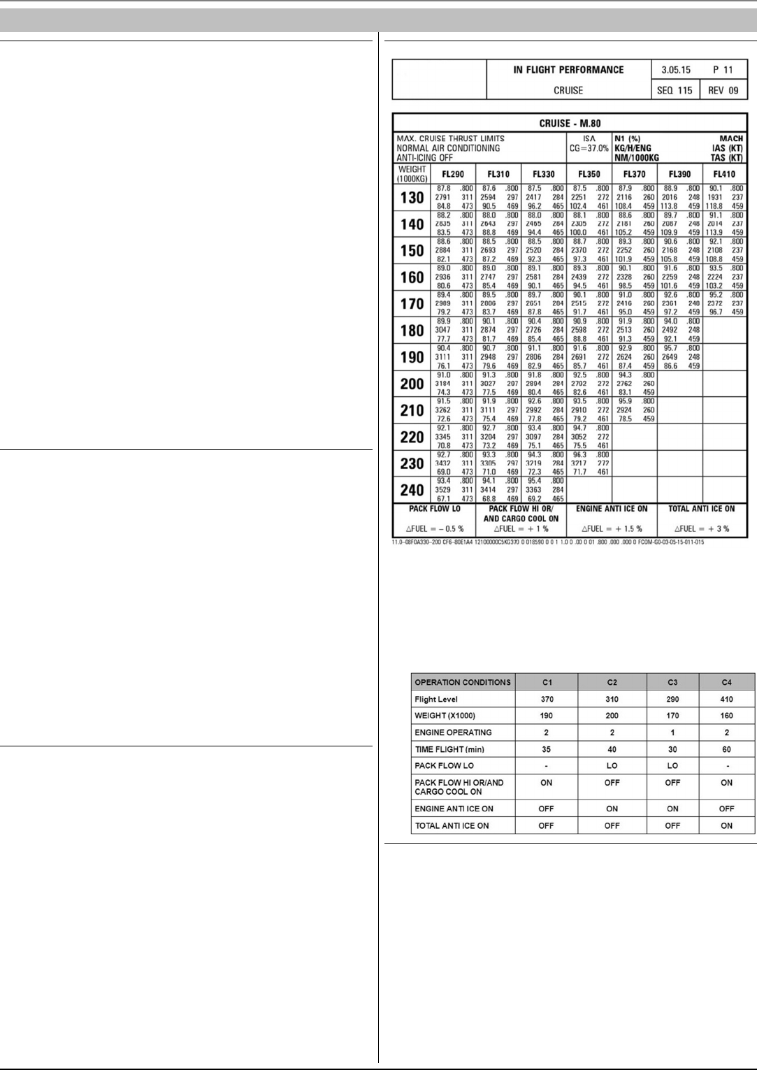 <p>CEBRASPE – ANAC – Edital: 2023</p><p>-- CONHECIMENTOS ESPECÍFICOS --</p><p>No que se refere à meteorologia aeronáutica, julgue os itens a</p><p>seguir.</p><p>51 DZ, SN e GR são, respectivamente, as siglas dos fenômenos</p><p>de precipitação chuvisco, neve e granizo.</p><p>52 Se uma aeronave em voo solicitar informações</p><p>meteorológicas, o centro meteorológico integrado (CMI), ao</p><p>receber o pedido, deve tomar medidas para fornecer as</p><p>informações, se necessário, com auxílio de outro centro</p><p>meteorológico.</p><p>53 O período de validade do TAF (terminal aerodrome</p><p>forecast) deve ser de 24 horas, para atender ao planejamento</p><p>operacional dos voos para aeródromos nacionais.</p><p>54 O aviso de cortante de vento deve ser cancelado após o</p><p>recebimento de informações de aeronaves cuja existência</p><p>não seja mais constatada.</p><p>55 A evidência da cortante de vento pode ser derivada da</p><p>observação dos pilotos das aeronaves durante a fase de</p><p>cruzeiro.</p><p>Acerca dos requisitos para o cálculo da quantidade mínima de</p><p>combustível requerida em uma aeronave, julgue os próximos</p><p>itens.</p><p>56 A quantidade de combustível utilizável a ser levada a bordo</p><p>deve ser baseada em dados atualizados específicos do avião,</p><p>derivados de um sistema de monitoramento de consumo de</p><p>combustível; na falta de tais dados, serão aceitos os dados</p><p>fornecidos pelo fabricante do avião.</p><p>57 Caso o aeródromo de destino seja isolado, admite-se que o</p><p>combustível de contingência seja menor que a quantidade</p><p>requerida para a aeronave voar por 5 minutos em velocidade</p><p>de espera a 450 m (1.500 pés) sobre a elevação do</p><p>aeródromo de destino, em condição de atmosfera padrão.</p><p>Uma aeronave vazia tem peso básico de 800 kg e braço de</p><p>centro de gravidade de 248 cm a partir do datum line. Em uma</p><p>viagem, essa aeronave terá a bordo: dois pilotos, cujo peso</p><p>totaliza 180 kg (braço 220 cm); dois passageiros, cujo peso</p><p>totaliza 160 kg (braço 310 cm); 200 L de combustível, com peso</p><p>de 156 kg (braço 270 cm); e bagagem com peso total de 35 kg</p><p>(braço 430 cm).</p><p>A partir da situação hipotética apresentada, julgue os itens a</p><p>seguir.</p><p>58 A posição do centro de gravidade para decolagem da</p><p>aeronave será superior a 255 cm.</p><p>59 Se um dos passageiros pesar 90 kg e desistir da viagem,</p><p>então o novo centro de gravidade de decolagem da aeronave</p><p>aumentará para um valor superior a 260 cm.</p><p>Considerando a tabela precedente, que mostra o consumo de uma</p><p>aeronave que voa em regime de cruzeiro a M.80, julgue o item</p><p>seguinte.</p><p>60 Para uma aeronave voando em regime de cruzeiro a M.80 na</p><p>condição de operação C1 da tabela abaixo, o consumo total</p><p>de combustível será inferior a 2.600 kg/h.</p><p>Espaço livre</p><p>CEBRASPE – ANAC – Edital: 2023</p><p>A respeito do driftdown e da determinação de consumo de uma</p><p>aeronave, julgue os itens que se seguem.</p><p>61 Na manobra driftdown, em tese, a tração dos motores</p><p>remanescentes deve ser ajustada para a tração máxima</p><p>contínua (maximum continuous thrust).</p><p>62 Caso ocorra a falha do motor crítico do avião, o piloto deve</p><p>ser capaz de conduzir a aeronave ao longo de uma trajetória</p><p>que supere qualquer obstáculo durante a descida em pelo</p><p>menos 1.000 pés e, ao nivelar, supere qualquer obstáculo em</p><p>pelo menos 2.000 pés.</p><p>A respeito de redespacho e da lista de equipamentos mínimos</p><p>(MEL) de uma aeronave, julgue os itens subsequentes.</p><p>63 Para falhas ocorridas ou descobertas durante o voo, a MEL</p><p>não se aplica até a próxima decolagem, de modo que devem</p><p>ser observados os procedimentos constantes nas listas de</p><p>verificações da aeronave (checklists) e nas seções</p><p>apropriadas do manual de voo aprovado da aeronave.</p><p>64 Os treinamentos periódicos devem ser conduzidos, no</p><p>mínimo, a cada 24 meses, para reforçar o conhecimento dos</p><p>pilotos a respeito dos procedimentos e atualizar os prepostos</p><p>quanto a quaisquer alterações nos procedimentos para uso da</p><p>MEL.</p><p>65 Redespacho é um método alternativo de abastecimento da</p><p>aeronave, que considera a seguinte fórmula: combustível</p><p>para voar da origem ao destino, mais 5% do reclearence fix</p><p>até o destino, acrescido do combustível suficiente do destino</p><p>até o destino alternativo, acrescido de combustível suficiente</p><p>para manter 15 minutos de voo a 1.500 pés.</p><p>No que se refere à navegação aérea, julgue os itens a seguir.</p><p>66 Nenhuma pessoa pode operar uma aeronave civil em voo</p><p>IFR usando um sistema de radionavegação VOR, a menos</p><p>que o equipamento VOR da aeronave tenha sido verificado</p><p>por meio de um sinal de teste de VOR operado pelo ATC do</p><p>aeroporto de onde pretende decolar, sendo o erro máximo</p><p>admissível, na indicação de marcação magnética, de ±3°.</p><p>67 A operação em rotas RNAV 10 em áreas oceânicas ou</p><p>remotas sem o apoio de radioauxílios à navegação requer que</p><p>a navegação da aeronave seja baseada em sistemas</p><p>de navegação de longo alcance suportados por sistemas de</p><p>navegação inercial e(ou) GNSS.</p><p>68 A navegação de área (RNAV) é o método de navegação que</p><p>permite a operação de aeronaves em qualquer trajetória de</p><p>voo desejada dentro da cobertura de auxílios à navegação,</p><p>baseados no solo ou no espaço, ou dentro dos limites das</p><p>possibilidades dos equipamentos autônomos de navegação,</p><p>ou de uma combinação de ambos.</p><p>A respeito de sistemas de coordenadas geográficas, julgue o</p><p>próximo item.</p><p>69 GPS, GLONASS, GALILEO e COMPASS são exemplos de</p><p>constelações com a finalidade