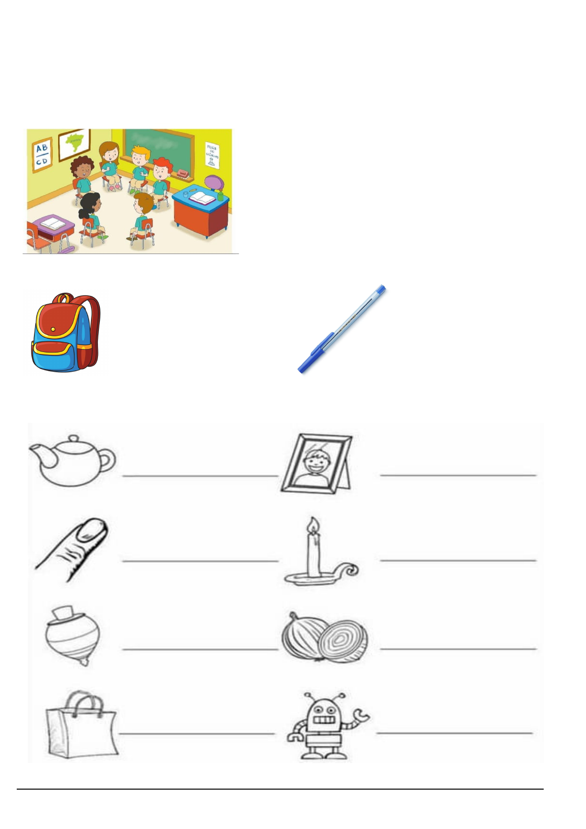 <p>NOME:______________________________1º ANO -_______DATA:____________</p><p>ATIVIDADE AVALIATIVA DE LÍNGUA PORTUGUESA</p><p>1-ESCREVA O NOME DE CINCO OBJETOS USADOS NA SALA DE AULA:</p><p>___________________________________________________</p><p>___________________________________________________</p><p>___________________________________________________</p><p>___________________________________________________</p><p>____________________________________________________</p><p>2-ESCREVA A SÍLABA QUE FALTA NO NOME DA FIGURA:</p><p>MOCHI ___ CANE ____</p><p>3-ESCREVA O NOME DAS FIGURAS:</p><p>"CEMPRE" - OSWALDO REGINO ORNELLAS</p><p>NOME:_________________________________________________________________________</p><p>PROFESSOR (A):____________________________________________DATA:____/____/2024</p><p>AVALIAÇÃO DAS APRENDIZAGENS - 3º BIMESTRE - LÍNGUA PORTUGUESA</p><p>4-LEIA E RESPONDA:</p><p>BRIGADEIRO</p><p>INGREDIENTES</p><p>1 LATA DE LEITE CONDENSADO</p><p>2 COLHERES DE MARGARINA</p><p>4 COLHERES DE CHOCOLATE EM PÓ</p><p>CHOCOLATE GRANULADO</p><p>MODO DE PREPARO: MISTURE TODOS OS INGREDIENTES E LEVE AO FOGO</p><p>BAIXO, MEXENDO SEMPRE, ATÉ SE DESPRENDER DO FUNDO DA PANELA.</p><p>RETIRE DO FOGO E DEIXE ESFRIAR. FAÇA BOLINHAS E PASSE NO</p><p>CHOCOLATE GRANULADO.</p><p>- A RECEITA ACIMA ENSINA A FAZER:</p><p>5- QUAL O NOME DO LIVRO? PINTE OU CIRCULE:</p><p>O COELHINHO QUE COMIA CENOURAS.</p><p>O COELHINHO QUE NÃO ERA DE PÁSCOA.</p><p>O COELHINHO QUE NÃO DORMIA.</p><p>6-COMPLETE A CANTIGA CORRETAMENTE:</p><p>_____________________________________________________________________</p><p>O SAPO NÃO LAVA O ______________</p><p>NÃO LAVA PORQUE NÃO QUER</p><p>ELE MORA NA ________________</p><p>NÃO LAVA O PÉ PORQUE NÃO QUER</p><p>MAS QUE _____________________</p>