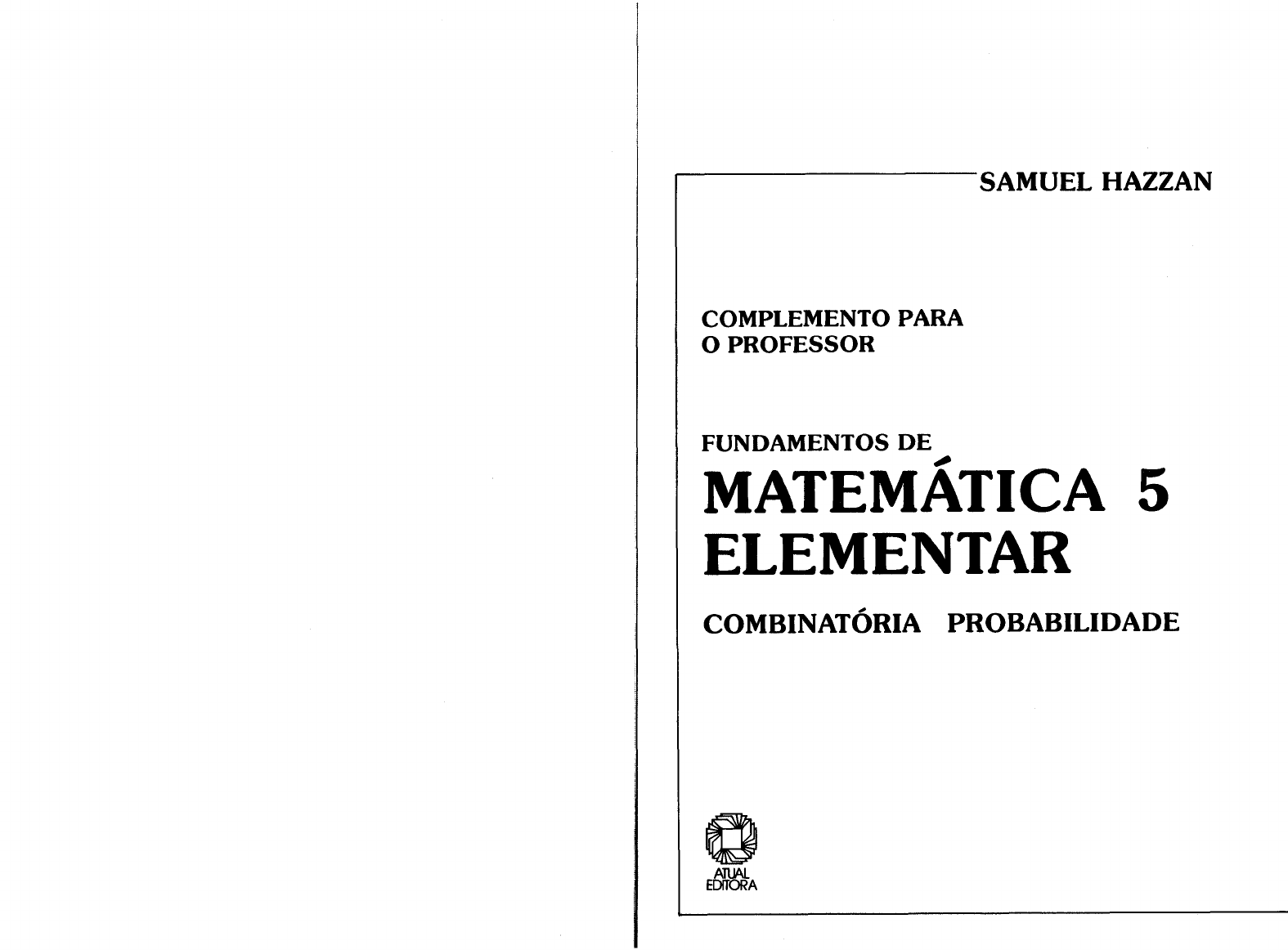 <p>SAMUEL HAZZAN COMPLEMENTO PARA PROFESSOR FUNDAMENTOS DE MATEMÁTICA 5 ELEMENTAR COMBINATÓRIA PROBABILIDADE ATUAL EDITORA</p><p>Samuel Hazzan Copyright desta edição: SARAIVA S.A. Livreiros Editores, São Paulo, 2006. Av. Marquês de São Vicente, 1697 Barra Funda 01139-904 São Paulo SP Fone: (0xx11) 3613-3000 Fax: (0xx11) 3611-3308 Fax vendas: (0xx11) 3611-3268 Todos os direitos reservados. Dados Internacionais de Catalogação na Publicação (CIP) (Câmara Brasileira do Livro, SP, Brasil) Fundamentos de matemática elementar comple- mento para o professor. - São Paulo: Atual, 1993. Apresentação Conteúdo: 1. Conjuntos e funções / Gelson Carlos V. 2. Logaritmos / Gelson Osvaldo Dolce, Carlos 3. Trigonometria / Gelson 4. matrizes, determinantes, sistemas / Gelson Samuel Hazzan. 5. Combina- tória, probabilidade / Samuel Hazzan. 6. Este livro é o Complemento para o Professor do volume 5, Combinatória/ Complexos, polinômios, equações Geome- Probabilidade, da coleção Fundamentos de Matemática tria analítica / Gelson V. 8. Limites, de- rivadas. noções de integral Gelson Iezzi, Carlos Cada volume desta coleção tem um complemento para o professor, com o obje- Murakami, Nilson José Machado. - V. 9. Geome- tria plana V. 10. Geometria espacial : posição tivo de apresentar a solução dos exercícios mais complicados do livro e sugerir sua e métrica / Osvaldo Dolce, José Nicolau Pompeo. passagem aos alunos. Matemática grau) 2. Matemática É nossa intenção aperfeiçoar continuamente os Complementos. Estamos aber- grau) Problemas e exercícios etc. 3. Mate- mática (Vestibular) Testes I. lezzi, Gelson, tos às sugestões e críticas, que nos devem ser encaminhadas através da Editora. 1939- II. Carlos, 1943- III. Dolce. Agradecemos ao professor David Mauro Degenszajn a colaboração na redação IV. Hazzan, Samuel, 1946- V. Nilson José, 1947- VI. Pompeo, José das soluções que são apresentadas neste Complemento. Nicolau, 1945- 93-1795 CDD 510.7 Os Autores. Índices sistemático: 1. Matemática Ensino de 2.° grau 510.7 Complemento para o Professor Fundamentos de Matemática Elementar 5 Editora: Bárbara Ferreira Arena Editor de campo: Valdir Montanari Coordenadora editorial: Sandra Lucia Abrano Chefe de preparação de texto e Noé Ribeiro Coordenadora de Maria Luiza Xavier Souto Revisores: Alice Kobayashi Magna Reimberg Teobaldo Maria Cecília Fernandes Vannucchi Maria da Penha Faria Vera Lúcia Pereira Della Rosa Editor de arte: Zildo Braz Chefe de arte: Glair Alonso Arruda Assistentes de Lu Bevilacqua Ghion Ricardo Yorio Rosi Meire Martins Ortega Gerente de produção: Antonio Cabello Q. Filho Coordenadora de produção: Silvia Regina E. Almeida Produção gráfica: José Rogerio L. de Simone Maurício T. de Moraes Capa: Ettore Bottini Foto de capa: Hilton Ribeiro Consultor David Mauro Fotolito: Binhos/H.O. Panaroni Composição e arte-final: Paika Realizações Gráficas Visite nosso site: Central de atendimento ao professor: 3613-3030 Impresso nas oficinas da Gráfica Palas Athena</p><p>Sumário Capítulo I - Análise Combinatória 1. Cada refeição consta de um par ordenado (a, b), em que a representa o tipo de carne e b a sobremesa. Logo, há 8.5 = 40 refeições possíveis. Capítulo I Análise combinatória 1 Capítulo II Binômio de Newton 35 2. Uma maneira de se vestir pode ser indicada pelo par (a, b), em que a representa Capítulo III Probabilidade 56 a blusa e b a saia vestida. Assim, temos 5 6 - 30 formas possíveis. 3. Cada posição do banco é um par (a, b), em que a representa seu assento e b seu encosto. Temos, daí, = 30 posições distintas. 4. Cada casal consiste em um par (a, b), em que a representa o homem e b a mu- número de casais é, portanto, 5. Cada percurso consta de um par ordenado (a, b), com a # b, em que a represen- ta a porta de entrada e b a de saída. Temos, então, 8.7 = 56 possibilidades. 6. Qualquer premiação possível consta de um par (a, b), com a b, em que a e b representam, respectivamente, 1.° e colocados. Logo, há 12 11 = 132 possibilidades. 7. Uma forma de se vestir pode ser indicada por uma tripla ordenada (a, b, c), em que a representa o terno, b a camisa e o par de sapatos. Temos, portanto, formas de se vestir. 8. Cada escolha é uma terna ordenada (a, b, c), em que a representa a con do auto- móvel, b o motor e a versão. Assim, há 7.2.3 42 alternativas de compra. 10. Cada resposta do teste é uma do tipo em que cada a; vale V ou F. Portanto, o número de possibilidades 20 vezes 11. Cada resultado consta de uma ..., em que cada jogo po- de assumir 4 resultados possíveis. Assim, temos, 4 4 106 resultados 10 vezes 1</p><p>12. Qualquer palavra consiste em uma em que cada é 20. Sejam a o número de calças e b o número de paletós. O número de conjuntos um bit e vale 0 ou 1. Daí, há 2 2 2 = 232 palavras. distintos que podem ser formados é a b = 24. Os possíveis naturais que satisfa- zem a condição acima são 1 e 24, 2 e 12, 3 e 8, 4 e 6. Dentre eles, a soma mínima é 10. 32 vezes 21. Cada resultado consiste em uma a6), em que representa 13. A sala poderá ser aberta ao abrirmos 1, 2 ou até 10 portas. Então, cada porta o número obtido no lançamento do i-ésimo dado. poderá ficar aberta ou fechada. Excluindo o caso em que todas ficam fechadas, Assim, há 6 66 resultados possíveis. pelo princípio fundamental da contagem temos: 6 vezes - 1 = I = 023 possibilidades. 10 vezes 22. Seja A = {0, 1, Cada número de telefone é uma do tipo (2, ..., b4), em que e A* e A. Então, existem 104 números de telefone. 14. Usando a convenção 0: o aluno não é escolhido 23. a) Cada letra é uma a3), em que a; vale (-) ou Assim, te- o aluno é escolhido mos notamos que cada aluno será identificado por ou 1. b) O total de letras será dado pela soma das letras que apresentam 1, 2, ou 8 Se considerarmos a situação em que nenhum aluno é escolhido, teremos, pelo símbolos, isto é, princípio fundamental da 