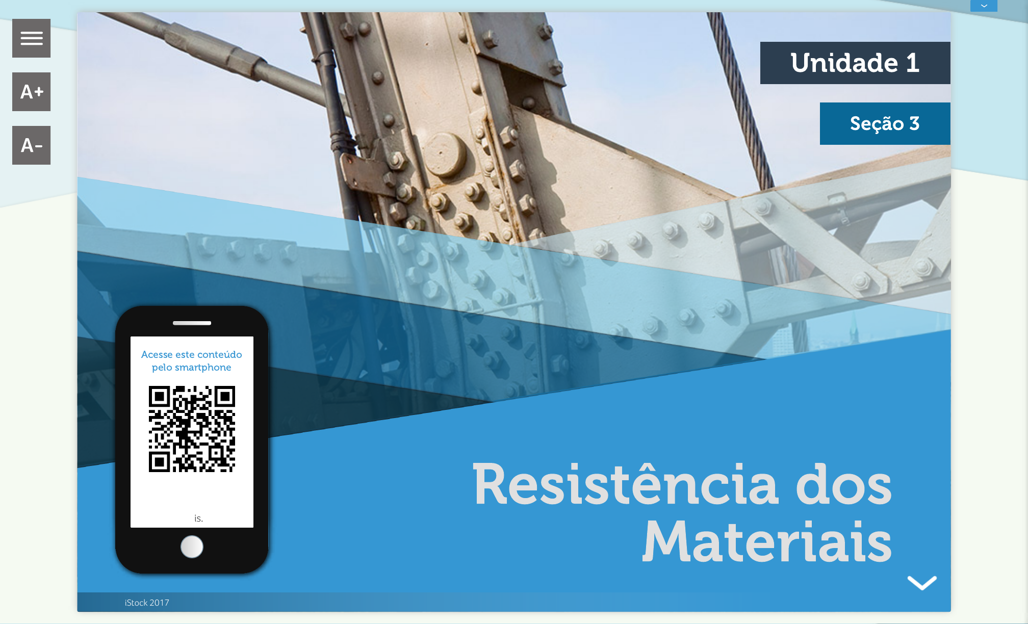 <p>Unidade 1</p><p>Seção 3</p><p>iStock 2017</p><p>Resistência dos</p><p>Materiais</p><p>1. Acesse a loja de</p><p>aplicativos do seu</p><p>smartphone e baixe</p><p>um leitor de QR CODE.</p><p>2. Abra o leitor e</p><p>fotografe o código.</p><p>3. Você será</p><p>direcionado a este</p><p>conteúdo.</p><p>Bons estudos!</p><p>Acesse este conteúdo</p><p>pelo smartphone</p><p>O que é isso?</p><p>Clique no código e saiba</p><p>mais.</p><p>1</p><p>Webaula 3</p><p>Tensões de cisalhamento e de</p><p>esmagamento</p><p>A tensão de cisalhamento é um tipo de tensão</p><p>gerada devido à aplicação, na seção transversal</p><p>de um material, de forças de mesma direção,</p><p>porém com sentido contrário, proporcionando</p><p>no material uma deformação ou corte.</p><p>Estrada destruída pelo efeito da tensão cisalhante</p><p>iStock 20172</p><p>A tensão de cisalhamento é representada pela</p><p>letra grega τ(tau), com unidade no sistema</p><p>internacional de NIm² .</p><p>Fonte: https://goo.gl/QWpKJe . Acesso em:2 jul. 2017.</p><p>3</p><p>https://goo.gl/QWpKJe</p><p>Tensão de cisalhamento em elementos estruturais</p><p>Segundo Hibbeler (2010), “para uma viga com seção transversal retangular, a tensão de cisalhamento</p><p>varia parabolicamente com a altura. A tensão de cisalhamento máxima ocorre ao longo do eixo</p><p>neutro”, como pode ser visto na figura a seguir.</p><p>Fonte: Hibbeler (2010, p. 265).</p><p>4</p><p>Iremos focar as situações de tensão de cisalhamento média que ocorrem normalmente em parafusos,</p><p>rebites e pinos de máquinas e estrutura. Para estas situações, é frequente apresentar uma condição de</p><p>cisalhamento simples ou duplo.</p><p>iStock 20175</p><p>Na figura “a”, as barras chatas, representadas</p><p>por A e B, estão submetidas à força de tração F</p><p>e F’. Estes esforços proporcionarão tensões no</p><p>parafuso na seção EE’. A figura “b” apresenta o</p><p>diagrama de corpo livre (DCL); desta forma,</p><p>fazendo um corte na seção EE’ e aplicando a</p><p>equação de equilíbrio temos que</p><p>, sendo que a carga P indicada na</p><p>imagem “a” é a força cortante na seção EE’ do</p><p>parafuso.</p><p>F = P</p><p>∑Fx = 0 Fonte: adaptadas de Beer et al. (2015, p. 9).</p><p>6</p><p>A figura “b” mostra o DCL do parafuso HJ, no</p><p>qual podemos fazer dois cortes, nas seções KK’</p><p>e LL’, para podermos aplicar a equação de</p><p>equilíbrio conforme apresentado na figura “c”.</p><p>Para cada seção temos a força P=F/2.</p><p>Fonte: adaptadas de Beer et al. (2015, p. 10).</p><p>7</p><p>Tensão de esmagamento</p><p>Nas ligações das estruturas, os parafusos, rebites e pinos, além de sofrerem tensões de cisalhamento,</p><p>podem proporcionar tensões de esmagamento no contato com a superfície das barras que estão</p><p>conectadas. Podemos ver um par de ação e reação que ocorre no contato entre a superfície da barra</p><p>chata A e o parafuso CD.</p><p>Fonte: adaptadas de Beer et al. (2015, p. 10).</p><p>8</p><p>A força P aplicada na barra chata A é a resultante das forças que ocorrem nessa interação.</p><p>Assim, a tensão de esmagamento, representada por , resulta da razão da força P pela área</p><p>retangular de projeção do parafuso sobre a superfície.</p><p>σe</p><p>9</p><p>Vídeo de encerramento</p><p>10</p><p>https://fast.player.liquidplatform.com/pApiv2/embed/cef0e36cb56bc0d80571195a9e6072ec/d0d983ea83d842d31d129f06d6d25137</p><p>Android:</p><p>https://goo.gl/yAL2Mv</p><p>iPhone e iPad - IOS:</p><p>https://goo.gl/OFWqcq</p><p>Aqui você tem na palma da sua mão a biblioteca digital para</p><p>sua formação profissional.</p><p>Estude no celular, tablet ou PC em qualquer hora e lugar</p><p>sem pagar mais nada por isso.</p><p>Mais de 450 livros com interatividade, vídeos, animações e</p><p>jogos para você.</p><p>Você já conhece o Saber?</p><p>11</p><p>https://play.google.com/store/apps/details?id=br.com.kroton.saber</p><p>https://goo.gl/yAL2Mv</p><p>https://itunes.apple.com/br/app/saber/id1030414048?mt=8</p><p>https://itunes.apple.com/br/app/saber/id1030414048?mt=8</p><p>Bons estudos!</p><p>12</p>