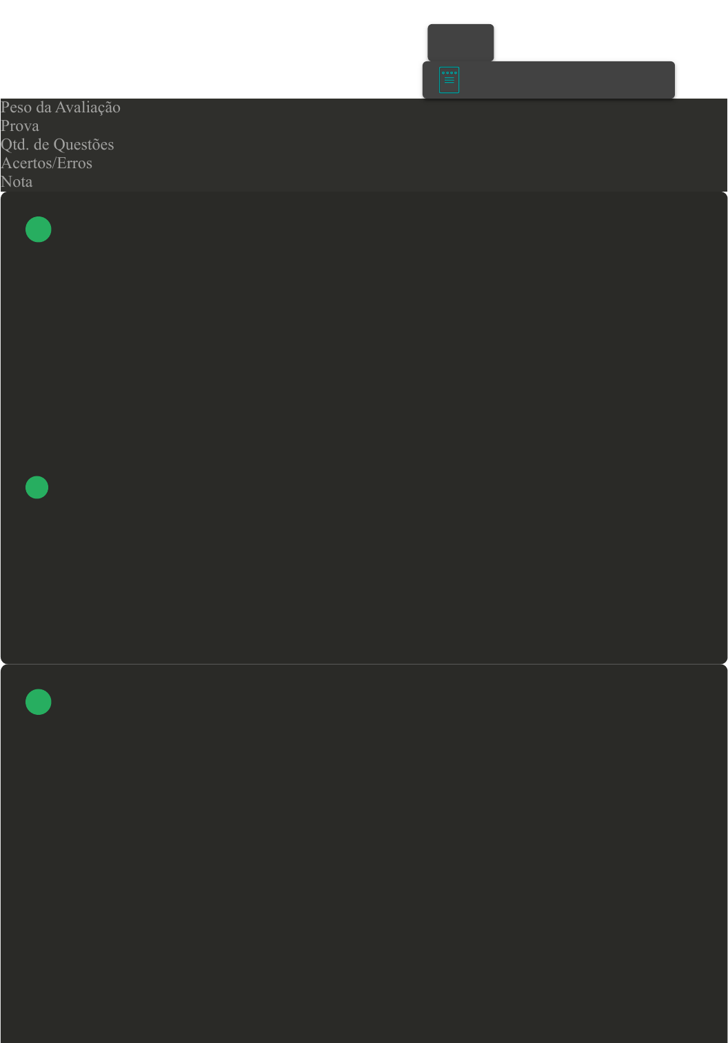 <p>Prova Impressa</p><p>GABARITO | Avaliação Final (Objetiva) - Individual</p><p>(Cod.:768716)</p><p>Peso da Avaliação 3,00</p><p>Prova 56359316</p><p>Qtd. de Questões 12</p><p>Acertos/Erros 5/7</p><p>Nota 5,00</p><p>No grupo denominado "Passivo Circulante", são escrituradas as obrigações da entidade,</p><p>inclusive financiamentos para aquisição de direitos do ativo não-circulante, quando vencerem no</p><p>exercício seguinte, isto é, no prazo de 12 meses seguintes ao do balanço. Sobre as contas existentes</p><p>somente no "Passivo Circulante", classifique V para as sentenças verdadeiras e F as falsas:</p><p>( ) Fornecedores, salários a pagar e estoques;</p><p>( ) Impostos a recolher, salários a pagar e fornecedores;</p><p>( ) Financiamento a pagar, salários a pagar, banco.</p><p>( ) Empréstimos a pagar, fornecedores e contas a pagar.</p><p>Assinale a alternativa que apresenta a sequência CORRETA:</p><p>FONTE: . Acesso em: 3 jul. 2018.</p><p>A F - V - F - V.</p><p>B F - F - V - V.</p><p>C V - F - V - V.</p><p>D F - F - V - F.</p><p>O Balanço Patrimonial consiste na demonstração, em determinada data, da situação financeira e</p><p>patrimonial de uma entidade (HIRASHIMA, 2006). As contas patrimoniais são aquelas que</p><p>representam, por meio do balanço patrimonial, a situação do patrimônio da empresa, dividindo-se em</p><p>ativo e passivo. Essas contas patrimoniais são agrupadas no balanço patrimonial em grupos e</p><p>subgrupos. Com relação às contas patrimoniais, classifique V para as sentenças verdadeiras e F para</p><p>as falsas:</p><p>( ) Capital social, direitos a receber, custo de mercadoria venda e edificações.</p><p>( ) Máquinas, equipamento, direitos de exploração e reservas de capital.</p><p>( ) Duplicatas a receber, receitas de vendas, fornecedores e IPI a recuperar</p><p>( ) Lucro acumulados, veículos, estoques e despesas com juros.</p><p>Assinale a alternativa que apresenta a sequência CORRETA:</p><p>FONTE: HIRASHIMA, T. (org.) Guia para pesquisas de práticas contábeis: incluindo aspectos</p><p>tributários relevantes. São Paulo: Atlas, 2006.</p><p>A F - F - V - V.</p><p>VOLTAR</p><p>A+</p><p>Alterar modo de visualização</p><p>1</p><p>2</p><p>25/09/2024, 14:52 Avaliação Final (Objetiva) - Individual</p><p>about:blank 1/6</p><p>B F - V - F - V.</p><p>C F - V - F - F.</p><p>D V- F - F - V.</p><p>Para atender à necessidade operacional da empresa Cidade Feliz Ltda., foi necessária a aquisição</p><p>de um veículo no valor de R$ 25.000,00, que foi quitado à vista, em dinheiro. Com relação ao</p><p>Balanço Patrimonial da empresa Cidade Feliz Ltda., após a aquisição do veículo, analise as seguintes</p><p>sentenças:</p><p>I- Ocorreu um aumento na conta contábil de veículos no valor de R$ 25.000,00.</p><p>II- A conta Caixa sofreu uma diminuição de R$ 25.000,00, correspondente ao pagamento da aquisição</p><p>do veículo.</p><p>III- O Ativo Não Circulante da empresa não sofreu alterações, considerando que o veículo foi pago à</p><p>vista.</p><p>Agora, assinale a alternativa CORRETA:</p><p>A As sentenças I e II estão corretas.</p><p>B Somente a sentença II está correta.</p><p>C As sentenças I e III estão corretas.</p><p>D As sentenças II e III estão corretas.</p><p>A escrituração contábil e o levantamento do Balanço Patrimonial são obrigações que alcançam</p><p>todas as entidades empresárias, independentemente de porte ou forma de constituição. Dentre os</p><p>livros contábeis, os principais são: Livro Diário, Livro Razão, Livro Registro de Inventário, Livro de</p><p>Apuração do Lucro Real e Livro Caixa. Sobre o Livro Razão, avalie as asserções a seguir:</p><p>I- O Livro Razão é um livro de grande utilidade para a contabilidade.</p><p>PORQUE</p><p>II- Nele são lançadas, em ordem cronológica, com individualização, clareza e referência ao</p><p>documento probante, todas as operações ocorridas e quaisquer outros fatos que provocam variações</p><p>patrimoniais.</p><p>Assinale a alternativa CORRETA:</p><p>A As duas asserções são proposições verdadeiras, mas a segunda não é uma justificativa correta da</p><p>primeira.</p><p>B A primeira asserção é uma proposição verdadeira, e a segunda é uma proposição falsa</p><p>C As duas asserções são proposições verdadeiras, e a segunda é uma justificativa correta da</p><p>primeira.</p><p>D A primeira asserção é uma proposição falsa, e a segunda é uma proposição verdadeira.</p><p>3</p><p>4</p><p>25/09/2024, 14:52 Avaliação Final (Objetiva) - Individual</p><p>about:blank 2/6</p><p>O lançamento contábil é o registro do fato contábil. Todo fato que origina um lançamento</p><p>contábil deve estar suportado em documentação hábil e idônea. Os lançamentos contábeis podem ser</p><p>realizados por quatro fórmulas. Sobre essas fórmulas, associe os itens utilizando o código a seguir:</p><p>I- Primeira fórmula.</p><p>II- Segunda fórmula.</p><p>III- Terceira fórmula.</p><p>IV- Quarta fórmula.</p><p>( ) Pagamento de duplicata ao fornecedor, com juros pelo atraso com conta banco.</p><p>( ) Pagamento da Duplicata ao fornecedor com emissão de cheque.</p><p>( ) Pagamento de duplicata ao Fornecedor com juros, parte com dinheiro do caixa e outra parte com</p><p>cheque do banco.</p><p>( ) Recebimento da duplicata de um cliente, com juros pelo atraso.</p><p>Assinale a alternativa que apresenta a sequência CORRETA:</p><p>A III - I - II - IV.</p><p>B I - III - IV - II.</p><p>C III - I - IV - II.</p><p>D III - IV - II - I.</p><p>A fim de restaurar a fachada da empresa e melhorar suas instalações, a Indústria de Conservas</p><p>Salada Boa Ltda. adquiriu um empréstimo no Banco XBX no valor de R$ 50.000,00, o qual liberou</p><p>prontamente a quantia em sua conta corrente. Baseando-se nessa informação, analise as sentenças a</p><p>seguir:</p><p>I- Houve um aumento na conta Banco, que deverá ser lançado como u