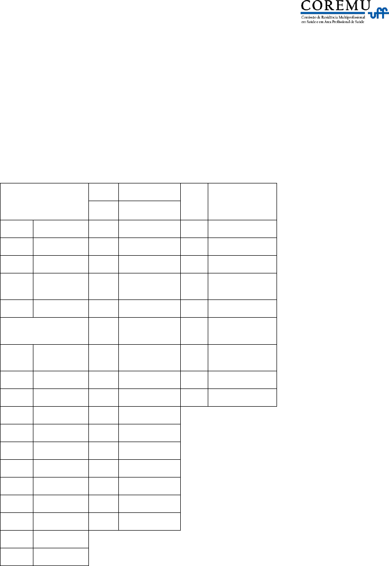 <p>UFF – UNIVERSIDADE FEDERAL FLUMINENSE</p><p>COREMU – COMISSÃO DE RESIDÊNCIAS MULTIPROFISSIONAL EM SAÚDE E EM ÁREA PROFISSIONAL</p><p>DE SAÚDE</p><p>HUAP – HOSPITAL UNIVERSITÁRIO ANTONIO PEDRO</p><p>GABARITO – 2024 – após recursos</p><p>RESIDÊNCIA EM FARMÁCIA HOSPITALAR</p><p>SISTEMA ÚNICO</p><p>DE SAÚDE (SUS)</p><p>18 A LÍNGUA</p><p>PORTUGUES</p><p>A 19 ANULADA</p><p>01 D 20 D 36 B</p><p>02 C 21 ANULADA 37 D</p><p>03 D 22 A 38 A</p><p>04 B 23 C LÍNGUA</p><p>ESPANHOLA</p><p>05 A 24 ANULADA 39 C</p><p>CONHECIMENTOS</p><p>ESPECÍFICOS</p><p>25 D 40 B</p><p>06 B 26 A LÍNGUA</p><p>INGLESA</p><p>07 A 27 B 39 B</p><p>08 C 28 C 40 C</p><p>09 D 29 C</p><p>10 C 30 A</p><p>11 A 31 C</p><p>12 ANULADA 32 ANULADA</p><p>13 D 33 B</p><p>14 ANULADA 34 C</p><p>15 B 35 A</p><p>16 A</p><p>17 ANULADA</p><p>Questões 12, 14, 17, 19, 21, 24 e 32 - ANULADAS</p><p>Prof. NÉLITON VENTURA</p><p>Coordenador Acadêmico da COSEAC</p>