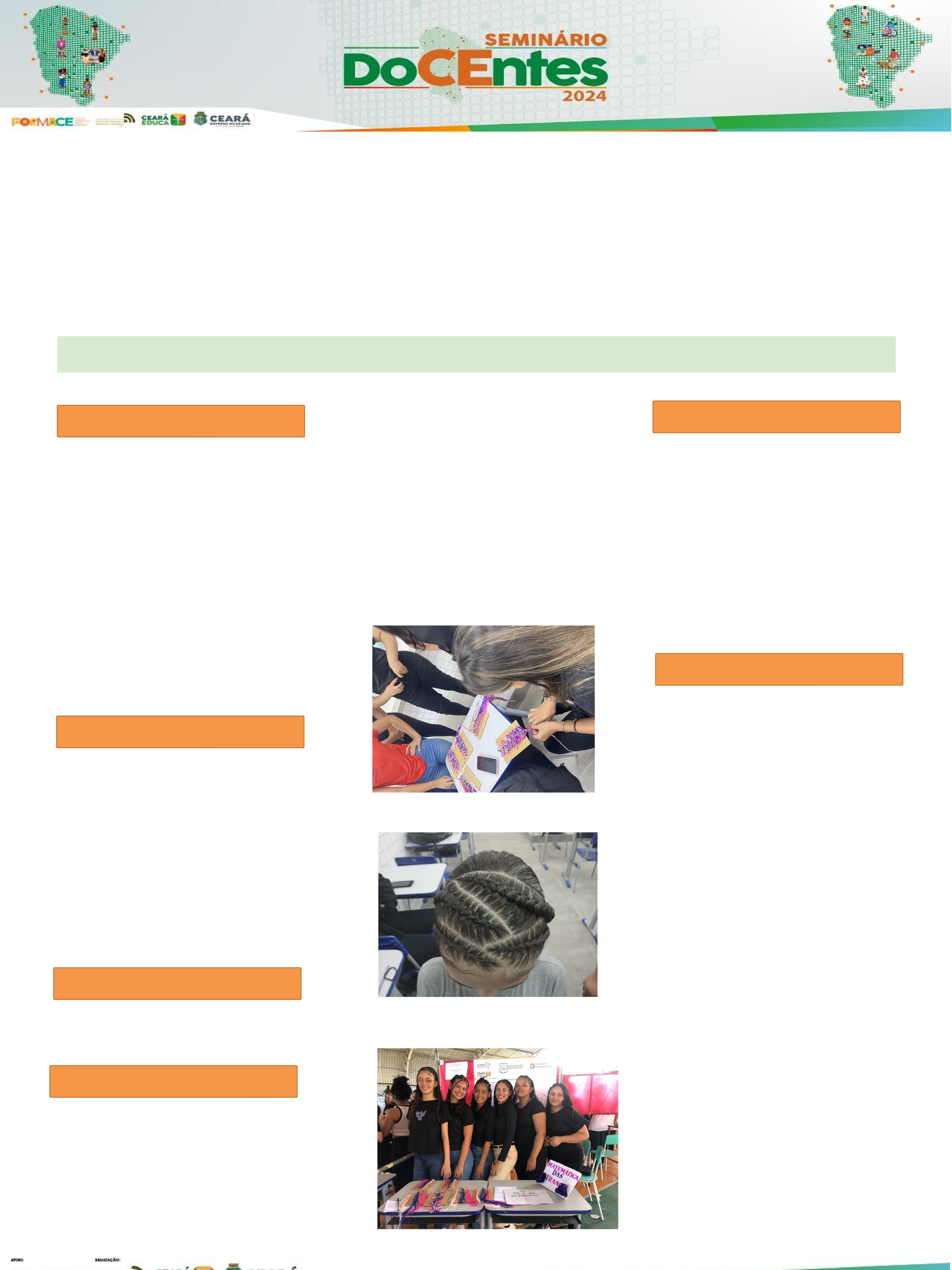 <p>Os feedbacks positivos nos mostraram que a oficina foi bem-sucedida no seu propósito de trazer um olhar matemático para um ato comum e cotidiano de beleza das mulheres que é o ato de trançar. Dado o grau de dificuldade em algumas técnicas , nem todas as alunas conseguiram realizar o trançado e pediram um tempo maior. Uma sugestão seria em um outro momento dividir a oficina em duas partes, trazendo mais detalhamento na criação e análise dos padrões. O combo teoria matemática acrescido da exploração cultural e prática manual tornou essa experiência muito rico e proveitosa.</p><p>LISANDRA MAYARA PAULINO DOS SANTOS¹</p><p>¹ Mestre em Matemática pela UFC. Professora de matemática na EEMTI Deputado Paulino Rocha.</p><p>E-mail: lisandramayaradossantos@yahoo.com.br.</p><p>PADRÕES GEOMÉTRICOS E ALGÉBRICOS EXISTENTES NAS TRANÇAS NAGÔ: UMA EXPERIÊNCIA NA EEMTI DEPUTADO PAULINO ROCHA</p><p>O Objetivo norteador deste estudo foi identificar a Álgebra e Geometria existente no processo de trançar cabelos na trança afro nagô. Inicialmente, foi descrito o processo de feitura da trança e a partir disso foi feito o estudo de sua construção, ou seja, a sua estruturação através de esquemas e observações para que pudéssemos relaciona-la a teoria matemática.</p><p>Trabalhar organização de elementos em matrizes, operações elementares, translação, conceitos de simetria , proporcionalidade, retas paralelas e transversais , diagonal de um quadrado e figuras geométricas são objetivos específicos deste trabalho.</p><p>Figura 3 – Apresentação Etapa Escolar.</p><p>A Lei 10.639/03 estabelece a obrigatoriedade no ensino da cultura e história afro-brasileira e africana nas escolas brasileiras com o intuito de promover a valorização da cultura, história e identidade afrodescendentes. As Diretrizes Curriculares Nacionais para a educação das Relações Étnico- Raciais e para o Ensino de História e Cultura Afro-Brasileira e Africana aborda a necessidade de projetos envolvendo o tema. Desta forma, esta oficina nos traz uma perspectiva inovadora ao relacionar conceitos matemáticos com a prática cultural da trança afro nagô.</p><p>BRASIL. Ministério da Educação. Lei 10.639, 2003. Brasília: Ministério da Educação, 2003. Disponível em: . Acesso em: 01 de ago. 2024.</p><p>D’AMBROSIO, U. Etnomatemática: arte ou técnica de explicar e conhecer. 5ª ed. Editora Ática, 1998.</p><p>D’AMBROSIO, U. Etnomatemática: elo entre tradições e modernidade. 6ª ed. Belo Horizonte: Autêntica Editora, 2019</p><p>Matrizes e tópicos de geometria são assuntos trabalhados no segundo ano do Ensino Médio dentro de nossa grade curricular. Dado o interesse de alunas que são trancistas da Escola de Ensino Médio Deputado Paulino Rocha unido ao conteúdo estudado, foi realizada uma oficina contextualizando a matemática existente nas tranças através de uma experiência prática e culturalmente rica. Como resultado, identificou-se a álgebra das matrizes com a utilização da divisão, adição e translação na construção de uma trança nagô. Além disso, conceitos de proporção, simetria , figuras geométricas e medição foram apresentados ao estudante durante a oficina. O problema norteador desta oficina foi: Existe matemática no processo de trançar cabelos? Qual a matemática existente nesse processo?</p><p>1. INTRODUÇÃO</p><p>2. OBJETIVO</p><p>3. METODOLOGIA</p><p>4. RESULTADOS</p><p>5. CONSIDERAÇÕES FINAIS</p><p>REFERÊNCIAS</p><p>Trata-se de um estudo qualitativo, bibliográfico e experimental através do olhar da EtnoMatemática.</p><p>Fonte: Arquivo Pessoal (2024).</p><p>Durante a oficina diversas foram as trocas de experiências dos participantes. Além de participar da criação das tranças, a prática permitiu que os alunos vissem a aplicação real dos conceitos matemáticos de padrões e simetria no processo de trançar. A conexão entre a matemática e a arte cultural traz um entendimento mais aprofundado sobre o tema, introduzindo os alunos a EtnoMatemática.</p><p>Colóquio Temático: As contribuições das áreas de conhecimento Matemática, Linguagens, Ciências Humanas e Ciências Exatas para a promoção da equidade na escola..</p><p>Figura 2 – Trança Tiara</p><p>Fonte: Arquivo Pessoal (2024).</p><p>Figura 1 – Atividade da oficina</p><p>Fonte: Arquivo Pessoal (2024).</p><p>image1.jpeg</p><p>image2.jpeg</p><p>image3.jpeg</p><p>image4.jpeg</p><p>image5.jpeg</p>