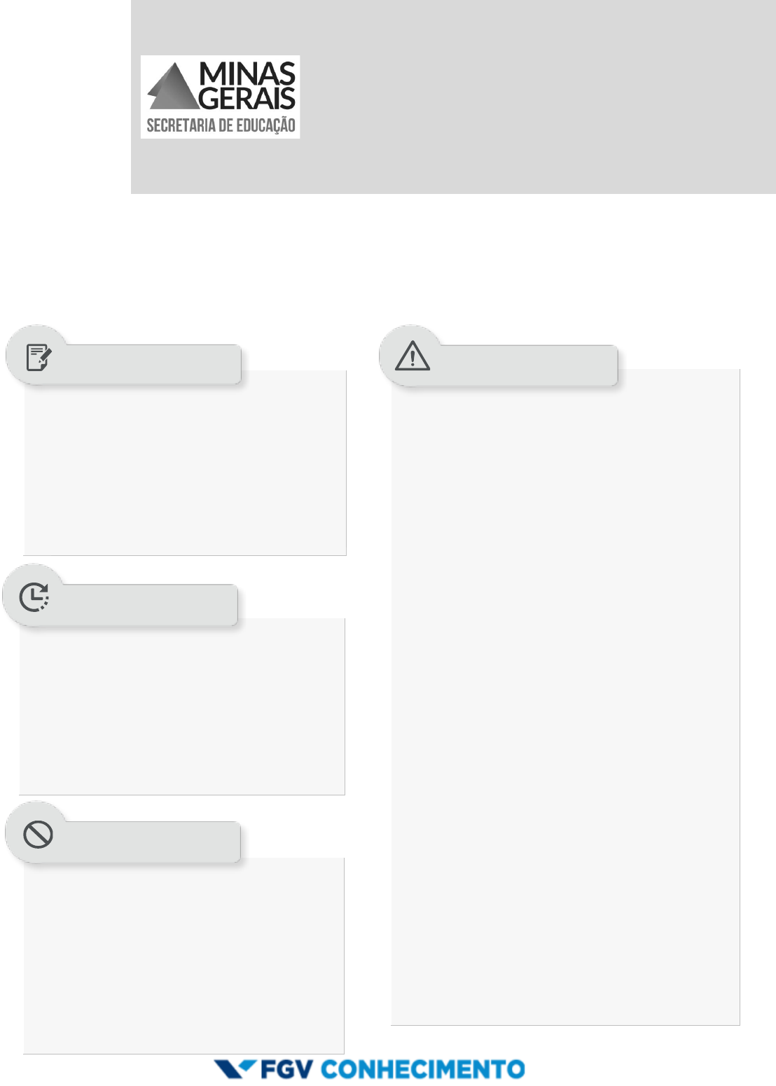 <p>SECRETARIA DE ESTADO DE PLANEJAMENTO E GESTÃO – SEPLAG</p><p>SECRETARIA DE ESTADO DE</p><p>EDUCAÇÃO DE MINAS GERAIS - SEE</p><p>22/10/2023 – MANHÃ</p><p>PROFESSOR DE EDUCAÇÃO BÁSICA (PEB)</p><p>LÍNGUA INGLESA</p><p>NÍVEL SUPERIOR TIPO 1 – CINZA</p><p> Além deste caderno contendo 50 (cinquenta)</p><p>questões objetivas e 1 (uma) redação, você</p><p>receberá do fiscal de prova o cartão de respostas e</p><p>a folha de textos definitivos;</p><p> As questões objetivas têm 4 (quatro) opções de</p><p>resposta (A, B, C e D) e somente uma delas está</p><p>correta;</p><p> A redação deverá ser redigida em, no mínimo,</p><p>15 (quinze) linhas e, no máximo, 30 (trinta) linhas.</p><p></p><p> Verifique se seu caderno de questões está completo,</p><p>sem repetição de questões ou falhas. Caso contrário,</p><p>notifique imediatamente o fiscal da sala, para que</p><p>sejam tomadas as devidas providências;</p><p> Confira seus dados pessoais, especialmente nome,</p><p>número de inscrição e documento de identidade e leia</p><p>atentamente as instruções para preencher o cartão de</p><p>respostas e a folha de textos definitivos;</p><p> Para o preenchimento do cartão de respostas e da folha</p><p>de textos definitivos, use somente caneta esferográfica,</p><p>fabricada em material transparente, com tinta preta ou</p><p>azul;</p><p> Assine seu nome apenas no(s) espaço(s) reservado(s) no</p><p>cartão de respostas e na folha de textos definitivos;</p><p> Confira seu cargo, cor e tipo do caderno de questões.</p><p>Caso tenha recebido caderno de cargo ou cor ou tipo</p><p>diferente do impresso em seu cartão de respostas e em</p><p>sua folha de textos definitivos, o fiscal deve ser</p><p>obrigatoriamente informado para o devido registro na</p><p>ata da sala;</p><p> Reserve tempo suficiente para o preenchimento do seu</p><p>cartão de respostas e da sua folha de textos definitivos.</p><p>O preenchimento é de sua responsabilidade e não será</p><p>permitida a troca do cartão de respostas e da folha de</p><p>textos definitivos em caso de erro cometido pelo</p><p>candidato;</p><p> Para fins de avaliação, serão levadas em consideração</p><p>apenas as marcações realizadas no cartão de respostas</p><p>e na folha de textos definitivos;</p><p> A FGV coletará as impressões digitais dos candidatos na</p><p>lista de presença;</p><p> Os candidatos serão submetidos ao sistema de</p><p>detecção de metais quando do ingresso e da saída de</p><p>sanitários durante a realização das provas.</p><p> Boa sorte!</p><p> Você dispõe de 4 (quatro) horas para a realização</p><p>da prova, já incluído o tempo para a marcação do</p><p>cartão de respostas e da folha de textos definitivos;</p><p> 2 (duas) horas após o início da prova, é possível</p><p>retirar-se da sala, sem levar o caderno de questões;</p><p> A partir dos 30 (trinta) minutos anteriores ao</p><p>término da prova é possível retirar-se da sala</p><p>levando o caderno de questões.</p><p> Qualquer tipo de comunicação entre os candidatos</p><p>durante a aplicação da prova;</p><p> Anotar informações relativas às respostas em</p><p>qualquer outro meio que não seja o caderno de</p><p>questões;</p><p> Levantar da cadeira sem autorização do fiscal de</p><p>sala;</p><p> Usar o sanitário ao término da prova, após deixar a</p><p>sala.</p><p>SUA PROVA</p><p>TEMPO</p><p>NÃO SERÁ PERMITIDO</p><p>INFORMAÇÕES GERAIS</p><p>SECRETARIA DE ESTADO DE PLANEJAMENTO E GESTÃO – SEPLAG MG FGV CONHECIMENTO</p><p>Professor de Educação Básica (PEB) - Língua Inglesa Tipo CINZA – Página 3</p><p>MÓDULO I - CONHECIMENTOS GERAIS</p><p>Língua Portuguesa</p><p>1</p><p>“Meses depois, casavase Moscoso com a pupila do defunto</p><p>patrão. Chamavase Genoveva e era uma raparigaça de seus vinte</p><p>e poucos anos, muito tola, de uma gordura desengraçada. Parecia</p><p>toda feita de almofadas; as carnes da cara tremiamlhe quando</p><p>ela andava, os olhos tinham uns tons amarelados e mortos; o</p><p>cabelo vivialhe pregado ao casco da cabeça com suor, por falta</p><p>de asseio. Era de uma brancura de sebo velho, falava muito</p><p>descansado e com um hálito azedo; as suas mãos papudas e</p><p>humidamente macias, davam em quem as tocasse a sensação</p><p>repulsiva que se experimentava ao pegar na barriga de uma</p><p>lagartixa”.</p><p>Sobre esse pequeno texto, assinale a afirmativa correta.</p><p>(A) Trata-se de um texto narrativo em que o narrador aborda as</p><p>diversas etapas de um casamento.</p><p>(B) Exemplifica um texto descritivo, cujo objetivo é a</p><p>apresentação física de uma personagem.</p><p>(C) Mostra um texto argumentativo, em que o argumentador</p><p>mostra as desvantagens de um mau casamento.</p><p>(D) Trata-se de um texto expositivo, em que o expositor</p><p>documenta um casamento por conveniência.</p><p>2</p><p>O adjetivo pode ser substituído por algumas outras palavras ou</p><p>estruturas de valor equivalente. Assinale a frase em que a</p><p>adjetivação é realizada por meio de uma preposição mais um</p><p>advérbio.</p><p>(A) Os bois ouviam de longe o grito dos boiadeiros.</p><p>(B) Todos os viajantes vinham de perto.</p><p>(C) As meninas se posicionaram de lado na carroça.</p><p>(D) As rodas de trás estavam com os pneus vazios.</p><p>3</p><p>As opções a seguir apresentam frases de Machado de Assis em</p><p>que os termos sublinhados pertencem à mesma família de</p><p>palavras, à exceção de uma. Assinale-a.</p><p>(A) Cada ministro gosta de deixar, entre outros trabalhos, um</p><p>que especifique seu nome no catálogo dos administradores.</p><p>(B) Não há espírito que resista diante da ideia de fazer um</p><p>testamento, e que, por mais simples que seja um homem, na</p><p>ocasião de assinar suas últimas disposições testamentárias,</p><p>torna-se de uma sisudez e uma lucidez admiráveis.</p><p>(C) Casamento diferido é casamento perdido, perda causa