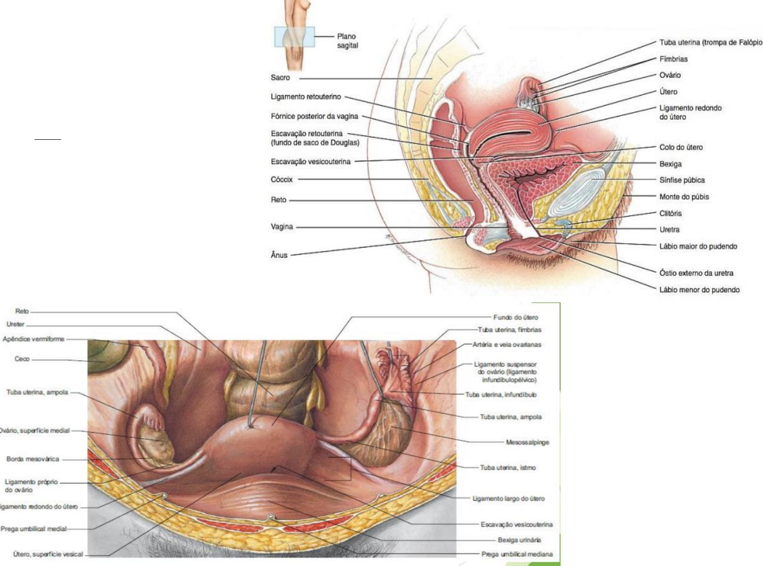 <p>LMF-Anatomia/ Módulo Saúde da Mulher</p><p>Útero</p><p>1) ÚTERO (Túnicas)</p><p>• Perimétrio</p><p>• Miométrio</p><p>• Endométrio</p><p>2) ÚTERO (Ligamentos)</p><p>• Ligamento redondo</p><p>• Ligamento útero-ovárico</p><p>3) ÚTERO (Divisões)</p><p>• Fundo do útero</p><p>• Corpo do útero e cavidade uterina</p><p>• Colo do útero e canal do colo do útero:</p><p>a) porção supravaginal e porção vaginal</p><p>4) TUBA UTERINA</p><p>5) OVÁRIO</p><p>6) BEXIGA URINÁRIA</p><p>7) RETO</p><p>8) VAGINA</p><p>1) ILÍACO</p><p>Ílio</p><p>• Asa</p><p>• Corpo</p><p>• Crista ilíaca</p><p>• Espinha ilíaca antero superior</p><p>• Espinha ilíaca antero inferior</p><p>• Espinha ilíaca póstero superior</p><p>• Espinha ilíaca póstero inferior</p><p>• Fossa ilíaca</p><p>Ísquio</p><p>• Corpo</p><p>• Ramo</p><p>• Tuberosidade isquiática</p><p>• Espinha isquiática</p><p>• Incisura isquiática maior e menor</p><p>• Forame obturado</p><p>Púbis</p><p>• Corpo</p><p>• Ramo superior</p><p>• Ramo inferior</p><p>2) SACRO</p><p>• Base do sacro</p><p>• Promontório sacral</p><p>• Ápice do sacro</p><p>• Canal sacral</p><p>• Asa do sacro</p><p>• Forames sacrais</p><p>3) ACETÁBULO</p><p>4) ARTICULAÇÕES:</p><p>• Articulação sacroilíaca</p><p>• Articulação sacrococcígea</p><p>• Sínfise púbica</p><p>5) CÓCCIX</p><p>6) DIAFRAGMA DA PELVE</p><p>Músculo isquiococcígeo</p><p>Músculo levantador do ânus</p><p>• Músculo puborretal</p><p>• Músculo pubococcígeo</p><p>• Músculo iliococcígeo</p><p>7) PERÍNEO</p><p>• Músculo Isquiocavernoso</p><p>• Músculo Bulboesponjoso</p><p>• Músculo Transverso Superficial do Períneo</p><p>• Músculo Transverso Profundo do Períneo</p><p>• Músculo Esfíncter Externo do Ânus</p><p>8) DIÂMETROS</p><p>• Conjugata Vera Anatômica</p><p>• Conjugata Vera Obstétrica</p><p>• Conjugata Diagonalis</p><p>• Diâmetro Bi-isquiático</p><p>• Diâmetro Bi-tuberoso</p><p>• Diâmetro Cóccix-subpúbico (Conjugata exitus)</p>