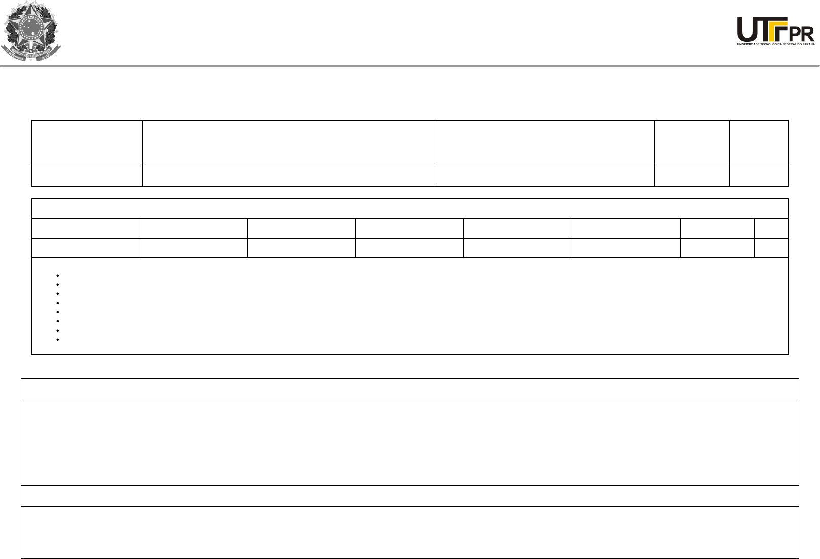 <p>Ministério da Educação</p><p>Universidade Tecnológica Federal do Paraná</p><p>Campus Dois Vizinhos</p><p>Informações da disciplina</p><p>por Conteúdo</p><p>Código Ofertado Disciplina/Unidade Curricular Modo de Avaliação</p><p>Modalidade</p><p>da</p><p>disciplina</p><p>Oferta</p><p>AA13ZO Análise De Alimentos Nota/Conceito E Frequência Presencial Semestral</p><p>Carga Horária</p><p>AT AP APS ANP APCC CHEAD CHE Total</p><p>2 2 0 0 0 0 0 60</p><p>AT: Atividades Teóricas (aulas semanais).</p><p>AP: Atividades Práticas (aulas semanais).</p><p>ANP: Atividades não presenciais (horas no período).</p><p>APS: Atividades Práticas Supervisionadas (aulas no período).</p><p>APCC: Atividades Práticas como Componente Curricular (aulas no período, esta carga horária está incluída em AP e AT).</p><p>CHEAD: Carga horária total em EAD.</p><p>CHE: Carga horária total extensionista.</p><p>Total: Carga horária total da disciplina em horas.</p><p>Objetivo</p><p>Determinar e interpretar as análises bromatológicas realizadas em alimentos destinados ao consumo animal e propor alimentos para compor dietas em</p><p>animais domésticos em função de sua qualidade nutricional e análises bromatológicas que levem em consideração a importância dos nutrientes para o</p><p>organismo.</p><p>Ementa</p><p>Conceito e importância da bromatologia. Estudo químico e nutricional dos constituintes fundamentais dos alimentos. Padronização, classificação e</p><p>armazenamento de alimentos. Propriedades principais dos nutrientes e sua importância para o organismo animal.</p><p>Conteúdo Programático</p><p>Ordem Ementa Conteúdo</p><p>1 Amostragem de alimentos. Realização de amostragem dos alimentos analisados.</p><p>2 Métodos de Avaliação de Alimentos. Método de Weende e Van Soest.</p><p>3 Matéria Seca e Umidade. Determinação da Matéria Seca dos Alimentos.</p><p>4 Cinzas ou matéria mineral. Determinação da Matéria Mineral e matéria orgânica.</p><p>5 Lipídeos. Análise de Extrato Etéreo e sua importância.</p><p>6 Proteína. Determinação do nitrogênio pelo método Kjedahl.</p><p>7 Carboidratos. Determinação da Fibra Bruta, FDN e FDA.</p><p>8 Extrato não nitrogenado. Cálculo do ENN, e seus constituintes.</p><p>9 Equações para Estimativas de qualidade. Determinação de valores de nutrientes através de</p><p>equações.</p><p>10 Minerais e Vitaminas. Técnicas de determinação de minerais e vitaminas.</p><p>11 Digestibilidade. Técnicas de Digestibilidade.</p><p>Bibliografia Básica</p><p>MACEDO, Gabriela Alves et al. Bioquímica experimental de alimentos. São Paulo, SP: Varela, 2005. 187 p. ISBN 85-85519-92-4.</p><p>ANDRIGUETTO, José Milton et al. Nutrição animal. 3 ed. São Paulo, SP: Nobel, 1983. v. ISBN 85-213-0170-7 (obra comp</p><p>SILVA, Dirceu Jorge da; QUEIROZ, Augusto César de. Análise de alimentos: métodos químicos e biológicos. 3. ed. Viçosa: UFV- Universidade Federal de Viçosa, c2004. 235 p. ISBN 8572691057.</p><p>Bibliografia Complementar</p><p>BOBBIO, Paulo A.; BOBBIO, Florinda Orsatti. Química do processamento de alimentos. 2. ed. São Paulo, SP: Varela, 1992. 151 p.</p><p>HARRIS, Daniel C. Análise química quantitativa. 8. ed. Rio de Janeiro, RJ: LTC, 2012. xvii, 898 p. ISBN 9788521620426.</p><p>NELSON, David L.; COX, Michael M.; LEHNINGER, Albert L. Princípios de bioquímica de Lehninger. 5. ed. Porto Alegre, RS: Artmed, 2011. xxx, 1273 p. ISBN 9788536324180.</p><p>BIOTECNOLOGIA nutricional na indústria de alimentação animal: anais do simpósio brasileiro Alltech. Curitiba, PR: Alltech do Brasil, 2005. 120 p.</p><p>ORDOÑEZ, Juan A. Tecnologia de alimentos. Vol.2. Ed. Artmed, Porto Alegre, 2005. 279 p.</p><p># Resumo da Alteração Edição Data Aprovação Data</p><p>1 Inserção no sistema Viviane Cavaler 11/09/2023 Fernando Kuss 07/12/2023</p><p>14/12/2023 10:30</p>