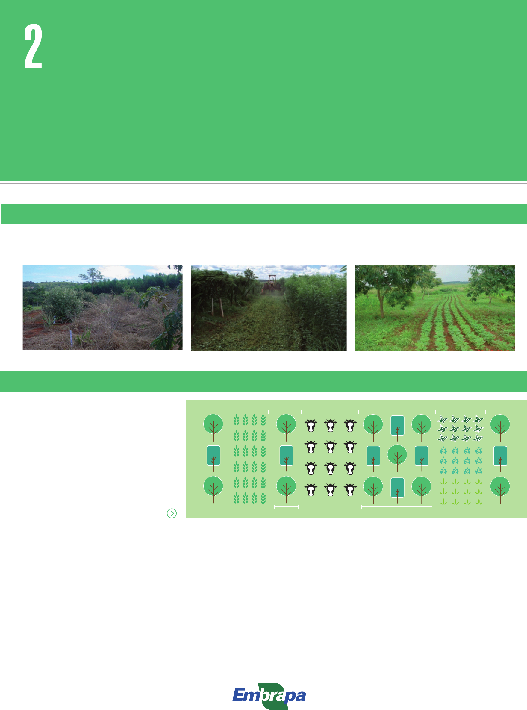 <p>O que são Sistemas Agroflorestais (SAF)?</p><p>Sistemas Agroflorestais</p><p>Na Recuperação de Áreas Degradadas</p><p>2</p><p>São sistemas tradicionais que imitam</p><p>a natureza, associando em um mesmo</p><p>espaço o plantio de árvores (frutíferas</p><p>ou não) com lavouras anuais, hortaliças</p><p>e até mesmo a criação de animais.</p><p>Não existe um modelo para implatação</p><p>desse sistema, tudo vai depender dos</p><p>interesses de cada um.</p><p>Lavouras Anuais Hortaliças e Outros CultivaresÁrea de Criação de Animais</p><p>Plantio em FaixasPlantio em Linha</p><p>Que passos seguir para utilizar o SAF na recuperação de áreas?</p><p>Escolher e plantar, de preferência,</p><p>espécies arbóreas nativas;</p><p>Utilizar adubação verde com dife-</p><p>rentes espécies de plantas;</p><p>Isolar a área a ser recuperada até</p><p>que as árvores cresçam.1 2 3</p><p>EXEMPLO</p><p>Maiores informações</p><p>www.embrapa.br/arroz-e-feijao</p><p>(62) 3533-2110</p><p>Embrapa Arroz e Feijão</p><p>Rodovia GO-462 km 12, Santo Antônio de Goiás, GO, 75375-000</p><p>Programação visual: Núcleo de Comunicação Organizacional — NCO. Fotos: Sebastião Araújo e Agostinho Didonet. Embrapa Arroz e Feijão. Outubro/2014. 3000 Exemplares. Responsabilidade técnica: Agostinho Didonet.</p><p>Como escolher os tipos de árvores para plantar?</p><p>Qual a importância de semear adubo verde?</p><p>Quando semear o adubo verde em um SAF?</p><p>Porque isolar a área a ser recuperada?</p><p>Qual o espaçamento ideal entre as árvores?</p><p>Para evitar que o gado machuque as mudas até que as elas cresçam o suficiente para se estabelecerem.</p><p>A escolha vai depender de suas necessidades:</p><p>2º. Após a colheita dos cultivos anuais.1º. Antes da semeadura dos cultivos anuais.</p><p>No caso de recuperação de nascentes, não é recomendado plantar grãos ou pastagem nos espaços por entre as árvores, pois</p><p>isso prejudicaria a recuperação da nascente.</p><p>ATENÇÃO</p><p>Aumenta o supri-</p><p>mento de maté-</p><p>ria orgânica</p><p>Promove a</p><p>reciclagem</p><p>dos nutrientes</p><p>Melhora a fertili-</p><p>dade do solo</p><p>Apenas para recuperação:</p><p>Distribuir as mudas na área da forma mais</p><p>próxima possível à observada na natureza.</p><p>Para recuperação + plantio de</p><p>grãos:</p><p>Distribuir as árvores em linhas espaçadas o</p><p>suficiente para que, quando estiverem adultas,</p><p>o sombreamento não seja excessivo.</p><p>Produção de</p><p>Lenha e Carvão</p><p>Produção de</p><p>ForragemFins Medicinais</p><p>Produção de</p><p>Frutos Nativos</p><p>OPÇÃO 1</p><p>Composição em "faixas": várias linhas de</p><p>árvores (mais de duas linhas) com espaço</p><p>para cultivo de grãos.</p><p>OPÇÃO 3</p><p>Composição de cultivos reproduzindo os</p><p>modelos de “quintais” em volta das casas</p><p>rurais.</p><p>OPÇÃO 2</p><p>Composição em "linhas": quando se planta</p><p>uma única fileira de árvores e nas "entreli-</p><p>nhas" plantio de grão.</p><p>Tanto as linhas quanto as faixas devem ser</p><p>plantadas em curvas de nível ou terraços.</p><p>Para declividades maiores</p><p>recomenda-se o plantio</p><p>em faixas, e para</p><p>declividades menores, o</p><p>plantio em linhas.</p><p>Árvores plantadas com espaça-</p><p>mentos maiores, permitem o</p><p>plantio de culturas anuais por um</p><p>tempo maior.</p><p>Tanto no sistema de linhas quanto de faixas,</p><p>deve-se tomar cuidado para que as árvores</p><p>não impessam a passagem das máquinas.</p><p>Auxilia no con-</p><p>trole de plantas</p><p>invasoras</p><p>Equilíbrio</p><p>ecológico</p><p>local</p><p>Acelera o proces-</p><p>so de recuperação</p><p>da área degradada</p><p>Nos dois casos, o adubo verde deve ser roçado no início do florescimento.</p><p>OBSERVAÇÃO</p><p>Dê preferência a espécies nativas do local e priorize a diversidade.</p><p>OBSERVAÇÃO</p><p>Espaço entre árvores</p><p>En</p><p>tre</p><p>lin</p><p>ha</p><p>s o</p><p>u</p><p>En</p><p>tre</p><p>fa</p><p>ixa</p><p>s</p>