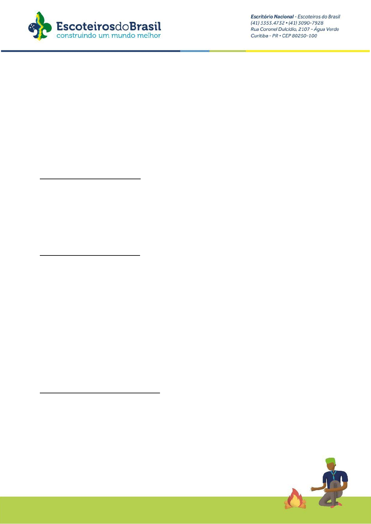 <p>MANUAL DO ESCOTISTA – RAMO LOBINHO</p><p>Errata - Nota de Atualização.</p><p>Em atendimento ao novo Projeto Educativo dos Escoteiros do Brasil, bem como a</p><p>Resolução CAN 08/2021 – que altera as Regras 001, 002, 003 e 010 do P.O.R.</p><p>(Princípios, Organização e Regras) indicamos que os textos das páginas 20 a 28,</p><p>83 a 85 e 105 a 108 foram atualizados conforme o que se apresenta abaixo.</p><p>Demais referências a estes pontos, encontradas no manual, também devem seguir</p><p>as terminologias e conceitos a seguir:</p><p>PROPÓSITO DO ESCOTISMO</p><p>Nosso propósito é contribuir para que crianças, adolescentes e jovens assumam</p><p>seu próprio desenvolvimento, para que alcancem seu pleno potencial físico,</p><p>intelectual, afetivo, social, espiritual e do caráter, como indivíduos, como cidadãs e</p><p>cidadãos responsáveis e membros ativos de suas comunidades local, nacional e</p><p>internacional.</p><p>PRINCÍPIOS DO ESCOTISMO</p><p>Os princípios do Escotismo constituem um marco de referência ética que</p><p>representa o ideal escoteiro, que orienta a conduta de seus membros e define um</p><p>estilo de vida baseado nos valores expressos na Promessa e na Lei Escoteira.</p><p>Reconhecidos universalmente, os valores escoteiros inspiram ações construtivas e</p><p>estão implícitos nos seguintes princípios:</p><p>• Compromisso com o aprimoramento da sua espiritualidade, seja ela inspirada em</p><p>Deus ou em outras convicções;</p><p>• Compromisso de cooperação com os outros e de respeito com a natureza, para a</p><p>construção de ummundo melhor; e</p><p>• Compromisso consigo mesmo.</p><p>MÉTODO EDUCATIVO ESCOTEIRO</p><p>O Método Educativo Escoteiro é a ferramenta que utilizamos para criar as</p><p>condições educativas necessárias para que os jovens sejam os protagonistas do seu</p><p>próprio desenvolvimento. É um sistema de autoeducação progressiva, de</p><p>empoderamento e de aprendizagem cooperativa, baseado nas interações de</p><p>elementos igualmente importantes, que atuam de maneira articulada como um</p><p>sistema coeso:</p><p>1. Promessa e Lei Escoteira;</p><p>2. Aprender fazendo;</p><p>3. Progressão pessoal;</p><p>4. Sistema de Equipes;</p><p>5. Suporte do adulto;</p><p>6. Marco Simbólico;</p><p>7. Natureza;</p><p>8. Envolvimento Comunitário.</p><p>A PESSOA QUE QUEREMOS OFERECER A SOCIEDADE – PROJETO EDUCATIVO</p><p>Desejamos que aquela e aquele que vivenciou a prática escoteira, ao completar seu</p><p>tempo como membro juvenil, tenha se desenvolvido plenamente e adquirido</p><p>competências que o façam ser uma pessoa:</p><p>● Com um código de valores estabelecido em princípios que expressem uma</p><p>relação positiva com a espiritualidade, com os demais e consigo. Que tenha</p><p>ações coerentes com seus valores, seja leal e digna de confiança.</p><p>● Com autonomia desenvolvida, senso crítico e empreendedor, capaz de</p><p>tomar suas próprias decisões e traçar projeto de vida que inclua seu</p><p>crescimento pessoal, trabalho honrado e relações positivas com os outros.</p><p>● Alegre e capaz de partilhar alegria, solidária aos seus semelhantes, leal ao</p><p>seu povo e construtora da paz em harmonia com todos os povos.</p><p>● Líder a serviço do próximo. Integrada ao desenvolvimento da sociedade,</p><p>capaz de acatar leis, de participar e cooperar nas ações de sua comunidade.</p><p>Consciente de seus direitos, sem se descuidar de seus deveres.</p><p>● Responsável com sua saúde, tanto física como mental, que busca manter</p><p>uma vida saudável e equilibrada. Que valoriza iniciativas de higiene coletiva,</p><p>como práticas que fortalecem o convívio e o bem-estar das pessoas.</p><p>● Forte de caráter, criativa, esperançosa e solidária. Capaz de fazer análise</p><p>crítica, compreender e relacionar-se com a realidade e que tenha</p><p>estabelecida a sua identidade.</p><p>● Amante da natureza, de forma ativa e que busque para si e para a sociedade</p><p>um mundo onde o desenvolvimento seja sustentável e a natureza</p><p>preservada.</p><p>● Flexível, capaz de aceitar mudanças, articular diferentes ideias e de se</p><p>adaptar a novos contextos e desafios.</p><p>● Com princípios espirituais expressados em sua conduta, convivendo de</p><p>modo harmônico e respeitoso com pessoas e convicções diferentes.</p><p>● Inclusiva, capaz de respeitar outros paradigmas, inclusive em virtude de</p><p>gênero, etnia, religião, língua e cultura.</p><p>● Capaz de estabelecer seu projeto de vida, fazer escolhas, encontrar seu</p><p>próprio caminho e ser feliz.</p><p>MAIS INFORMAÇÕES</p><p>Sobre atualização dos Fundamentos, seu conceito e textos completos, podem ser</p><p>encontradas:</p><p>Projeto Educativo dos Escoteiros do Brasil – Disponível em www.escoteiros.org.br</p><p>Sempre Alerta para Servir!</p><p>Diretoria Executiva Nacional</p><p>Escoteiros do Brasil</p>