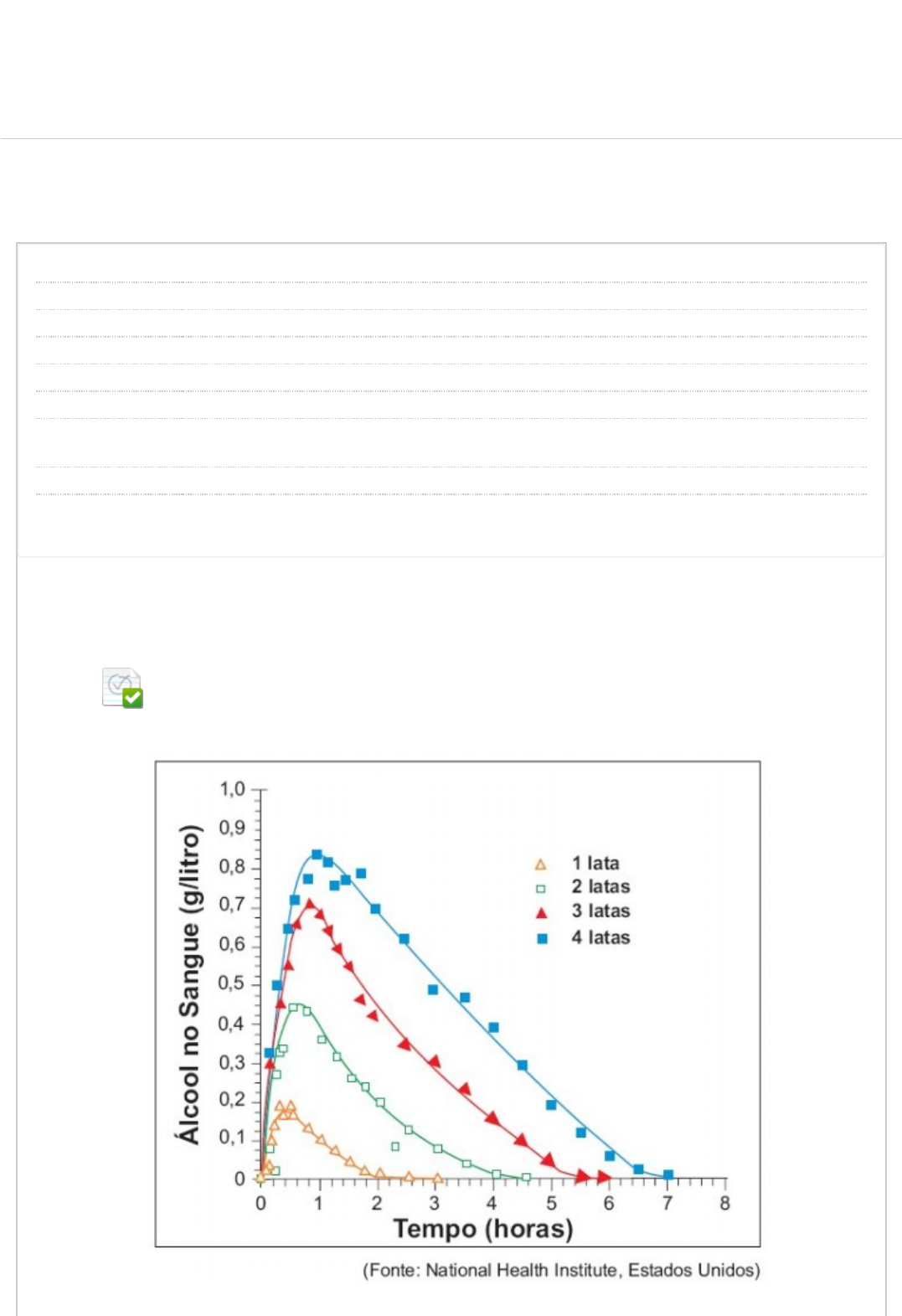 <p>Revisar envio do teste: QUESTIONÁRIO UNIDADE I</p><p>ESTUDOS DISCIPLINARES I 6593-15_SEI_RC_0123_R_20231 CONTEÚDO</p><p>Usuário cristiano.santos74 @aluno.unip.br</p><p>Curso ESTUDOS DISCIPLINARES I</p><p>Teste QUESTIONÁRIO UNIDADE I</p><p>Iniciado 21/03/23 19:29</p><p>Enviado 21/03/23 21:53</p><p>Status Completada</p><p>Resultado da</p><p>tentativa</p><p>1 em 5 pontos</p><p>Tempo decorrido 2 horas, 23 minutos</p><p>Resultados exibidos Todas as respostas, Respostas enviadas, Respostas corretas, Comentários, Perguntas</p><p>respondidas incorretamente</p><p>Pergunta 1</p><p>(Enade 2006) A legislação de trânsito brasileira considera que o condutor de um veículo está</p><p>dirigindo alcoolizado quando o teor alcoólico de seu sangue excede 0,6 gramas de álcool por</p><p>litro de sangue. O gráfico mostra o processo de absorção e eliminação do álcool quando um</p><p>indivíduo bebe, em um curto espaço de tempo, de 1 a 4 latas de cerveja.</p><p>Considere as afirmativas a seguir:</p><p>UNIP EAD BIBLIOTECAS MURAL DO ALUNO TUTORIAISCONTEÚDOS ACADÊMICOS</p><p>0,5 em 0,5 pontos</p><p>http://company.blackboard.com/</p><p>https://ava.ead.unip.br/webapps/blackboard/execute/courseMain?course_id=_282524_1</p><p>https://ava.ead.unip.br/webapps/blackboard/content/listContent.jsp?course_id=_282524_1&content_id=_3348930_1&mode=reset</p><p>https://ava.ead.unip.br/webapps/portal/execute/tabs/tabAction?tab_tab_group_id=_10_1</p><p>https://ava.ead.unip.br/webapps/portal/execute/tabs/tabAction?tab_tab_group_id=_27_1</p><p>https://ava.ead.unip.br/webapps/portal/execute/tabs/tabAction?tab_tab_group_id=_47_1</p><p>https://ava.ead.unip.br/webapps/portal/execute/tabs/tabAction?tab_tab_group_id=_29_1</p><p>https://ava.ead.unip.br/webapps/portal/execute/tabs/tabAction?tab_tab_group_id=_25_1</p><p>https://ava.ead.unip.br/webapps/login/?action=logout</p><p>Resposta Selecionada: d.</p><p>Respostas: a.</p><p>b.</p><p>c.</p><p>d.</p><p>e.</p><p>Feedback da</p><p>resposta:</p><p>I - O álcool é absorvido pelo organismo muito mais lentamente do que é eliminado.</p><p>II - Uma pessoa que vá dirigir imediatamente após a ingestão da bebida pode consumir, no</p><p>máximo, duas latas de cerveja.</p><p>III - Se uma pessoa toma rapidamente quatro latas de cerveja, o álcool contido na bebida só é</p><p>completamente eliminado após se passarem cerca de 7 horas da ingestão.</p><p>Está(ão) correta(s) a(s) afirmativa(s):</p><p>II e III, apenas.</p><p>II, apenas.</p><p>I e II, apenas.</p><p>I e III, apenas.</p><p>II e III, apenas.</p><p>I, II e III.</p><p>Resposta: D</p><p>Pergunta 2</p><p>Resposta Selecionada: e.</p><p>Respostas: a.</p><p>b.</p><p>c.</p><p>d.</p><p>(Enade 2006) A tabela mostra como se distribui o tipo de ocupação dos jovens de 16 a 24</p><p>anos que trabalham em 5 regiões metropolitanas e no Distrito Federal.</p><p>Das regiões estudadas, aquela que apresenta o maior percentual de jovens sem carteira</p><p>assinada, dentre os jovens que são assalariados do setor privado, é:</p><p>São Paulo.</p><p>Belo Horizonte.</p><p>Distrito Federal.</p><p>Recife.</p><p>Salvador.</p><p>0 em 0,5 pontos</p><p>e. São Paulo.</p><p>Pergunta 3</p><p>Resposta Selecionada: a.</p><p>Respostas: a.</p><p>b.</p><p>c.</p><p>d.</p><p>e.</p><p>(Enade 2007) Os países em desenvolvimento fazem grandes esforços para promover a</p><p>inclusão digital, ou seja, o acesso, por parte de seus cidadãos, às tecnologias da era da</p><p>informação. Um dos indicadores empregados é o número de hosts, isto é, o número de</p><p>computadores que estão conectados à internet. A tabela e o grá�co mostram a evolução do</p><p>número de hosts nos três países que lideram o setor na América do Sul.</p><p>Dos três países, os que apresentaram, respectivamente, o maior e o menor crescimento</p><p>percentual no número de hosts, no período 2003−2007, foram:</p><p>Brasil e Colômbia.</p><p>Brasil e Colômbia.</p><p>Brasil e Argentina.</p><p>Argentina e Brasil.</p><p>Colômbia e Brasil.</p><p>Colômbia e Argentina.</p><p>Pergunta 4</p><p>0 em 0,5 pontos</p><p>0 em 0,5 pontos</p><p>Resposta</p><p>Selecionada:</p><p>e.</p><p>Respostas: a.</p><p>b.</p><p>c.</p><p>d.</p><p>e.</p><p>(Enem 2008) O gráfico mostra a área desmatada da Amazônia, em km 2 , a cada ano, de 1988</p><p>a 2008.</p><p>As informações do gráfico indicam que:</p><p>O total de área desmatada em 1992, 1993 e 1994 é maior que 60.000</p><p>km 2 .</p><p>O maior desmatamento ocorreu em 2004.</p><p>A área desmatada foi menor em 1997 que em 2007.</p><p>A área desmatada a cada ano manteve-se constante entre 1998 e</p><p>2001.</p><p>A área desmatada por ano foi maior entre 1994 e 1995 que entre</p><p>1997 e 1998.</p><p>O total de área desmatada em 1992, 1993 e 1994 é maior que 60.000</p><p>km 2 .</p><p>Pergunta 5</p><p>A �gura a seguir, extraída da Revista Veja, edição de 1º de abril de 2009, ilustra os valores,</p><p>em trilhões de dólares, do PIB (Produto Interno Bruto) mundial e dos ativos �nanceiros</p><p>(ações, depósitos bancários e títulos públicos e privados) nos anos de 1980, 2006 e 2008.</p><p>0 em 0,5 pontos</p><p>Resposta</p><p>Selecionada:</p><p>b.</p><p>Respostas: a.</p><p>b.</p><p>c.</p><p>d.</p><p>e.</p><p>Fonte: Revista Veja, edição de 1º de abril de 2009.</p><p>A partir das informações apresentadas na �gura, assinale a alternativa correta.</p><p>Considerando apenas os anos de 1980 e de 2008, veri�ca-se que os</p><p>ativos �nanceiros cresceram à taxa de 10%, ou seja, aumentaram de 12</p><p>trilhões de dólares para 120 trilhões de dólares.</p><p>Considerando apenas os anos de 1980 e de 2008, veri�ca-se que os</p><p>ativos �nanceiros cresceram à taxa de 100%, ou seja, aumentaram de 12</p><p>trilhões de dólares para 120 trilhões de dólares.</p><p>Considerando apenas os anos de 1980 e de 2008, veri�ca-se que os</p><p>ativos �nanceiros cresceram à taxa de 10%, ou seja, aumentaram de 12</p><p>