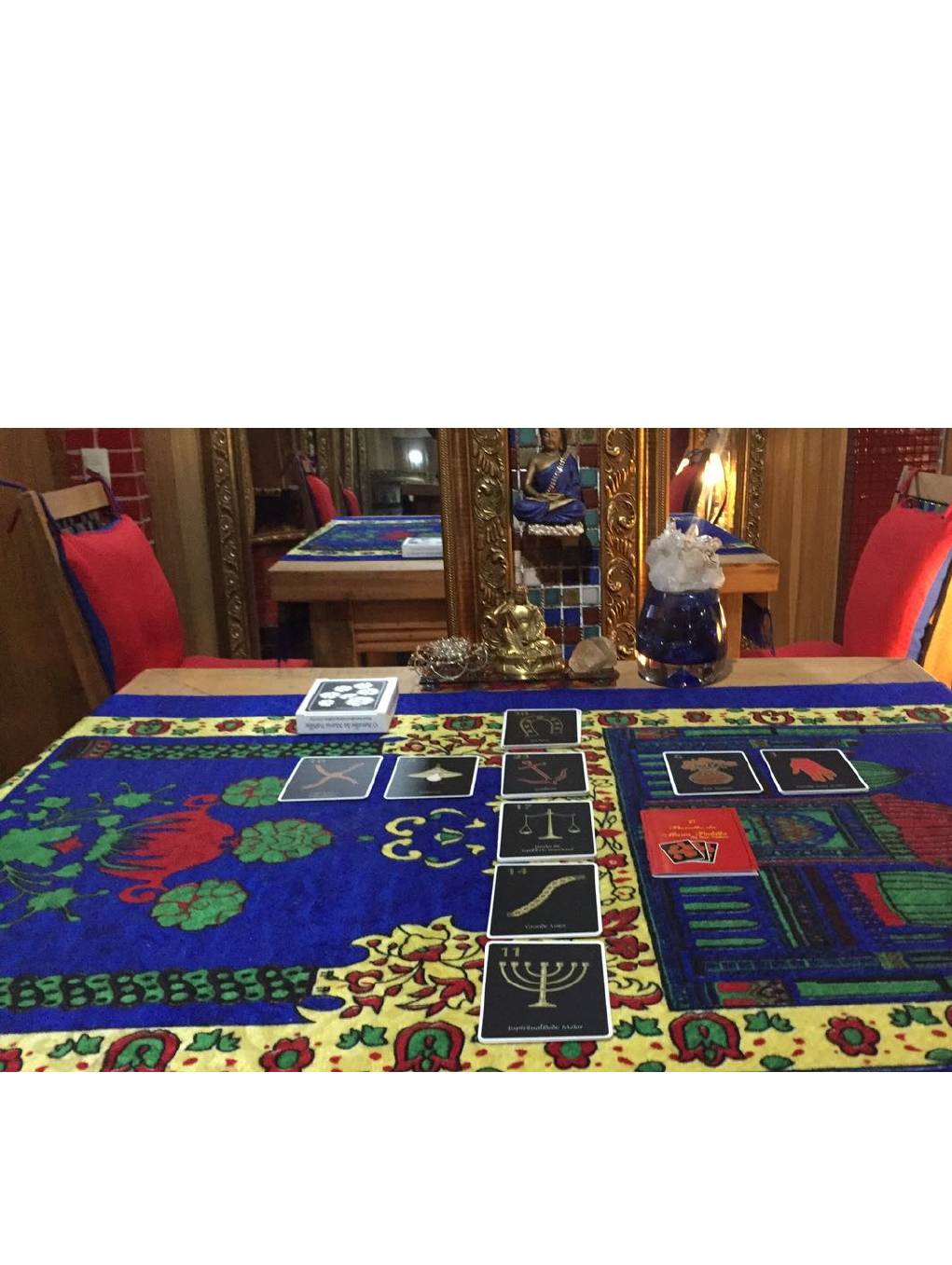 <p>NOVO LIVRETO EXPLICATIVO</p><p>Livreto Explicativo do</p><p>Baralho da Maria Padilha by Eliane Arthman</p><p>O Significado das cartas</p><p>Vamos, agora, fazer essa viagem em torno do significado das cartas e sobre</p><p>as muitas probabilidades de caídas de jogo.</p><p>Gostaria, também, de frisar que, na abertura do jogo, não devemos perguntar</p><p>ao consulente o que o levou a consultar o Oráculo. Devemos pedir que</p><p>embaralhe, corte em dois, torne a juntar as cartas e que faça a Cruz Mística,</p><p>que são nove montes de cartas: cinco verticais e quatro horizontais. Vocês</p><p>poderão ver claramente os motivos que levaram o consulente até vocês!</p><p>Cruz Mística</p><p>[1 ]</p><p>[6 ] [7 ] [2 ] [8 ] [9 ]</p><p>[3 ]</p><p>[4 ]</p><p>[5 ]</p><p>Outro detalhe importante é de que as mesmas cartas tem significados</p><p>variados quando lidas em sequências diferentes. Na horizontal elas tem um</p><p>valor, na diagonal outro, assim como na vertical podem ser que tenham um</p><p>outro significado e no momento em que se cruzam com outras cartas na</p><p>finalização do jogo, elas podem ter, ainda, outro significado. As figuras 'O</p><p>Consulente', 'A Consulente', 'Pessoa Intermediária Homem' e 'Pessoa</p><p>Intermediária Mulher', também terão essa mesma variação. Exemplo: uma</p><p>carta que na horizontal tratava-se da mãe do consulente, na vertical pode ser</p><p>sua amante, na diagonal sua Pomba-Gira e na hora de cruzar, sua patroa, etc.</p><p>É muito importante que se observe as cartas circundantes de cada</p><p>jogada, sem se prender a signicados.</p><p>Como deitar as cartas do Baralho da Maria Padilha</p><p>01 02 03 04</p><p>05</p><p>06 07 08 09</p><p>10 11 12 13 14 15 16 17 18</p><p>19 20 21 22 23 24 25 26 27</p><p>28.</p><p>29 30 31 32 33 34 35</p><p>36</p><p>Embaralhe bem as cartas mentalizando a pergunta ou o seu propósito para a</p><p>consulta. Coloque sua mão por sobre todo o baralho arrumado em um só</p><p>grupo, corte em dois ou em três partes, junte tudo e, com todo o baralho</p><p>numa das mãos, vá deixando cair um monte de cartas (cuidado para não</p><p>deixar cair muitas cartas, para que não falte para completar os últimos</p><p>montes de cartas), em forma de cruz, com cinco montes de cartas na vertical</p><p>e quatro na horizontal, como se fosse uma cruz. Faça essa cruz de cima para</p><p>baixo, com cinco cartas no sentido vertical e quatro no horizontal.</p><p>Caso esteja deitando cartas para um consulente, peça que ele faça a cruz de</p><p>frente para ele.</p><p>As cartas da vertical são de leitura livre, conforme a posição e o significado</p><p>de cada uma.</p><p>As Cartas da Cruz Mística do lado esquerdo do consulente refere-se a</p><p>assuntos familiares, pessoais e amorosos.</p><p>O lado direito refere-se a assuntos de trabalho, de ordem financeira ou a</p><p>assuntos de fora de casa.</p><p>Com a prática constante a leitura fluirá cada vez melhor.</p><p>Deve-se fazer essa cruz três vezes antes da abertura do jogo.</p><p>Na Abertura do Jogo, deve-se dispor as cartas em quatro fileiras de nove</p><p>cartas:</p><p>Significado das cartas</p><p>Carta 01 – Os Cristais</p><p>Virtudes, Sabedoria.</p><p>Dependendo das cartas ao redor, pode significar a intercessão de um bom</p><p>conselheiro, um guia ou um Mestre em favor do consulente.</p><p>Essa é uma Carta que emite luz e positividade. Ela representa um mago ou</p><p>um Mestre Espiritual no qual o(a) Consulente crê. Significa, também, uma</p><p>Estrela que ilumina todo o jogo. Pode representar, também, a coroa de um</p><p>Orixá, quando ao lado das 'Cartas' 14, 25, 26, 27.</p><p>Ela transforma o negativo em bons augúrios.</p><p>Caso essa carta inicie a Cruz Mística, significa que o (a) Consulente possui</p><p>méritos espirituais, que o auxiliarão em sua jornada de vida.</p><p>Carta 02 - O Lápis</p><p>Notícias breves. Esta carta é neutra, coadjuvante, que além de pontuar</p><p>"Tempo", indica fatos que estão para acontecer em breve período de tempo.</p><p>Ela não se referencia somente ao cotidiano e aos fatos que estão ocorrendo,</p><p>mas, também, sinaliza, ao lado das que a circundam, o que pode estar para</p><p>acontecer. É o jogo da vida que nos faz ter o cuidado de pensar bem antes de</p><p>fazer qualquer movimento, pois, lá na frente, esse movimento pode fazer</p><p>toda a diferença. Caso ela inicie a Cruz Mística, indica fatos que ocorreram a</p><p>pouco tempo ou aqueles que não tardarão a acontecer. Por ser uma carta</p><p>coadjuvante, ela depende de outras cartas para ter seu verdadeiro</p><p>significado devidamente esclarecido e interpretado</p><p>Carta 03 – A Luva</p><p>Passado. Amor perdido.</p><p>Esta é uma carta neutra, quase romântica, que remete aos sonhos e</p><p>memórias do passado. Um amor mal resolvido, uma frustração pessoal, a</p><p>insatisfação com a rotina de um relacionamento monótono, uma profissão</p><p>mal escolhida... Ela mostra que é preciso trabalhar melhor a aceitação</p><p>daquilo que a vida nos dá. Todos os caminhos tem volta; todos os erros</p><p>podem ser contornados e os atos cometidos no furor das emoções, podem</p><p>ser perdoados e reanalisados.</p><p>É preciso dar importância ao que ficou pra trás de forma frustrante e abrupta.</p><p>E trabalhar essa aceitação pode trazer leveza e tranquilidade ao nosso dia a</p><p>dia. Quando essa carta inicia a Cruz Mística, significa que o sentimento e as</p><p>emoções que permeiam o(a) Consulente precisam ser revistos. E isso pode</p><p>envolver família, trabalho, sonhos profissionais não realizados ou até mesmo</p><p>um fato amoroso que não teve um final satisfatório.</p><p>É preciso observar as cartas que a circundam para analisar melhor a jogada.</p><p>Carta 04 – A Vela</p><p>Magia, Feitiço</p><p>A Vela é uma carta que aconselha atenção, quando numa jogada ela sair</p><p>sozinha.</p><p>Apesar de tensa, emite neutralidade e pontua Es