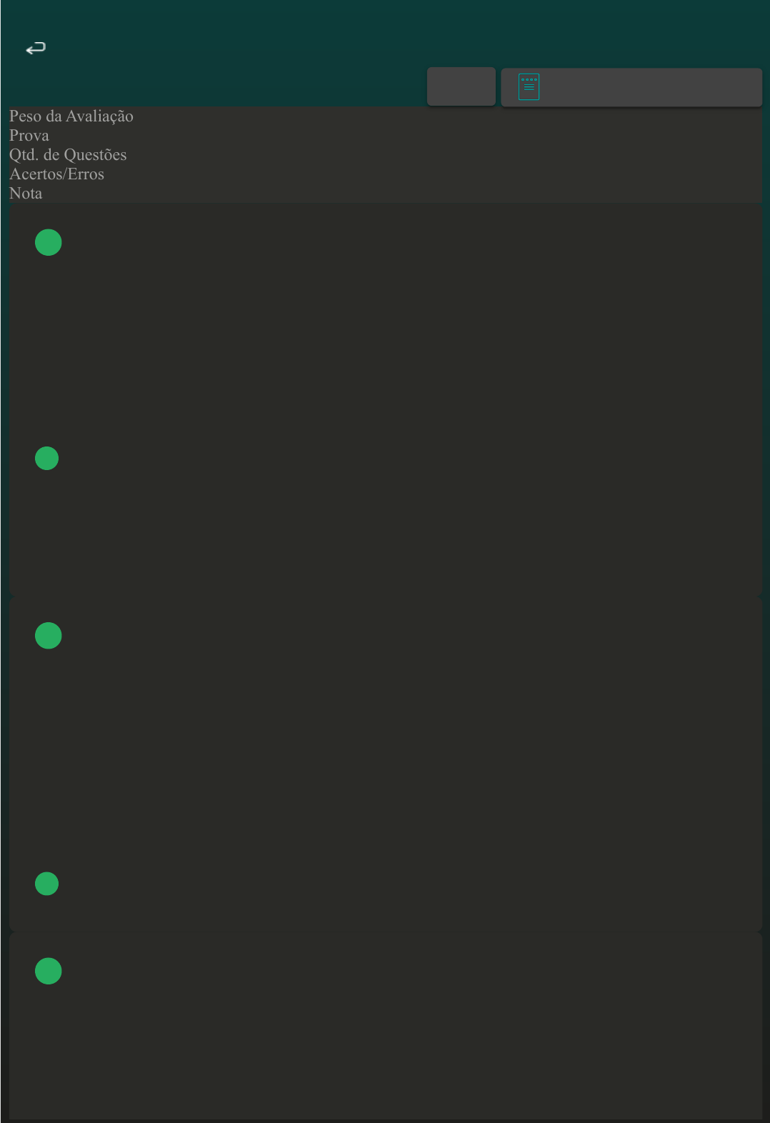 <p>Prova Impressa</p><p>GABARITO | Avaliação I - Individual (Cod.:987488)</p><p>Peso da Avaliação 2,00</p><p>Prova 88523555</p><p>Qtd. de Questões 10</p><p>Acertos/Erros 9/1</p><p>Nota 9,00</p><p>Os estoques representam bens destinados à venda ou à fabricação, relacionados com objetivos e</p><p>atividades da Sociedade. Com relação aos tipos de estoque, classifique V para as opções verdadeiras e</p><p>F para as falsas:</p><p>( ) Matérias-primas.</p><p>( ) Produtos em processo.</p><p>( ) Produtos acabados ou mercadorias.</p><p>( ) Peças de manutenção.Assinale a alternativa que apresenta a sequência CORRETA:</p><p>A F - V - F - V.</p><p>B V - V - V - V.</p><p>C F - F - F - V.</p><p>D V - F - V - F.</p><p>Balanço Patrimonial é um relatório que demonstra de maneira clara e precisa a situação financeira de</p><p>uma empresa. Para isso, são considerados todos os ativos e passivos de um negócio, ou seja, seus</p><p>bens, dívidas e lucros.</p><p>Em qual dos grupos do BP classifica-se o agrupamento de investimentos?</p><p>A Ativo circulante.</p><p>B Passivo não circulante.</p><p>C Passivo circulante.</p><p>D Ativo não circulante.</p><p>O estoque é um dos ativos mais valiosos da empresa que o possui. Nos setores de varejo, manufatura,</p><p>food service e outros, os insumos e os produtos representam a essência do negócio, e a má gestão de</p><p>estoque pode comprometer, inclusive, a sobrevivência do empreendimento.</p><p>Sobre os tipos de estoques, como deve ser classificado os produtos que se encontram em fase de</p><p>produção na data do fechamento do balanço?</p><p>A Peças de manutenção.</p><p>VOLTAR</p><p>A+ Alterar modo de visualização</p><p>1</p><p>2</p><p>3</p><p>27/09/2024, 21:25 Avaliação I - Individual</p><p>about:blank 1/4</p><p>B Produtos acabados.</p><p>C Matérias-primas.</p><p>D Produtos em elaboração.</p><p>Uma empresa adquiriu, em 30/04/2019, uma máquina por R$ 30.000,00. Para a máquina ficar pronta</p><p>para uso, foi gasto R$ 2.000,00 referente à instalação. A vida útil da máquina é de 10 anos e o valor</p><p>residual é de R$ 8.000,00. A máquina entrou em operação em 01/05/2019 e o método de depreciação</p><p>adotado foi o das quotas constantes. Considerando os dados informados, assinale a alternativa</p><p>CORRETA que apresenta o saldo da conta Depreciação Acumulada em 31/12/2019:</p><p>A R$ 1.600,00.</p><p>B R$ 2.113,34.</p><p>C R$ 1.466,67.</p><p>D R$ 2.000,00.</p><p>No Ativo Não Circulante, são apresentadas as contas de bens e direitos com pequena ou nenhuma</p><p>circulação. Em relação aos grupos de contas do Ativo Não Circulante, associe os itens, utilizando os</p><p>códigos a seguir:</p><p>I- Ativo Realizável a Longo Prazo.</p><p>II- Investimentos.</p><p>III- Imobilizado.</p><p>IV- Intangível.</p><p>( ) São contabilizadas as contas com mesma natureza das do Ativo Circulante, entretanto, devem ter</p><p>sua realização “certa ou provável” após o término do exercício seguinte.</p><p>( ) São contabilizados todos os ativos tangíveis ou corpóreos de permanência duradoura, destinados</p><p>ao funcionamento normal da sociedade.</p><p>( ) São contabilizados os direitos que tenham por objeto bens incorpóreos destinados à manutenção</p><p>da companhia ou exercidos com essa finalidade.</p><p>( ) São contabilizadas as contas que representam participações no capital de outras sociedades.</p><p>Assinale a alternativa que apresenta a sequência CORRETA:</p><p>A I - II - IV - III.</p><p>B I - III - IV - II.</p><p>C II - III - IV - I.</p><p>D I - II - III - IV.</p><p>4</p><p>5</p><p>27/09/2024, 21:25 Avaliação I - Individual</p><p>about:blank 2/4</p><p>O balanço patrimonial é uma demonstração contábil que tem, por finalidade, apresentar a posição</p><p>contábil, financeira e econômica de uma entidade em determinada data, representando uma posição</p><p>estática.</p><p>Qual a estrutura do balanço patrimonial?</p><p>A Ativo, Passivo e Patrimônio Líquido.</p><p>B Ativo, Passivo e DRE.</p><p>C Ativo e Inativo e passivo ativo.</p><p>D Ativo, Ativo Circulante e DRE.</p><p>A maior parte dos Ativos Imobilizados tem vida útil limitada, ou seja, serão úteis à empresa por um</p><p>conjunto de períodos finitos, também chamado de Períodos Contábeis. À medida que esses períodos</p><p>forem decorrendo, dar-se-á o desgate dos bens, que representam o custo a ser registrado. O custo do</p><p>Ativo Imobilizado é destacado como uma despesa nos períodos contábeis em que o Ativo é utilizado</p><p>pela empresa.</p><p>Como é denominado o processo contábil para essa conversão gradativa do Ativo Imobilizado em</p><p>despesa?</p><p>A Depreciação.</p><p>B Exaustão.</p><p>C Imobilização.</p><p>D Amortização.</p><p>A depreciação ou desvalorização é o custo ou a despesa da obsolescência dos ativos imobilizados,</p><p>como máquinas, veículos, móveis, imóveis ou instalações. Ao longo do tempo, com a obsolescência</p><p>natural ou desgaste com uso na produção, os ativos vão perdendo valor. Considere que uma indústria</p><p>adquiriu uma máquina, em 01/10/20XX, pelo montante de R$ 150.000,00.</p><p>Utilizando o método de depreciação linear, conforme percentuais determinados pela Receita Federal,</p><p>e considerando o início imediato da utilização da máquina, com operação durante três turnos diários</p><p>(24 horas), qual será o valor da depreciação a ser contabilizada no dia 31/12 do ano de aquisição,</p><p>calculada sobre a depreciação acelerada? Considere que não haverá valor residual do bem, devendo</p><p>ser integralmente depreciado.</p><p>A R$ 7.500,00.</p><p>B R$ 5.625,00.</p><p>C R$ 3.750,00.</p><p>D R$ 15.000,00.</p><p>6</p><p>7</p><p>8</p><p>27/09/2024, 21:25 Avaliação I - Individual</p><p>about:blank 3/4</p><p>A Lei das Sociedades por Ações estabelece que, independentemente do prazo de vencimento, os</p><p>créditos de “coligadas ou con