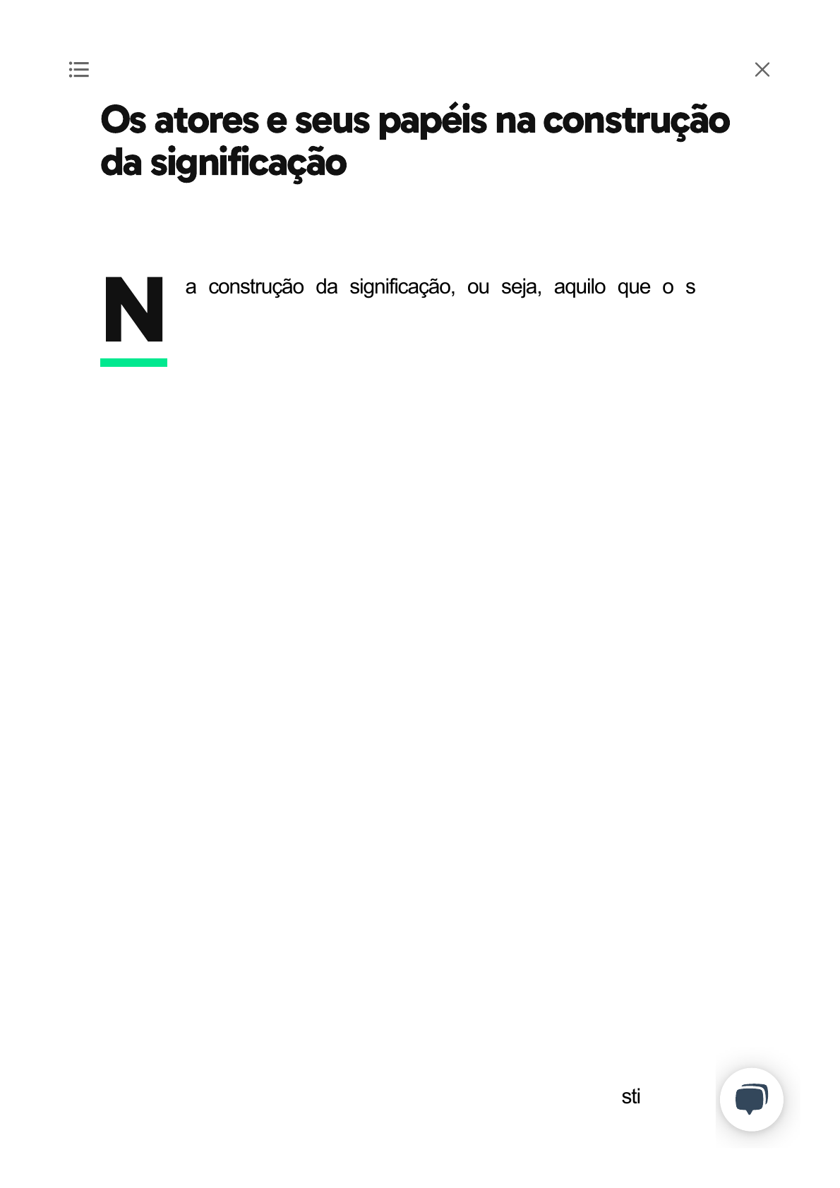 <p>17/11/2021 14:07 Descomplica | Modelagem Da Aprendizagem Ativa</p><p>https://aulas.descomplica.com.br/pos/mba-em-gestao-escolar-2d3fbc/turma/modelagem-da-aprendizagem-ativa-6c3bcf/aula/1-os-atores-e-seus… 1/10</p><p>N</p><p>Os atores e seus papéis na construção</p><p>da significação</p><p>a construção da significação, ou seja, aquilo que o sujeito</p><p>assimila ... aquilo que para o sujeito tem significado é com que</p><p>constituímos o conhecimento e este, conhecimento, é o que nos</p><p>distingue entre os homens e animais com base na capacidade</p><p>humana de criar os sinais de significação por meio da palavra e da</p><p>cognição (pensamento). O pensamento cognitivo e o conhecimento</p><p>humano são considerados como de natureza fundamentalmente social</p><p>(Vygotsky), na medida em que as ações do bebê só vão adquirindo</p><p>sentido num sistema de relações e significações sociais. Os processos</p><p>verbais - inicialmente do "outro", depois "próprios" - organizam e</p><p>estruturam a atividade mental. A primeira função da palavra é a função</p><p>social e se quisermos traçar como ela funciona no comportamento do</p><p>indivíduo, devemos considerar como ela é usada e funciona no</p><p>comportamento social" (Vygotsky, 1981, p. 158).</p><p>Como as crianças participam do processo de elaboração coletiva do</p><p>conhecimento? Quais as condições concretas de elaboração do</p><p>conhecimento nos contextos das salas de aula e como estas condições</p><p>interferem, marcam, diversificam ou constituem o processo de construção</p><p>do conhecimento?</p><p>Mediação entre o sujeito e o objeto</p><p>Para compreender a aprendizagem por meio de signos, precisamos</p><p>entender o conceito de mediação. A mediação se constitui em um</p><p>17/11/2021 14:07 Descomplica | Modelagem Da Aprendizagem Ativa</p><p>https://aulas.descomplica.com.br/pos/mba-em-gestao-escolar-2d3fbc/turma/modelagem-da-aprendizagem-ativa-6c3bcf/aula/1-os-atores-e-seus… 2/10</p><p>processo que necessita de dois elementos para ser realizada; são eles o</p><p>instrumento e o signo (Figura 1).</p><p>Os seres humanos conseguem acumular e compartilhar conhecimentos</p><p>graças à existência de sistemas simbólicos, dos quais a própria escrita é</p><p>um exemplo; a língua (portuguesa) é um exemplo de sistema simbólico</p><p>que se estabelece por meio de palavras estabelecidas e compartilhadas</p><p>no meio social. Observe que a possibilidade de compartilhar um sistema</p><p>simbólico só é possível para nós, pois somos humanos.</p><p>Quando voltamos a atenção para a construção da significação em sala de</p><p>aula precisamos estar atentos aquele docente que estiver mais bem</p><p>preparado saberá fazer as perguntas que irão provocar desequilíbrio na</p><p>estrutura cognitiva do aluno, encaminhando-a a avançar em uma nova e</p><p>mais elaborada reestruturação da significação. Espera-se do professor</p><p>que ele estimule em seus alunos a capacidade de separar e abstrair o que</p><p>tem importância central e inibir ideias secundárias, mantendo a ênfase no</p><p>que é essencial no que se aprende naquele momento (conceito).</p><p>Figura 1: Mediação entre o sujeito e objeto. Fonte: Ferreira, 2016, p. 1.</p><p>17/11/2021 14:07 Descomplica | Modelagem Da Aprendizagem Ativa</p><p>https://aulas.descomplica.com.br/pos/mba-em-gestao-escolar-2d3fbc/turma/modelagem-da-aprendizagem-ativa-6c3bcf/aula/1-os-atores-e-seus… 3/10</p><p>O conceito passa pela interação consigo (aluno), com o outro (colega de</p><p>sala) e com o mundo, mediada por instrumentos disponibilizados em sala</p><p>de aula pelo docente (em ambiente escolar) e por meio da linguagem.</p><p>Dentro da linguagem se estabelece a formação de conceitos, que só se</p><p>estabelece por estar culturalmente inserido em um grupo social e não a</p><p>um indivíduo em particular. Na construção de conceitos, o papel do</p><p>professor e dos grupos de alunos é decisivo, uma vez que ambos podem</p><p>trabalhar ativamente na construção de conceitos do aprendente por meio</p><p>da linguagem.</p><p>As três concepções da linguagem</p><p>As três concepções da linguagem como meios para a construção da</p><p>significação:</p><p>•</p><p>A linguagem enquanto expressão do pensamento: Para essa</p><p>concepção o não saber pensar é a causa das pessoas não saberem se</p><p>expressar. Para se escrever temos como requisito básico o pensar,</p><p>uma vez que a linguagem traduz a expressão que se constrói no interior</p><p>da mente, ou seja, o “espelho” do pensamento. Acredita-se que o</p><p>pensar logicamente, resultando na lógica da linguagem, deve ser</p><p>incorporado por regras a serem seguidas, sendo que essas regras</p><p>fazem parte do domínio do estudo gramatical normativo ou tradicional,</p><p>que defende que saber língua é saber teoria gramatical. Dessa forma,</p><p>acredita-se que quem fala ou escreve bem, seguindo e dominando as</p><p>normas que compõem a gramática da língua, é um indivíduo que</p><p>organiza logicamente o seu pensamento.</p><p>•</p><p>A linguagem enquanto instrumento de comunicação: a língua é um</p><p>código, um conjunto de signos, combinados através de regras, que</p><p>17/11/2021 14:07 Descomplica | Modelagem Da Aprendizagem Ativa</p><p>https://aulas.descomplica.com.br/pos/mba-em-gestao-escolar-2d3fbc/turma/modelagem-da-aprendizagem-ativa-6c3bcf/aula/1-os-atores-e-seus… 4/10</p><p>possibilita ao emissor transmitir uma certa mensagem ao receptor. A</p><p>comunicação, no entanto, só é estabelecida quando emissor e receptor</p><p>conhecem e dominam o código, que é utilizado de maneira</p><p>preestabelecida e convencionada.</p><p>•</p><p>A linguagem como forma de interação: o que o indivíduo faz ao usar</p><p>a língua não é tão-somente traduzir e exteriorizar um pensamento ou</p><p>transmitir informações a outrem, mas sim rea
