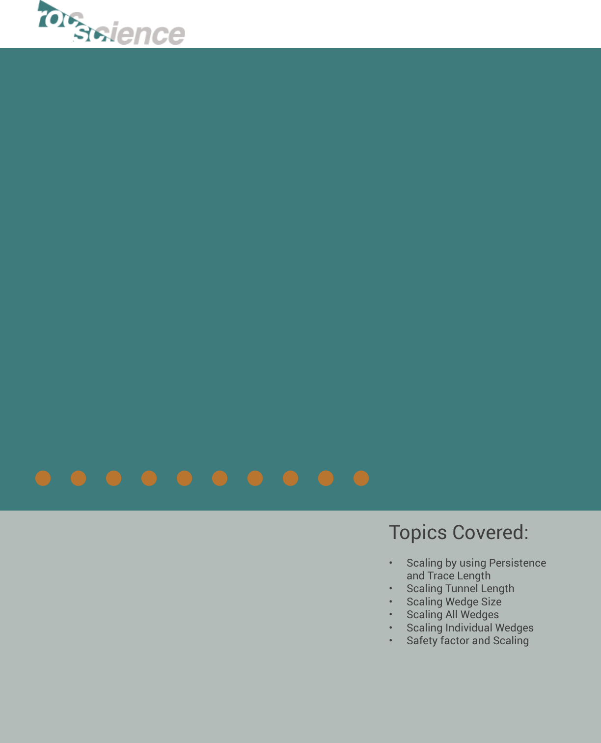 <p>Tutorial 2 | Scaling Wedges</p><p>Topics Covered:</p><p>• Scaling by using Persistence</p><p>and Trace Length</p><p>• Scaling Tunnel Length</p><p>• Scaling Wedge Size</p><p>• Scaling All Wedges</p><p>• Scaling Individual Wedges</p><p>• Safety factor and Scaling</p><p>Unwedge v. 4.0</p><p>Unwedge v. 4.0 Tutorial Manual Tutorial 2: Scaling Wedges</p><p>2 - 2</p><p>Unwedge always initially calculates the maximum sized wedges which can form around an</p><p>excavation.</p><p>This tutorial demonstrates how to scale down the size of the wedges, to represent the actual</p><p>size of wedges observed in the field. We will demonstrate two methods of wedge scaling in</p><p>this tutorial.</p><p>Wedge scaling is important because the assumed wedge size can have a significant effect</p><p>on support requirements (e.g. pattern spacing, positioning or orientation of bolts, and the</p><p>thickness or strength of shotcrete).</p><p>The model represents a section of an underground spiral access ramp.</p><p>For this tutorial we will start by reading in the file Tutorial 02 Scaling Wedges.weg which</p><p>you should find in the Unwedge 4.0 Examples > Tutorials folder in your Unwedge installation</p><p>folder.</p><p>Select: File > Recent Folders > Tutorials Folder, or use the drop-down arrow on the Open</p><p>toolbar button to choose the tutorials folder.</p><p>Select the Tutorial 02 Scaling Wedges.weg file.</p><p>The model should appear as follows.</p><p>As you can see, all of the Perimeter Wedges (roof, sides and floor wedges) are the maximum</p><p>possible size for the excavation cross-section.</p><p>NOTE: the Plunge of the Tunnel Axis Orientation is 15 degrees, because the model represents</p><p>a section of an inclined ramp, rather than a horizontal tunnel.</p><p>The Model</p><p>Introduction</p><p>Unwedge v. 4.0 Tutorial Manual Tutorial 2: Scaling Wedges</p><p>2 - 3</p><p>We will first scale the wedges using the options in the Input Data dialog.</p><p>Open the Input Data dialog by clicking on the button on the toolbar or through the Analysis</p><p>menu. Click on the General tab. We should note here that the length of the tunnel itself can</p><p>be scaled down in this tab. Let’s assume the length of the tunnel is 10 m. Therefore, check</p><p>off the “Tunnel Length” box and enter a length of 10 m, as shown. Click Apply to see the</p><p>changes. The length of the tunnel should now be 10 m.</p><p>Joint Structure Continuity : Persistence and Trace Length</p><p>We will now scale the wedges themselves using persistence and trace length.</p><p>Select the Joint Properties tab. In the Joint Properties 1 tab, under Joint Structure, change</p><p>the Continuity from Infinite to Persistence. We will use the default 5 m persistence. Select</p><p>OK.</p><p>All wedges should now have been scaled, as shown below.</p><p>Scaling Wedges: Input Data Dialog</p><p>Unwedge v. 4.0 Tutorial Manual Tutorial 2: Scaling Wedges</p><p>2 - 4</p><p>Click on the Filter List button on the sidebar. Select the Defaults button to ensure the default</p><p>data is displayed. Then check off “Scaled By” as well as “Joint Persistence.” Select OK.</p><p>Unwedge v. 4.0 Tutorial Manual Tutorial 2: Scaling Wedges</p><p>2 - 5</p><p>We can see in the sidebar that all wedges have been scaled by Joint 1, as defined in the</p><p>Input Data dialog. The Joint Persistence for Joint 1 of each wedge is 5 m, as expected.</p><p>We will now scale the wedges using the Joint 2 Trace Length.</p><p>Open the Input Data dialog by clicking on the button on the toolbar or through the Analysis</p><p>menu. Select the Joint Properties tab. Click on Joint Properties 3 on the left of the dialog.</p><p>Change the Joint Structure Continuity from Infinite to Trace Length and enter a trace length</p><p>of 3 m as shown. Select OK.</p><p>Unwedge v. 4.0 Tutorial Manual Tutorial 2: Scaling Wedges</p><p>2 - 6</p><p>Now click on the Filter List button again and check off “Joint Trace Lengths” as well. Select</p><p>OK.</p><p>On the sidebar, you should now see that all four wedges have been scaled by the Joint 3</p><p>trace length of 3 m. Because the trace length we entered for Joint 3 resulted in smaller</p><p>wedges than the Persistence we entered for Joint 1, Unwedge has scaled all wedges by the</p><p>Joint 3 trace length.</p><p>Unwedge v. 4.0 Tutorial Manual Tutorial 2: Scaling Wedges</p><p>2 - 7</p><p>The Scale Wedges option from the Analysis menu provides a more advanced way of scaling</p><p>wedges</p><p>Select: Analysis > Scale Wedges</p><p>You will see the Scale Wedges dialog.</p><p>In this dialog, wedge size can be scaled according to joint trace length, joint persistence or</p><p>wedge data (e.g. volume, face area etc). Although we can enter multiple scaling parameters</p><p>at the same time, let’s enter parameters one at a time, to see the results at each step.</p><p>Select the Joint 1 (Trace Length) checkbox, and enter a Scaling Value of 4 meters. Select OK.</p><p>Scaling Wedges: Advanced</p><p>Unwedge v. 4.0 Tutorial Manual Tutorial 2: Scaling Wedges</p><p>2 - 8</p><p>You will notice that all of the Joint 1 trace lengths displayed in the sidebar have stayed</p><p>the same. This is because we have already scaled Joint 1 with a trace length of 3 m, and</p><p>Unwedge will choose the smallest wedge size when several different scaling values are</p><p>imputed. This demonstrates that the Scale Wedges dialog works in conjunction with the</p><p>scaling options in the Input Data dialog.</p><p>To indicate that scaling has been applied to a wedge, the letter “s” is displayed beside the</p><p>wedge number (e.g. the roof wedge is numbered “8s”). If you do not see the wedge numbers,</p><p>go to Display Options, select the Wedge Views tab, and make sure the Wedge Numbers</p><p>checkbox is selected.</p><p>At this point, we should note the following:</p><p>• When we use the All Wedges scaling option (in the Scale Wedges dialog), this does not</p><p>ne