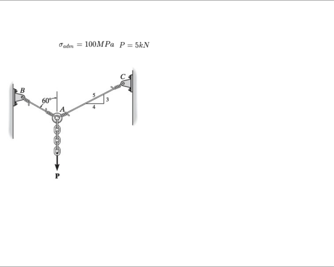 <p>RESPOSTAS: 1-B / 2- C / 3-D / 4-D / 5-E</p><p>1) “A mecânica dos corpos rígidos divide-se em duas áreas: estática e dinâmica. A estática trata do equilíbrio dos corpos, ou</p><p>seja, aqueles que estão em repouso ou em movimento, com velocidade constante; enquanto a dinâmica preocupa-se com o</p><p>movimento acelerado dos corpos”.</p><p>Para uma treliça bi apoiada sob um apoio fixo e outro móvel, tem-se uma estrutura:</p><p>Alternativas:</p><p>a) Hipoestática</p><p>b) Isostática</p><p>c) Hiperestática</p><p>d) Metastática</p><p>e) Giga estática</p><p>2) A resistência dos materiais é uma disciplina onde se estuda a capacidade de um corpo resistir a um carregamento. A partir</p><p>disso, estruturas são dimensionadas pré-determinando a forma e o carregamento que atenda a um projeto, assim pode-se</p><p>adotar um material com uma tensão conhecida para dimensionar a geometria da peça.</p><p>Para a estrutura apresentada na figura a seguir, determine o diâmetro mínimo das cordas AB e BC, respectivamente, sabendo</p><p>que ambas podem ter e .</p><p>Figura - Estrutura.</p><p>Alternativas:</p><p>a) 7,7 mm e 7,4 mm</p><p>b) 5,3 mm e 5,5 mm</p><p>c) 7,4 mm e 7,7 mm</p><p>d) 5,5 mm e 5,3 mm</p><p>e) 6,4 mm e 6,6 mm</p><p>3) Nas ligações das estruturas, os parafusos, rebite e pino, além de sofrerem tensões de cisalhamento na ligação, estes podem</p><p>proporcionar tensões de esmagamento no contato com a superfície das barras que estão conectadas. Para este tipo de</p><p>tensão, também é considerado o valor médio.</p><p>Para o parafuso apresentado na figura, calcule a tensão de esmagamento atuante na arruela do parafuso, sabendo que há</p><p>uma folga de 2 mm entre a arruela e o parafuso.</p><p>Figura - Parafuso</p><p>Fonte: Hibbeler (2010, p.45)</p><p>Alternativas:</p><p>a) 110,10 MPa</p><p>b) 55,45 MPa</p><p>c) 45,47 MPa</p><p>d) 41,92 MPa</p><p>e) 4,72 Mpa</p><p>4) "Os diagramas tensa~o-deformac¸a~o dos materiais variam muito, e ensaios de tração diferentes executados com o mesmo</p><p>material podem produzir resultados diferentes, dependendo da temperatura do corpo de prova e da velocidade de aplicação da</p><p>carga. "</p><p>Para os dados de ensaio de tração obtidos na tabela a seguir, determine a tensão última e a de ruptura de um corpo de prova</p><p>com diâmetro de 13 mm e 50 mm de comprimento.</p><p>Tabela – Dados de ensaio</p><p>Carga</p><p>(kN)</p><p>(mm)</p><p>Carga</p><p>(kN)</p><p>(mm)</p><p>0,00 0,0000 60,00 0,5000</p><p>7,50 0,0125 83,00 1,0000</p><p>23,00 0,0375 100,00 2,5000</p><p>40,00 0,0625 107,50 7,0000</p><p>55,00 0,0875 97,50 10,0000</p><p>59,00 0,1250 92,50 11,5000</p><p>59,00 0,2000 87,00 11,5500</p><p>Fonte: Adaptado de Hibbeler (2010, p.69).</p><p>Alternativas:</p><p>a)</p><p>b)</p><p>c</p><p>d)</p><p>e)</p><p>5) No início da curva no diagrama tensão-deformação, identificamos que há uma proporcionalidade entre a tensão e a</p><p>deformação, formando assim uma reta. Este trecho proporcional expressa a Lei de Hooke, definido por Robert Hooke em 1676,</p><p>para materiais elásticos.</p><p>Um fio de nylon esta´ submetido a` força de tração de 10 N. Sabendo que e que o comprimento do fio e´</p><p>incrementado em 1,2%, determine o diâmetro do fio.</p><p>Alternativas:</p><p>a) 0,195 mm</p><p>b) 0,295 mm</p><p>c) 0,395 mm</p><p>d) 0,495 mm</p><p>e) 0,595 mm</p>