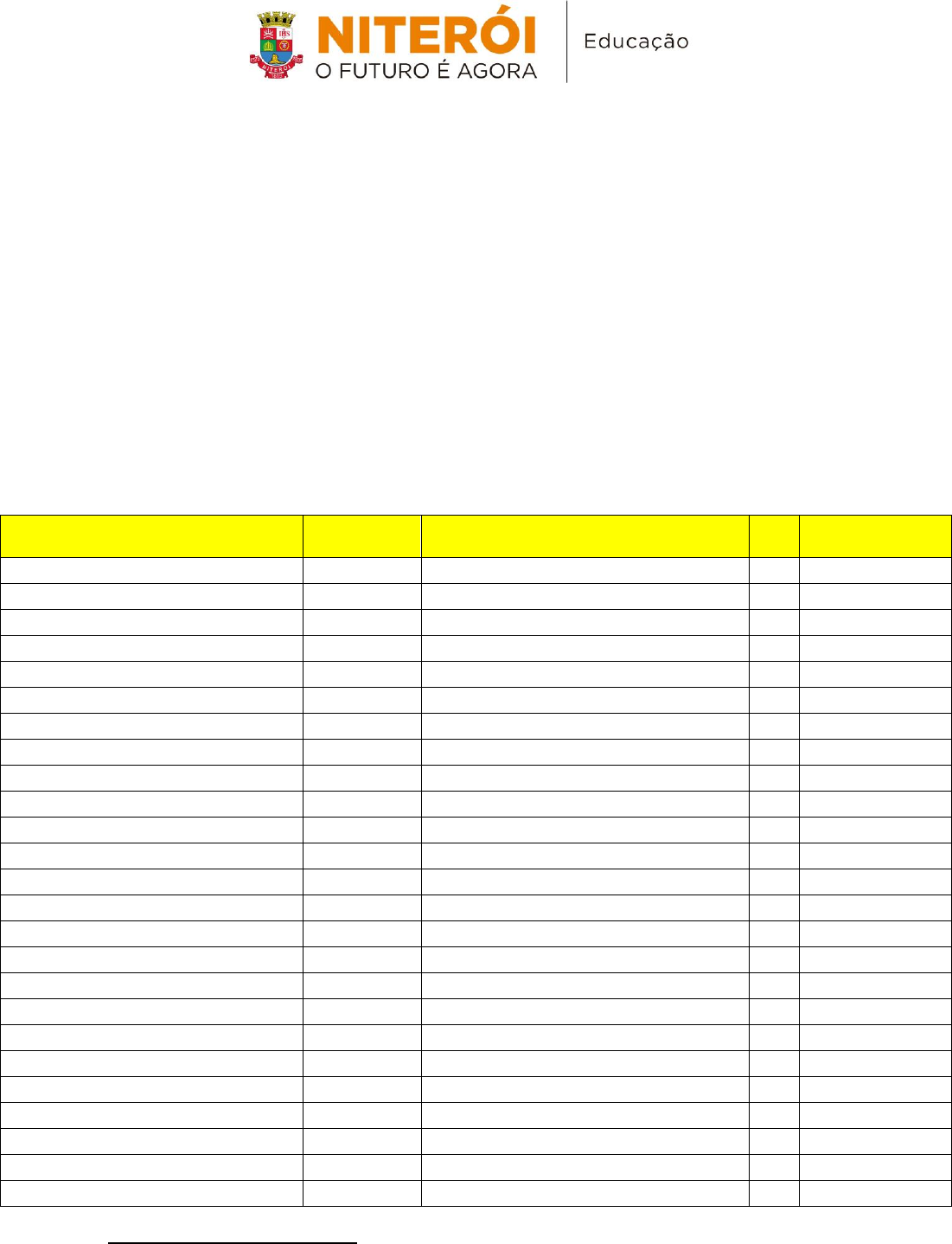 <p>P á g i n a 1 | 156</p><p>FUNDAÇÃO MUNICIPAL DE EDUCAÇÃO1</p><p>O PRESIDENTE MUNICIPAL DE EDUCAÇÃO DE NITERÓI, no cumprimento das disposições</p><p>Estatutárias contidas no Decreto nº 6.172/91, considerando o que estabelece os incisos VII e VIII</p><p>do art. 13, do Estatuto da Fundação Municipal de Educação de Niterói aprovado pelo Decreto</p><p>nº 6.178/91 publicado em 29 de agosto de 1991, torna público e homologa o Resultado Final</p><p>do Concurso da Fundação Pública Municipal de Educação de Niterói – FME – Edital 1/2023, em</p><p>ordem classificatória referente aos cargos de: Agente de Administração Educacional, Agente de</p><p>Coordenação de Turno, Assistente Social, Contador, Pedagogo, Professor I, Professor I de Apoio</p><p>Educacional Especializado, Professor II – Arte, Professor II – Ciências, Professor II – Educação</p><p>Física, Professor II – Geografia, Professor II – História, Professor II – Língua Espanhola, Professor</p><p>II – Língua Francesa, Professor II – Língua Inglesa, Professor II – Língua Portuguesa, Professor II</p><p>– Matemática e Psicólogo, estando as informações, na sequência: Cargo, Classificação, Nome,</p><p>Nota Final e Situação, conforme listagem abaixo:</p><p>Ampla Concorrência:</p><p>CARGO CLASSIFICAÇÃO NOME</p><p>NOTA</p><p>FINAL</p><p>SITUAÇÃO</p><p>Agente de Administração Educacional 1 ESTEBAN DE OLIVEIRA XAVIER 97,00 Classificado</p><p>Agente de Administração Educacional 2 VINICIUS VIEIRA DE MORAES 96,00 Classificado</p><p>Agente de Administração Educacional 3 JÉSSICA OLIVEIRA DA SILVA 94,50 Classificado</p><p>Agente de Administração Educacional 4 MARIANA TEIXEIRA CHEREM MELO DA SILVA 94,00 Classificado</p><p>Agente de Administração Educacional 5 ANDRÉ LUIZ DE BELLI ANTONY 93,50 Classificado</p><p>Agente de Administração Educacional 6 BRUNO MARTINS SILVA DE OLIVEIRA 93,50 Classificado</p><p>Agente de Administração Educacional 7 DAYANE NEVES LIMA 92,50 Classificado</p><p>Agente de Administração Educacional 8 JOSÉ LEONARDO TADAIESKY BATISTA 92,50 Classificado</p><p>Agente de Administração Educacional 9 VIRGINIA QUEIROZ DA SILVA 92,50 Classificado</p><p>Agente de Administração Educacional 10 ALINE PEREIRA DOHERTY 91,00 Classificado</p><p>Agente de Administração Educacional 11 WILSON RAFAEL SARAIVA MORENO 91,00 Classificado</p><p>Agente de Administração Educacional 12 LEANDRO FRÓES CRUZ 90,50 Classificado</p><p>Agente de Administração Educacional 13 RENATO DA COSTA FERREIRA 90,50 Classificado</p><p>Agente de Administração Educacional 14 JULIANA AZEVEDO DUARTE 90,00 Classificado</p><p>Agente de Administração Educacional 15 LIGIA SILVA DOS PASSOS 90,00 Classificado</p><p>Agente de Administração Educacional 16 ISAAC CARVALHO DA COSTA 89,00 Classificado</p><p>Agente de Administração Educacional 17 LUIZ FELIPE CARMO DE Ó LOPES 89,00 Classificado</p><p>Agente de Administração Educacional 18 DEBORAH TRINDADE DUQUE ESTRADA 89,00 Classificado</p><p>Agente de Administração Educacional 19 BRUNA RIBEIRO BOMFIM DOS SANTOS 89,00 Classificado</p><p>Agente de Administração Educacional 20 LUIMAR PAULO SANTOS PEQUENO 89,00 Classificado</p><p>Agente de Administração Educacional 21 SIDNEY NASCIMENTO DOS SANTOS 89,00 Classificado</p><p>Agente de Administração Educacional 22 DIEGO MARINHO CARVALHO DA SILVA 89,00 Classificado</p><p>Agente de Administração Educacional 23 DANIEL CHAMARELLI DA SILVA COELHO 89,00 Classificado</p><p>Agente de Administração Educacional 24 JULIANA PEREIRA ALVES DOS SANTOS 88,50 Classificado</p><p>Agente de Administração Educacional 25 CLÁUDIA CRISTINA MELO PEREIRA 88,50 Classificado</p><p>1 Publicado no DOM em 01/05/2024, com corrigenda em 03/05/2024.</p><p>P á g i n a 2 | 156</p><p>Agente de Administração Educacional 26 FERNANDA SANT ANA DE PAULA DO LAGO 88,50 Classificado</p><p>Agente de Administração Educacional 27 LUIZE PEREIRA DE MORAES 88,50 Classificado</p><p>Agente de Administração Educacional 28 ISABELLE PEREIRA DE MORAES 88,50 Classificado</p><p>Agente de Administração Educacional 29 ERIKA ANDRADE DE OLIVEIRA 88,00 Classificado</p><p>Agente de Administração Educacional 30 CRISTIANO DE OLIVEIRA JESUS SOUZA 88,00 Classificado</p><p>Agente de Administração Educacional 31 MARCOS PAULO DA MANOEL 88,00 Classificado</p><p>Agente de Administração Educacional 32 TATIANA DE ANDRADE GULLO 87,50 Cadastro de Reserva</p><p>Agente de Administração Educacional 33 ELENE SLAMA IMBASSAHY 87,50 Cadastro de Reserva</p><p>Agente de Administração Educacional 34 LUIZ FERNANDO NUNES JUNIOR 87,50 Cadastro de Reserva</p><p>Agente de Administração Educacional 35 ENZO BRUNO FLORÊNCIO CORTE 87,50 Cadastro de Reserva</p><p>Agente de Administração Educacional 36 JESSÉ DE OLIVEIRA MARQUES 87,00 Cadastro de Reserva</p><p>Agente de Administração Educacional 37 PEDRO PAULO LEHMKUHL WEBER FILHO 87,00 Cadastro de Reserva</p><p>Agente de Administração Educacional 38 GEYSIANA SILVA BARBOSA 87,00 Cadastro de Reserva</p><p>Agente de Administração Educacional 39 TAMIRES COSTA DE AZEVEDO 87,00 Cadastro de Reserva</p><p>Agente de Administração Educacional 40 GABRIEL DIAS FEITOSA 87,00 Classificado PP</p><p>Agente de Administração Educacional 41 CHARLON DA SILVA CHAGAS 86,50 Cadastro de Reserva</p><p>Agente de Administração Educacional 42 LILIAN DE NAZARETH CARDOSO 86,50 Classificado PP</p><p>Agente de Administração Educacional 43 ANGELO ARNIZAUT DE CARVALHO FULCHI</p><p>VIANNA</p><p>86,50 Cadastro de Reserva</p><p>Agente de Administração Educacional 44 DYLAN MENDONÇA DA SILVA CORRÊA 86,50 Cadastro de Reserva</p><p>Agente de Administração Educacional 45 DIANA ROSANA DUARTE GOMES JESUS DA SILVA 86,50 Classificado PP</p><p>Agente de Administração Educacional 46 LUCAS ALVES PEREIRA DE SOUZA 86,50 Cadastro de Reserva</p><p>Agente de Administração Educacional 47 MARCIA CRISTINA GONÇALVES MONTEIRO 86,00 Cad
