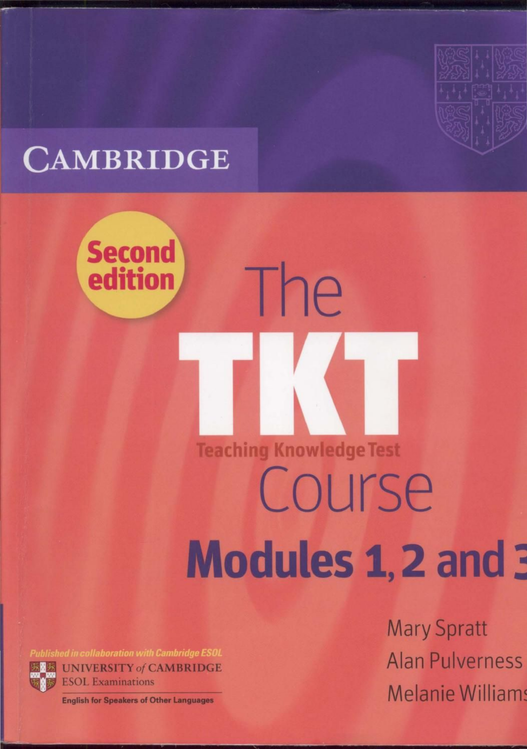 <p>CAMBRIDGE Second edition The TKT Teaching Knowledge Test Course Modules 1,2 and Mary Spratt Published in collaboration with Cambridge ESOL Alan Pulverness UNIVERSITY of CAMBRIDGE ESOL Examinations Melanie Williams English for Speakers of Other Languages</p><p>Second edition The TKT Teaching Knowledge Test Course Modules 1,2 and 3 Mary Spratt Alan Pulverness Melanie William Published in collaboration with Cambridge ESOL UNIVERSITY of CAMBRIDGE ESOL Examinations CAMBRIDG UNIVERSITY PRE English for Speakers of Other Languages</p><p>CAMBRIDGE UNIVERSITY PRESS Cambridge, New York, Melbourne, Madrid, Cape Town, Singapore, São Paulo, Delhi, Dubai, Tokyo, Mexico City Cambridge University Press The Edinburgh Building, Cambridge CB2 8RU, UK www.cambridge.org Information on this title: www.cambridge.org/9780521125659 C Cambridge University Press 2011 This publication is in copyright. Subject to statutory exception and to the provisions of relevant collective licensing agreements, no reproduction of any part may take place without the written permission of Cambridge University Press. First published 2011 Printed in the United Kingdom at the University Press, Cambridge A catalogue record for this publication is available from the British Library ISBN 978-0-521-12565-9 Paperback Cambridge University Press has no responsibility for the persistence or accuracy of URLs for external or third-party internet websites referred to in this publication, and does not guarantee that any content on such websites is, or will remain, accurate or appropriate.</p><p>Contents Introduction 1 Tips for preparing for the TKT 5 Module 1 Language and background to language learning and teaching Part 1 Describing language and language skills Unit 1 Grammar 8 Unit 2 Lexis 16 Unit 3 Phonology 21 Unit 4 Functions 27 Unit 5 Reading 31 Unit 6 Writing 37 Unit 7 Listening 43 Unit 8 Speaking 48 Part 2 Background to language learning Unit 9 Motivation 53 Unit 10 Exposure and focus on form 58 Unit 11 The role of error 62 Unit 12 Differences between L1 and L2 learning 67 Unit 13 Learner characteristics 72 Unit 14 Learner needs 78 Unit 15 Approaches to language teaching 83 Part 3 Background to language teaching Unit 16 Presentation techniques and introductory activities 90 Unit 17 Practice activities and tasks for language and skills development 97 Unit 18 Assessment types and tasks 104 TKT Module 1 Practice test 1.1 112 Module 2 Lesson planning and use of resources for language teaching Part 1 Planning and preparing a lesson or sequence of lessons Unit 19 Identifying and selecting aims 127 Unit 20 Identifying the different components of a lesson plan 133 Unit 21 Planning an individual lesson or a sequence of lessons 139 Unit 22 Choosing assessment activities 145</p><p>Part 2 Selection and use of resources Unit 23 Consulting reference resources to help in lesson preparation 151 Unit 24 Selection and use of coursebook materials 156 Unit 25 Selection and use of supplementary materials and activities 161 Unit 26 Selection and use of teaching aids 166 TKT Module 2 Practice test 2.1 172 Module 3 Managing the teaching and learning process Part 1 Teachers' and learners' language in the classroom Unit 27 Using language appropriately for a range of classroom functions 184 Unit 28 Identifying the functions of learners' language 190 Unit 29 Categorising learners' mistakes 194 Part 2 Classroom management Unit 30 Teacher roles 199 Unit 31 Grouping learners 204 Unit 32 Correcting learners 209 Unit 33 Giving feedback 215 TKT Module 3 Practice test 3.1 220 Sample TKT answer sheet 234 Exam tips for the TKT 235 Answer key for Follow-up activities 237 Answer key for TKT practice tasks 245 Answer key for TKT practice tests 246 Alphabetical list of glossary terms 247 Unit-by-unit list of glossary terms 252 Acknowledgements 256</p><p>Introduction The TKT Course Modules 1, 2 and 3 The TKT Course Modules 1, 2 and 3 is the second edition of The TKT Course. In this second edition you will find a range of new material that makes this edition different from the first edition: Revised and expanded information on the key concepts related to each area of the TKT syllabus An additional unit on to language reflecting the TKT syllabus New tasks in each unit for the Follow-up, Reflection, Discovery and exam practice sections New practice tests An expanded glossary reflecting the revised TKT Glossary A new section on for preparing for the TKT', which aims to help you study by yourselves and make full use of all opportunities for working towards the TKT. The TKT Course Modules 1, 2 and 3 Online The TKT Course Modules 1, 2 and 3 is also available online. If you subscribe to the online version at cambridgetkt.english360.com you will get all the material from the print edition in an interactive format plus: Six additional interactive TKT practice tests, matching the latest Cambridge ESOL TKT computer-based tests 'Ask the author' videos giving an expert view on classroom issues focused on in the Reflection sections An interactive Glossary Quiz covering the TKT terms Extra support for TKT trainers. What is the Teaching Knowledge Test (the TKT)? The Teaching Knowledge Test (the TKT) is a test developed by Cambridge ESOL for teachers of English to speakers of other languages. It is designed to test candidates' knowledge of concepts related to language and language use, and the background to and practice of language teaching and learning. The TKT consists of seven modules: TKT Module 1, TKT Module 2, TKT Module 3, TKT: KAL (Knowledge About Language), TKT: CLIL (Content and Language Integrated Learning), TKT: YL (Young Learners) and TKT: Practical. The modules can be taken together, or separately, in any order and any number. With the exception of the TKT: Practical, the content of the TKT is tested by means of objective tasks, such as matching and multiple-choice, and each module consists of 80 questions. While the TKT: Practical focuses on classroom skills and the TKT: KAL on 