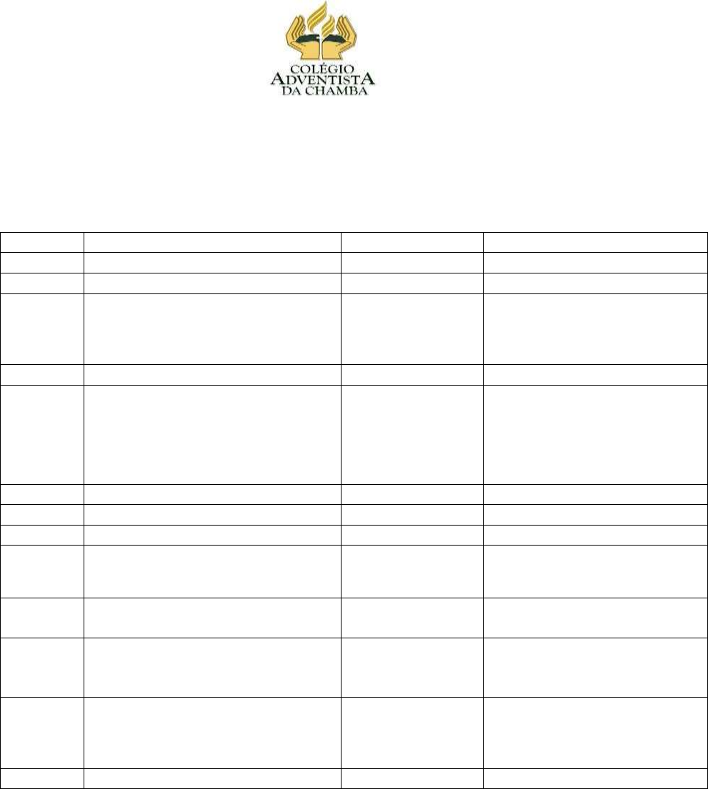<p>COLÉGIO ADVENTISTA DA CHAMBA</p><p>PROGRAMA SUGESTIVO- ESCOLA SABATINA</p><p>Sábado 28 de Setembro de 2024</p><p>Horário Actividade Responsável Observação</p><p>8:30 min Momento de louvores Clube local</p><p>8:55min Palavras de Boas vindas Director</p><p>8:55 min</p><p>1º Hino</p><p>Director</p><p>Hino Inicial “A Escola</p><p>Sabatina” HA nº 509</p><p>9:00 min 1º Oração de joelho</p><p>9: 5 min</p><p>Leitura do verso áureo da lição</p><p>Director</p><p>9:10min Coro especial Clube local</p><p>9:16 Momento de Saúde</p><p>9:22 Ano Bíblico</p><p>9:24 min</p><p>Informativo Mundial das Missões.</p><p>Vídeo na tela</p><p>9:30 Relatório da Escola Sabatina Secretaria da</p><p>igreja local</p><p>9:35-</p><p>10:20</p><p>min</p><p>Orientação para estudo da Lição,</p><p>Estudo da lição em comum</p><p>Secretaria da</p><p>igreja local</p><p>10:30-</p><p>10-33</p><p>min</p><p>2º Hino</p><p>Hino Final “Dá-me a Bíblia”</p><p>HÁ nº 165</p><p>9:35 min 2º Oração</p><p>Culto Divino</p><p>1º Oração de joelho:</p><p>Dízimos e ofertas:</p><p>Apresentador:</p><p>Pregador:</p><p>Hino:</p><p>2ª oração:</p><p>Nota: a critério da missão e o clube anfitrião.</p><p>COLÉGIO ADVENTISTA DA CHAMBA</p><p>Departamento da juventude e Capelania</p><p>Clube Apocalipse-CAC</p><p>Programa de investidura do Clube Apocalipse</p><p>Programa da Tarde</p><p>13:30min louvores</p><p>14:00h começo oficial do programa</p><p> Entradas dos clubes (desfile)</p><p> Entrada dos oficias</p><p> Entrada dos portas Bandeiras</p><p> Recitação dos ideias</p><p> Hino nacional</p><p> Hino dos jovens</p><p> 1ª Oração</p><p> Corro especial</p><p> Meditação</p><p> Momento de louvores- 3 clubes (local, Davi e Alfa).</p><p> Demonstração de Especialidades: Davi, Moisés, Alfa e Arautos, águia e Israel.</p><p> Demonstração- Clube apocalipse</p><p> Primeiros socorros</p><p> Nós e amarra, Sinais de pista etc.</p><p>Parte II</p><p> Permissão para investidura</p><p> Entrada de meninos de vela</p><p> Entrada da bíblia</p><p> Entrada de matérias</p><p> Explicação das bandeiras e velas com uma meditação</p><p> Investidura</p><p> Ultimas considerações</p><p> Hino dos Aventureiros</p><p> Última oração</p><p> Sequência de saída</p><p> Porta Bandeiras</p><p> Oficias e lideres</p><p> Aventureiro, desbravadores, embaixadores e toda igreja.</p><p>Fim do programa: 17hrs</p><p>Elaborado por Bruno André. 2024</p><p>MATERIAIS DO CLUBE PARA REQUISIÇÃO</p><p>DESCRIÇÃO / ITEM PREÇO UNITÁRIO QUANTIDADE</p><p>Lenços de Desbravadores 270,00</p><p>Lenços de Embaixadores 310,00</p><p>Lenços de Sénior 310,00</p><p>Globinho de Desbravadores 75,00</p><p>Triangulo de Desbravadores 75,00</p><p>Logo de Embaixadores 75,00</p><p>Tiras de Nome do</p><p>Desbravadores</p><p>75,00</p><p>Insígnias de Especialidades</p><p>Tiras de Cargo de Capitão 75,00</p><p>Tiras de Cargo de</p><p>Conselheiro</p><p>75,00</p><p>Bandeiras do Clube 2500,00 4</p><p>Distintivo de Classe PREÇO UNITÁRIO</p><p>COLÉGIO ADVENTISTA DA CHAMBA</p><p>LISTA NOMINAL DOS DESBRAVADORES, EMBAIXADORES E SENIORES</p><p>Desbravadores Embaixadores Seniores</p><p>1. Matilde Augusto 1. Antonio Jose Luis</p><p>2. Guilherme Mateus 2. Aissa Roberto</p><p>3. Anacleita 3. Jesuina Gimo</p><p>4. Magui Abilio 4. Silvio Candido</p><p>5. Leonilde Renato 5. Francisco Pinto</p><p>6. Charmila Antonio 6. Cleoton Joao</p><p>7. Salome Acacio 7. Chimpene Pita</p><p>8. Augusto Eduardo 8. Pascoal Marcos</p><p>9. Alya Emilia 9. Afonso Moises</p><p>10. Amelia Felix 10.Joaquina Jorge</p><p>11. Danelsa Eveline</p><p>12. Yuvy da Candida</p><p>13. Luis Alberto</p><p>14. Tobias Acacio</p><p>15. Janete Gimo</p><p>16. Thandy Niko</p><p>17. Kelven Mazvila</p><p>Não investidos</p><p>1. Andarieta Joaquim 1. Eduardo Mabuto</p><p>2. Beny Caitano 2. Rainha Joao</p><p>3. Simeão Tunbujuro 3. Rihanna Jinarde</p><p>4. Joelson Thomas 4. Faiaze Mohamad</p><p>5. Erica Victor 5. Cenito Dique</p><p>6. Amade Junior 6. Costantino Lomberto</p><p>7. Bilclavan Messi 7. Yassin Issufo</p><p>8. Vidano Luis 8. Belarmina Mena</p><p>9. Vislen Ricardo 9. Angelo Estevão</p><p>10. Camila Mariamo 10. Clidio Jorge</p><p>11. Sitonia Guilherme 11. Milton Nigalatão</p><p>12. Maria de Lidia 12. Isaias Chiambiro</p><p>13. Mesle dos Santos 13. Jaco Alberto</p><p>14. Mirian Magalhães 14. Joao Buler</p><p>15. Naiara de Medo 15. Raquel Quizito</p><p>16. Rogerio Manuel 16. Dina Maquil</p><p>17. Jaqueline Antonio</p><p>18. Silene da Sana</p><p>19. Crislene Clarice</p><p>20. Eunice Victor</p><p>21. Francisca</p><p>Herminio</p><p>22. Leonel Dias</p><p>23. David da Pelarba</p><p>24. Rita Domingos</p><p>25. Bernadete Manuel</p><p>26. Jorge Castigo</p><p>27. Ernandes Eugenio</p><p>28. Cabral Manuel</p><p>29. Aderico Francisco</p><p>30. Cheila da Joaquim</p><p>31. Define Francisco</p><p>32. Cleodina Etelvino</p><p>33. Luisa Joao</p><p>34. Diolinda da</p><p>Clemente</p><p>35. Edvania Pascoal</p><p>36. Luís Francisco</p><p>37. Celestino Pascoal</p><p>38. Josoelma Liva</p><p>39. Milaide Wilson</p><p>40. Marcia Jacinto</p><p>41. Yocinina Paulo</p><p>42. Leonor Augusto</p><p>43. Jaqueline da</p><p>Conceição</p><p>44. Yuna Salomão</p><p>45. Angelina Tomas</p><p>46. Felisberta Jose</p><p>47. Belkice Lokyo</p><p>48. Alda da Assucena</p><p>49. Alice Zaqueu</p><p>50. Diana Zacarias</p><p>51. Alfredo Zacarias</p>